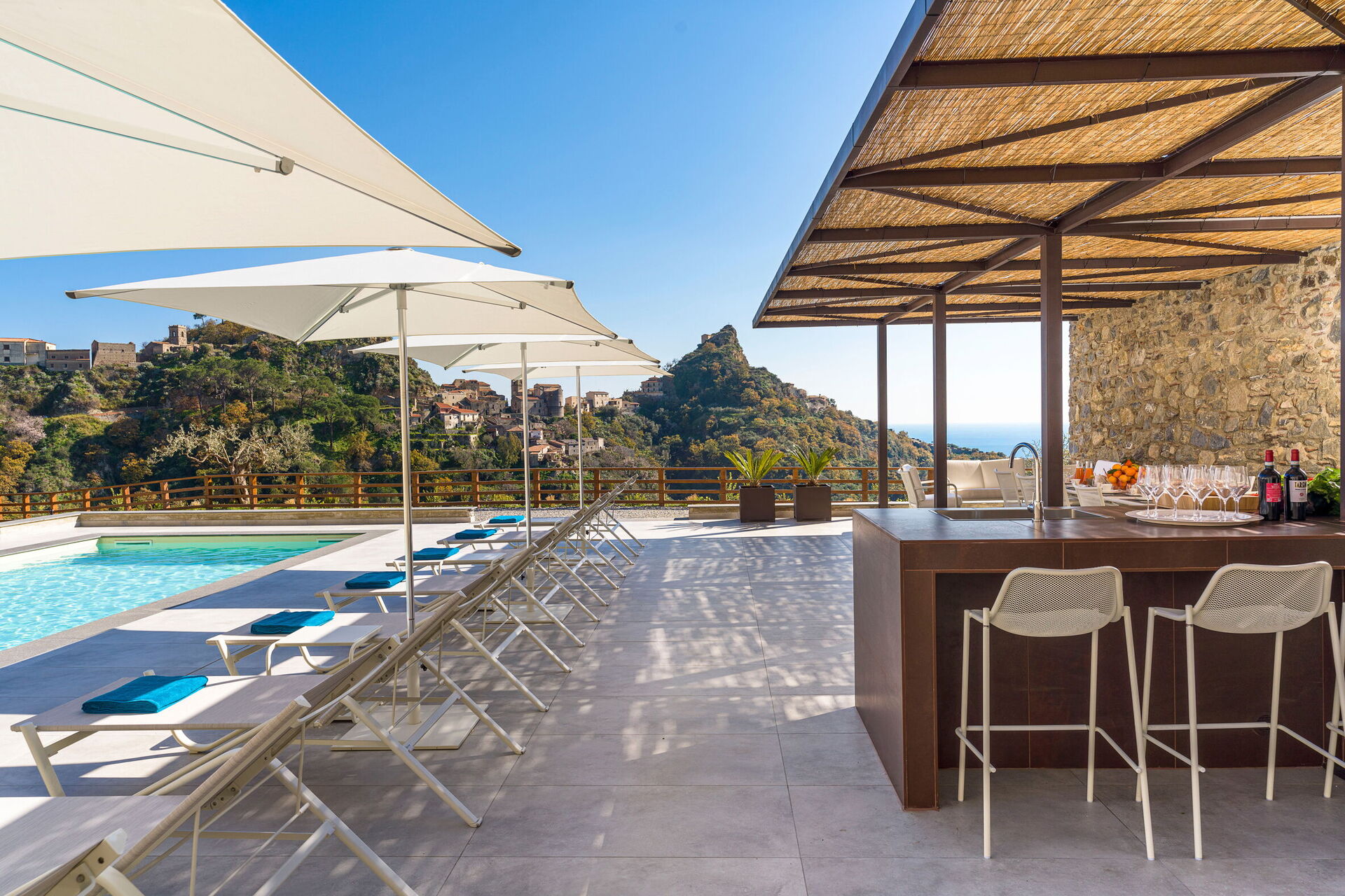 The villa has a really tranquile location with a beatiful view to the Sea and Savoca. The poolsite is great with outdoor kitchen and dinner table.