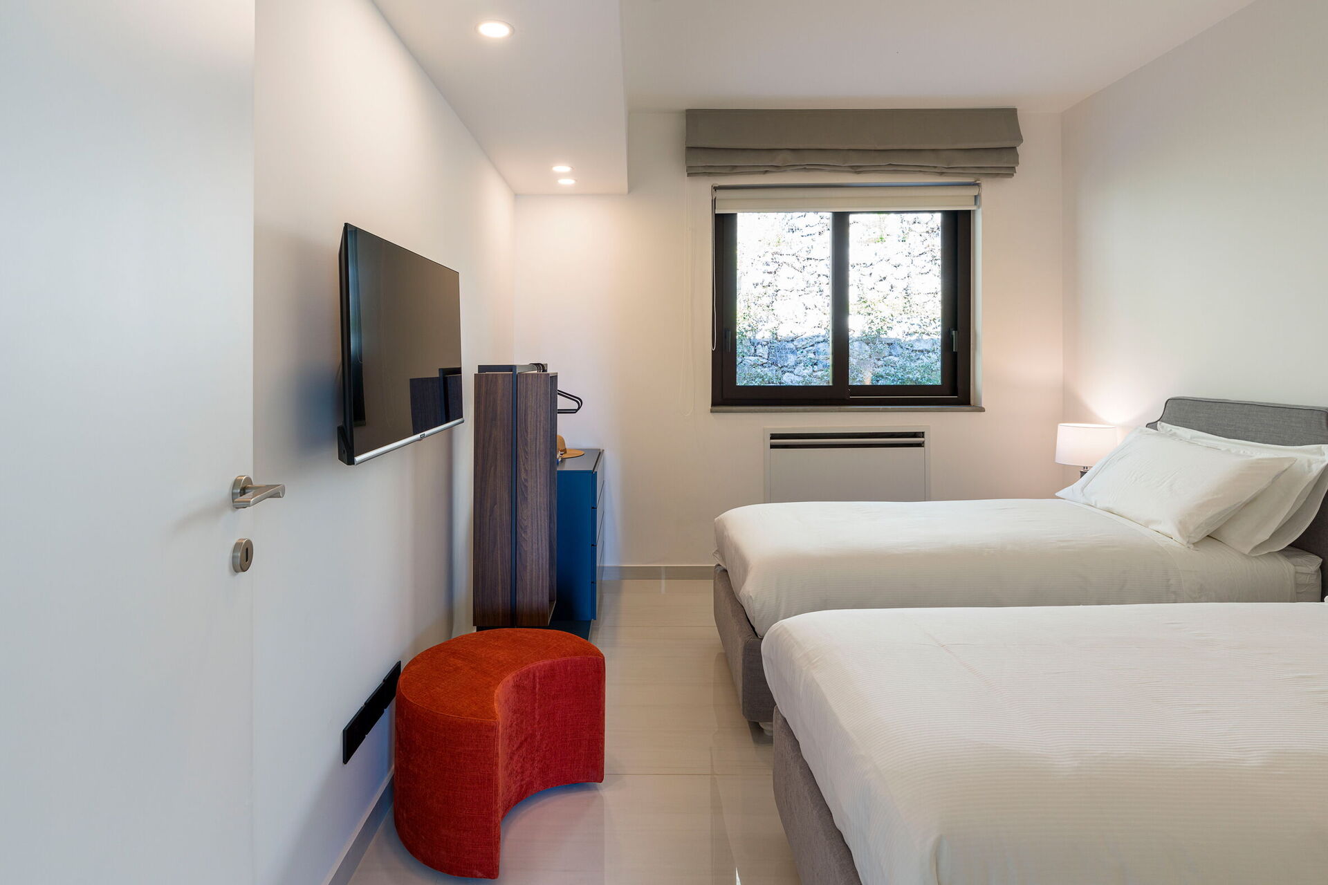 Stue (aircondition, TV), kjøkken (kokeplater, stekeovn, kjøleskap, fryser, oppvaskmaskin, mikrobølgeovn, brødrister, espressomaskin, kaffetrakter) med spiseplass, 2 dobbeltrom (aircondition, TV, myggnetting) med eget bad med dusj, 1 toalett