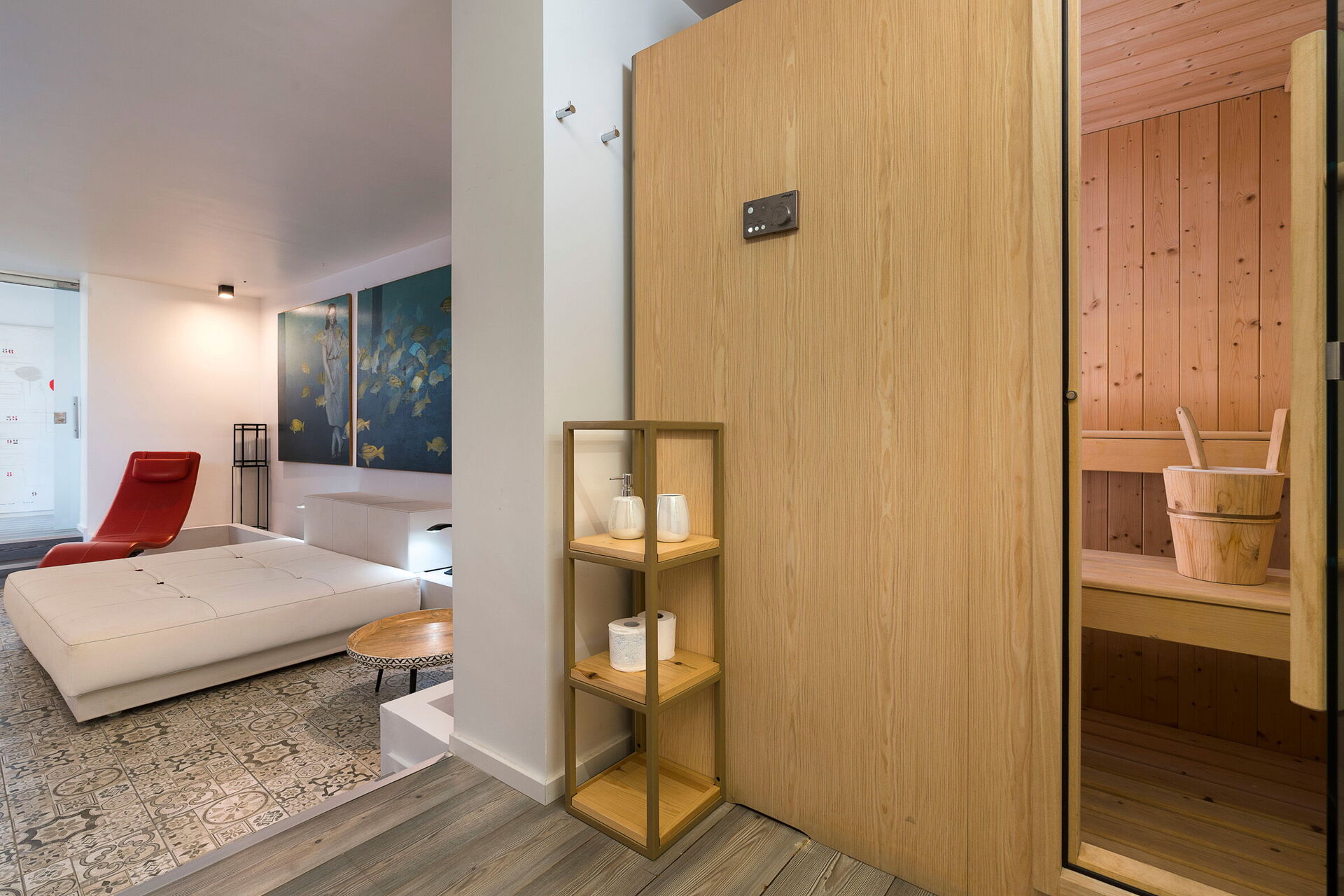 Gjestene har også tilgjengelig et eksklusivt velværeområdet med badstue og boblebad.