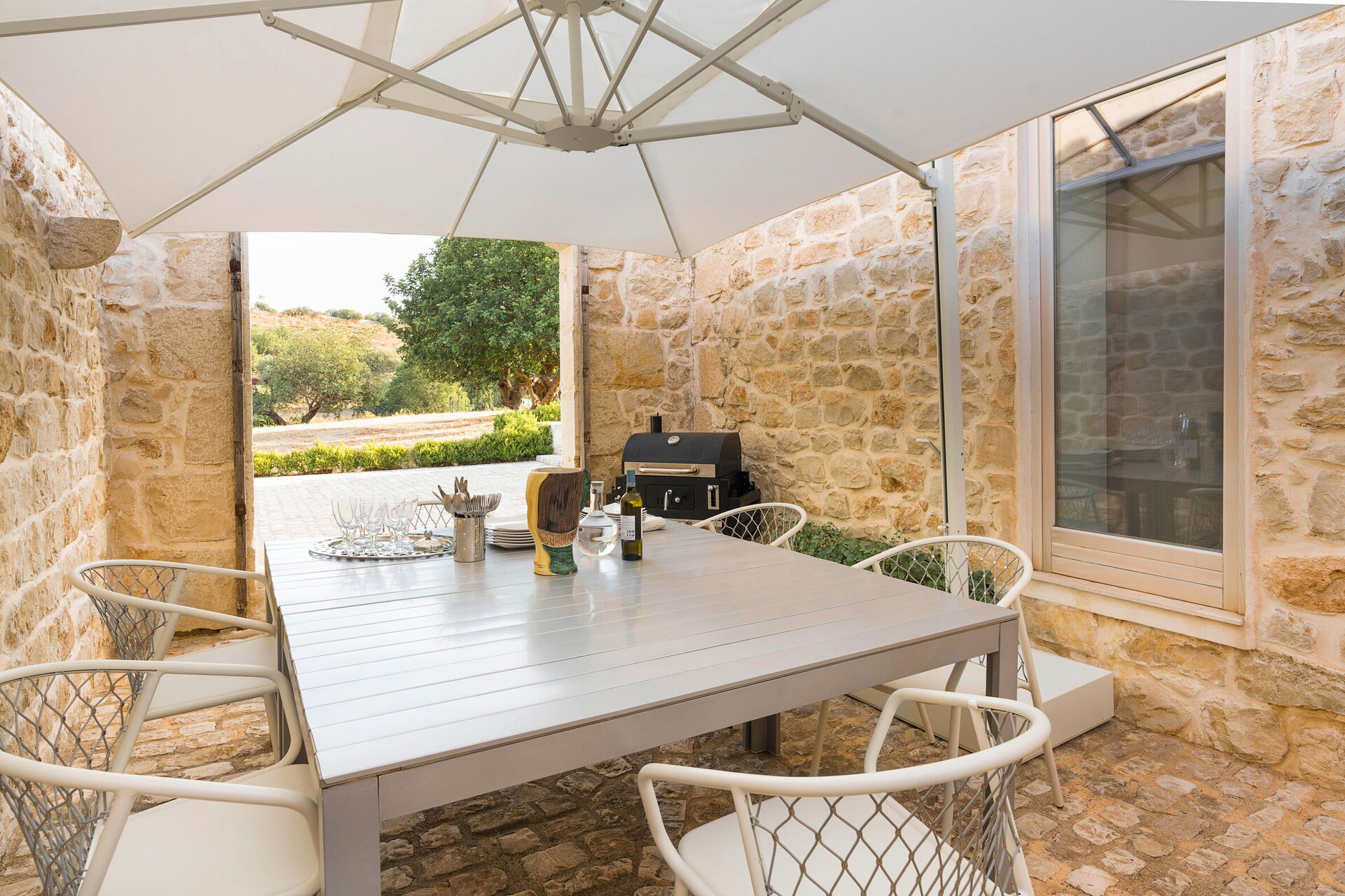 Villa Luna er omgitt av en velholdt hage med oliven-, mandel- og sitrus- trær, aromatiske planter og prydplanter. Feriehuset glir perfekt inn i omgivelsene og kan skryte av fortryllende utsikt over det pittoreske landskapet fra de store terrassene eller fra infinity poolen.
