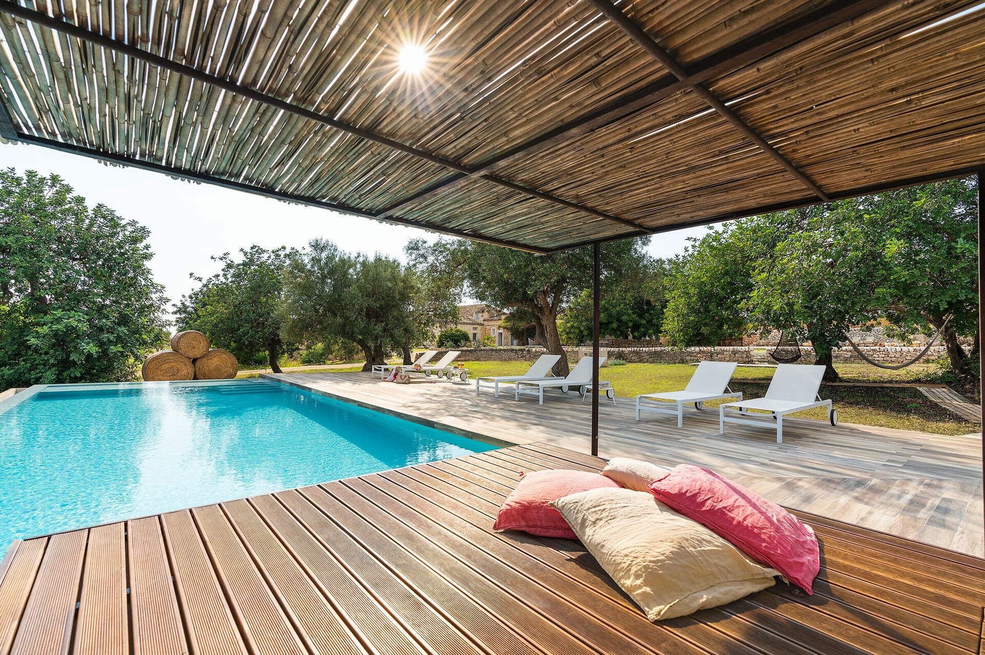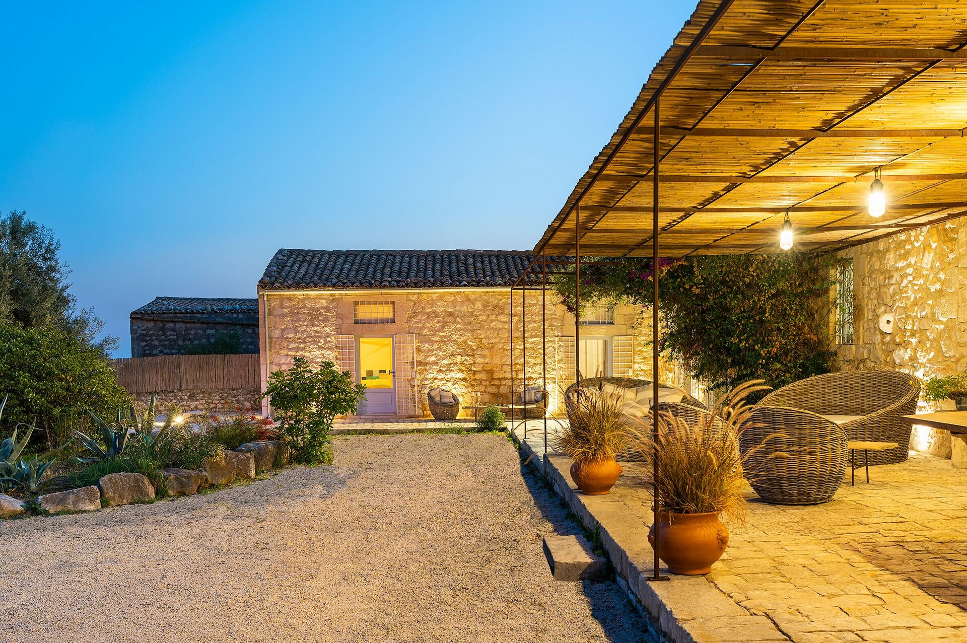 Villa Dimora Pura er en eksklusiv eiendom for en uforglemmelig ferie på Sicilia sammen med familie eller venner. Med 6 soverom (ett på loft), har hust plass til 10-12 personer. Eiendommen ligger i nærheten av den spektakulære barokkbyen Scicli som er på UNESCOs verdensarvliste. Fra huset har man panoramautsikt til det vakre sicilianske landskapet rundt. Naturparken som omgir villaen byr på ro og privatliv for gjestene. Feriehuset har pittoreske, tradisjonelle natursteinvegger.