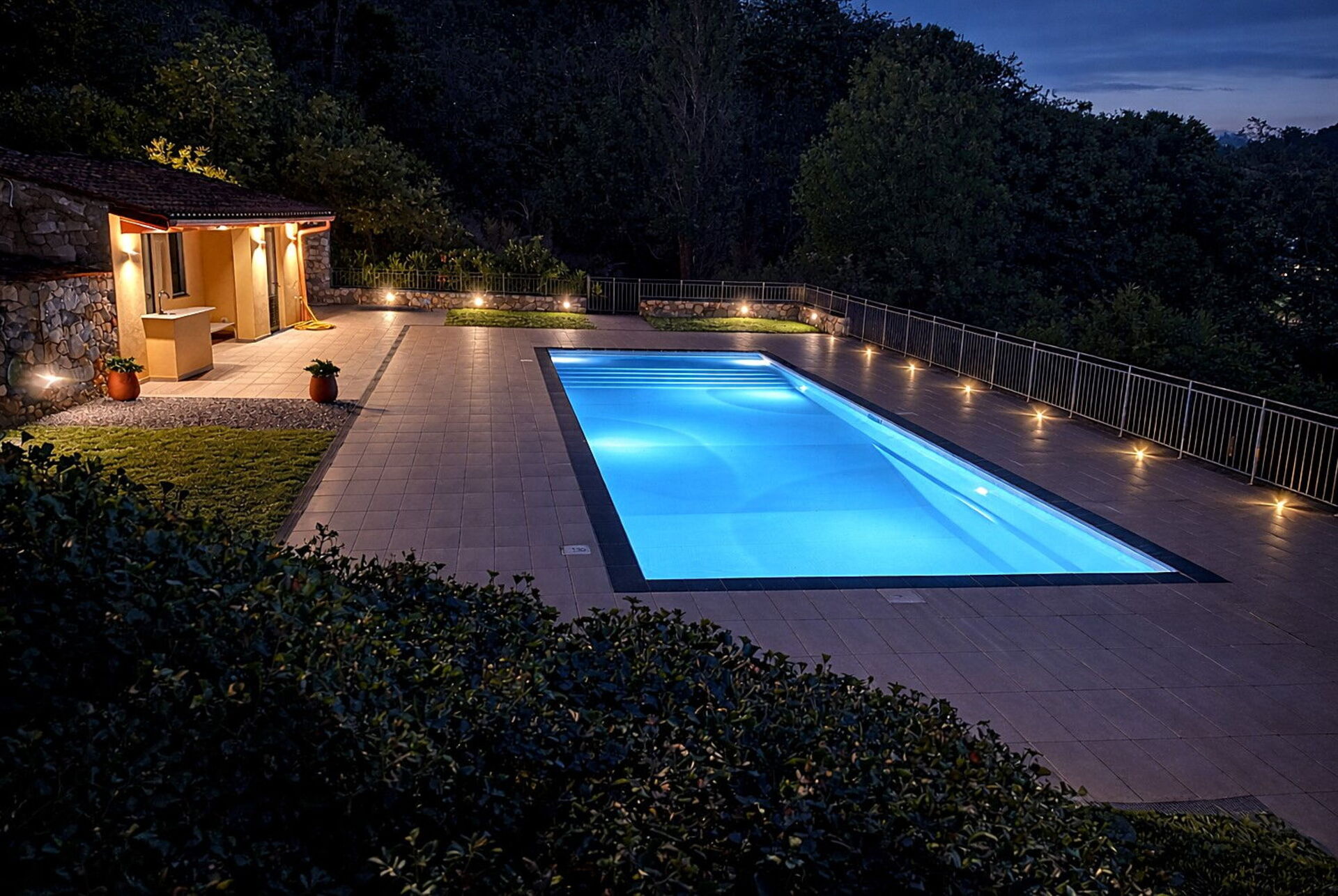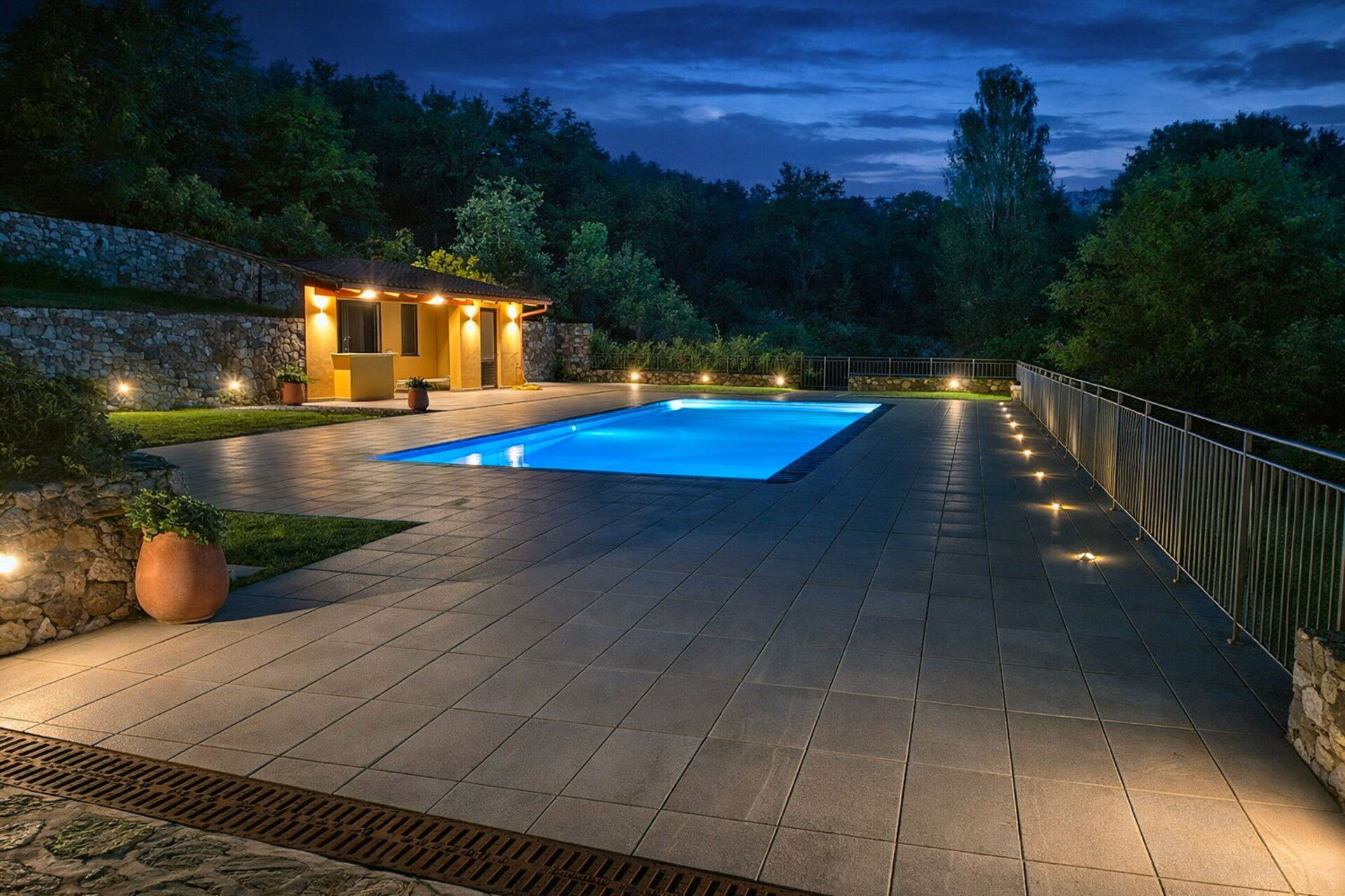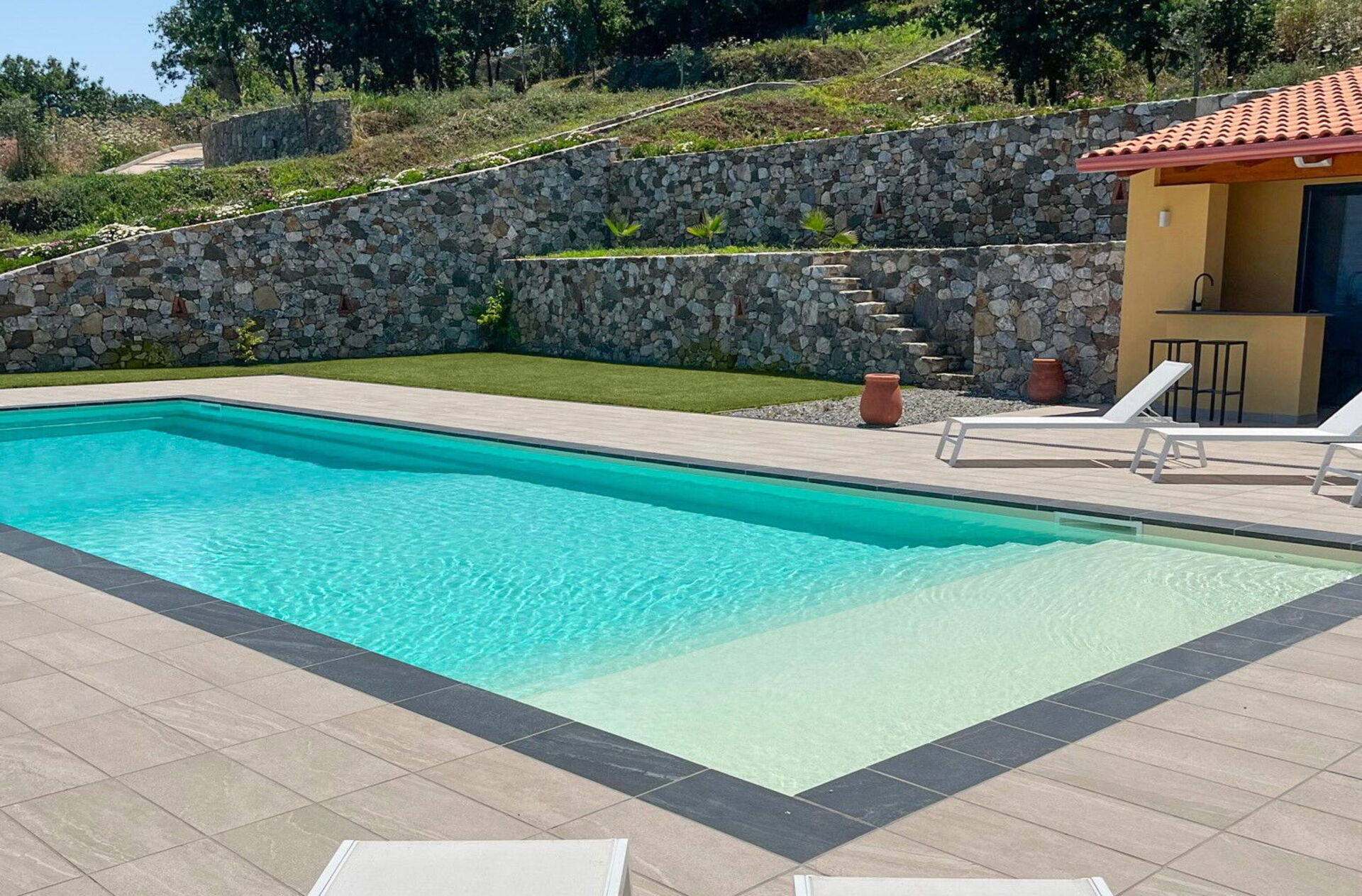 - privat basseng til eksklusiv bruk for gjestene (15 X 5 meter; minimum dybde: 0,20 meter; maksimal dybde: 2,25 meter; saltrenseanlegg og motstrømsvømming)