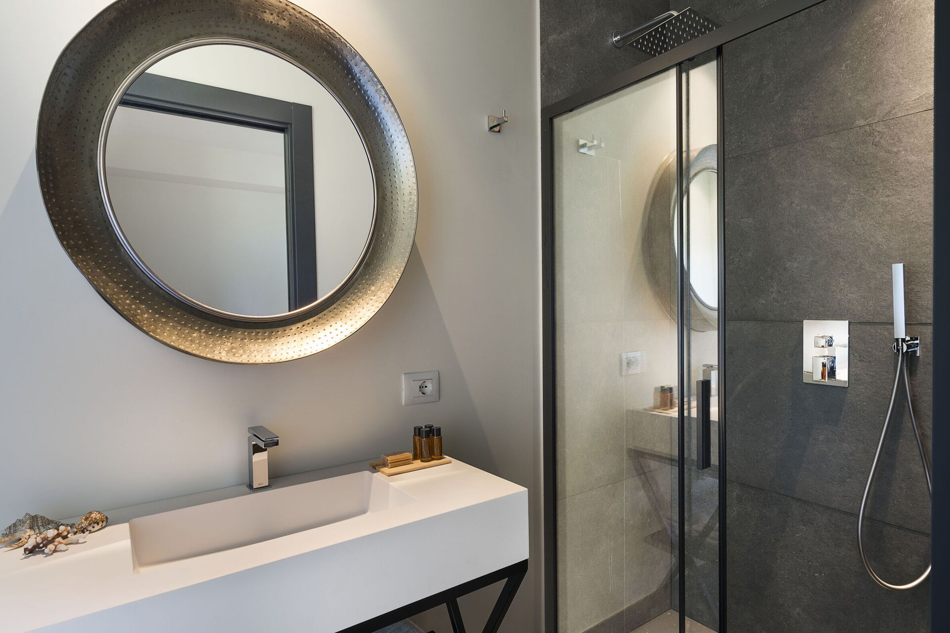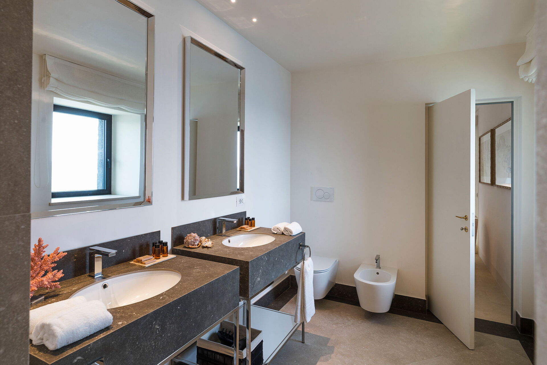 Andre etasje: 3 doble soverom (aircondition, myggnett) med hvert sitt private bad med dusj.