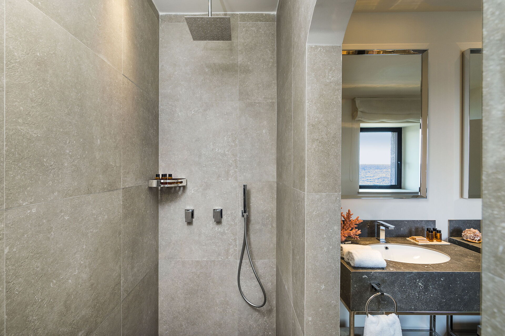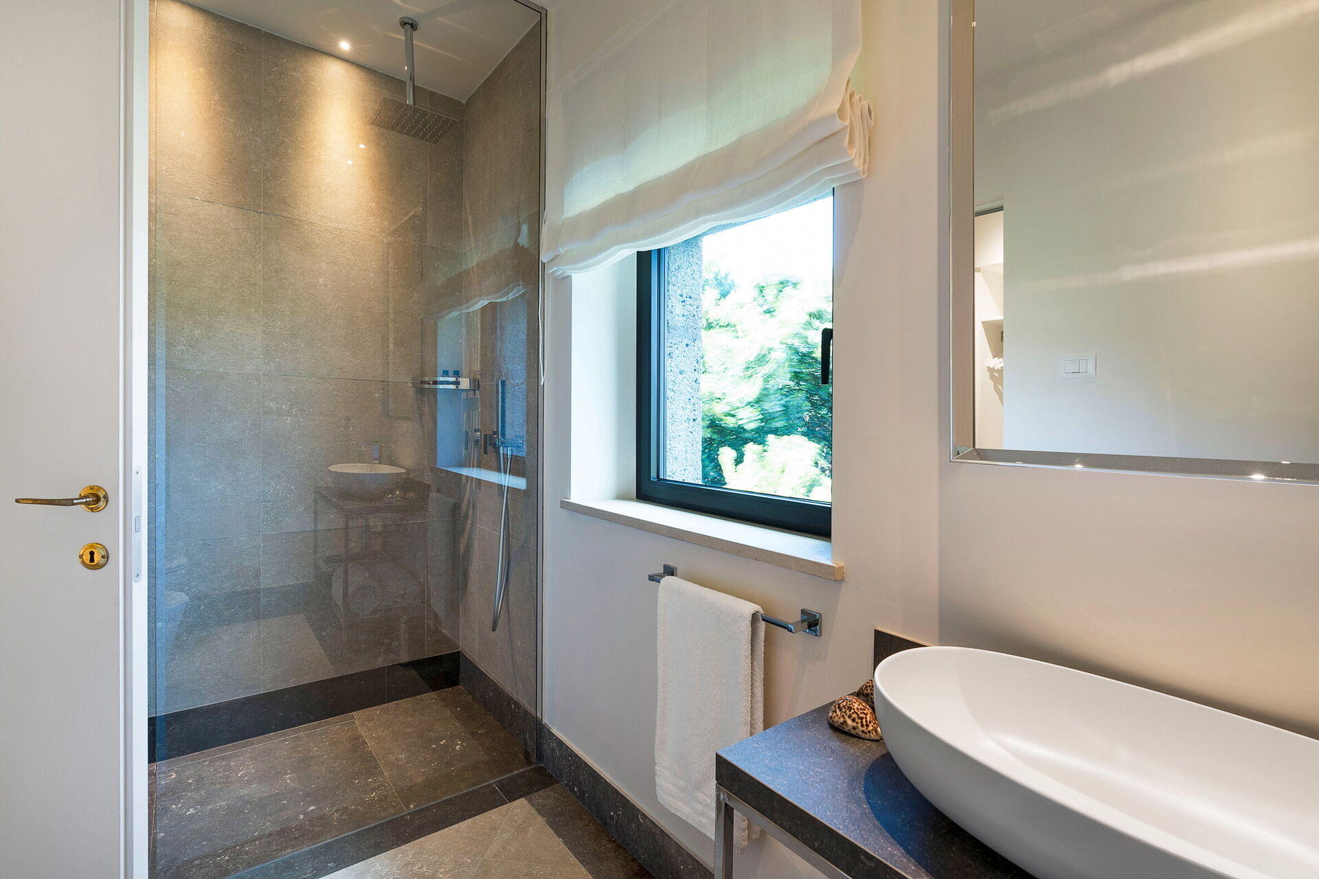 Første etasje: (kun tilgjengelig fra utsiden, ikke sammenkoblet med resten av villaen innvendig): omkledningsrom, bad med dusj.