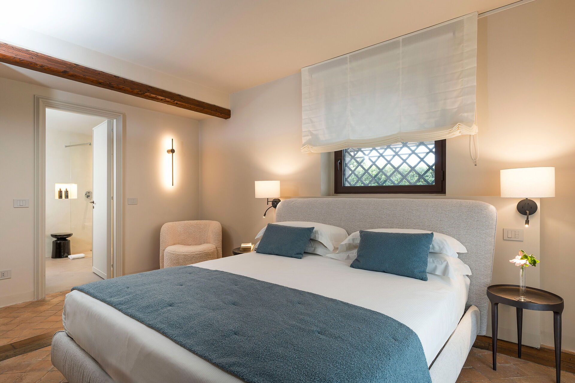 At guests’ disposal there is also a tennis court, a fitness area, and a wellness area with a steam bath and sauna.