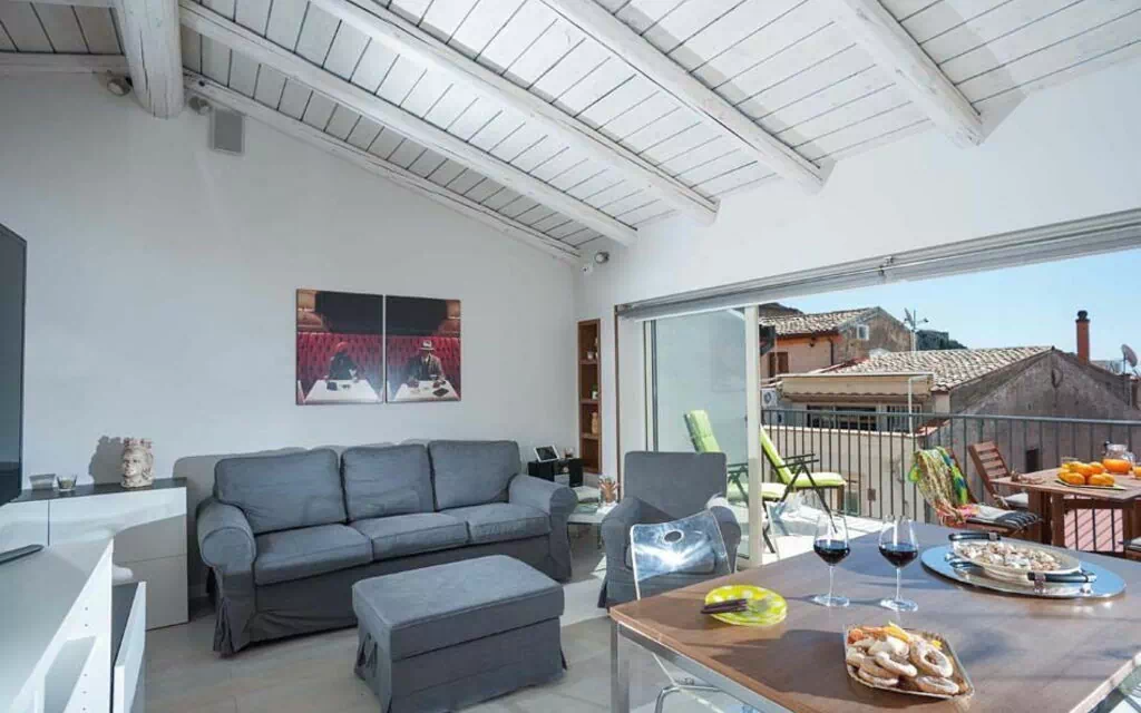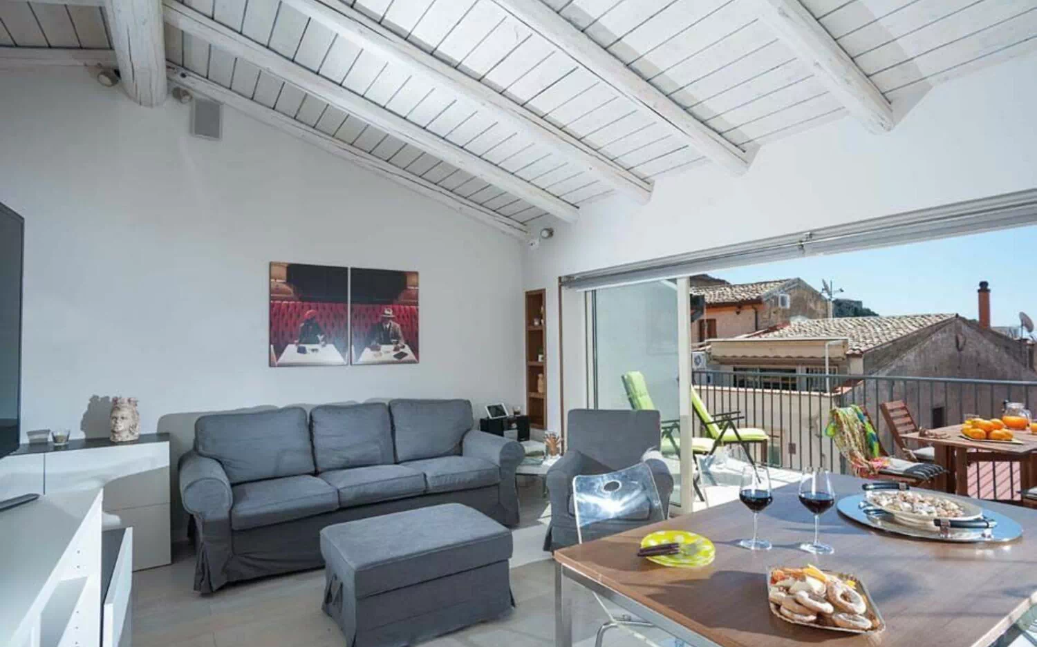 Eksklusiv penthouse leilighet med terrasse i sentrum av Taormina, bare noen få skritt unna elegante Corso Umberto.