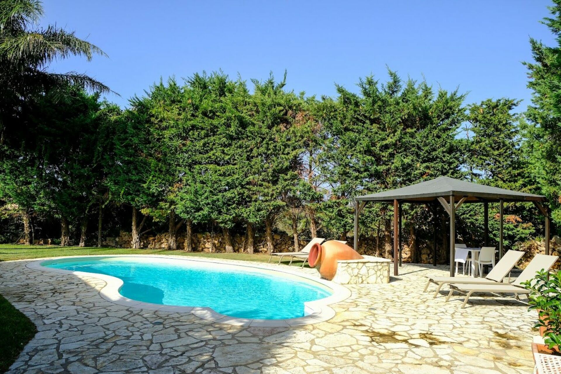 The villa is stunning and the pool is fantastic. There are however many issues with the property that needs to be rectified. The TV did not work, the low power to the property meant you could not use the appliances when the air conditioners were on. We were locked out of the property as the front gate would not open. There was no kettle, we had to get one, neither the toaster or the espresso machine had the right plugs on them to use. The property did not have a welcome letter explaining how to use the appliances or requirements for managing the property, i.e. recycling and use of bins. Other then that, the owner (Marzia) and the agent (Rosaria) who met us and helped us with all our needs were excellent.