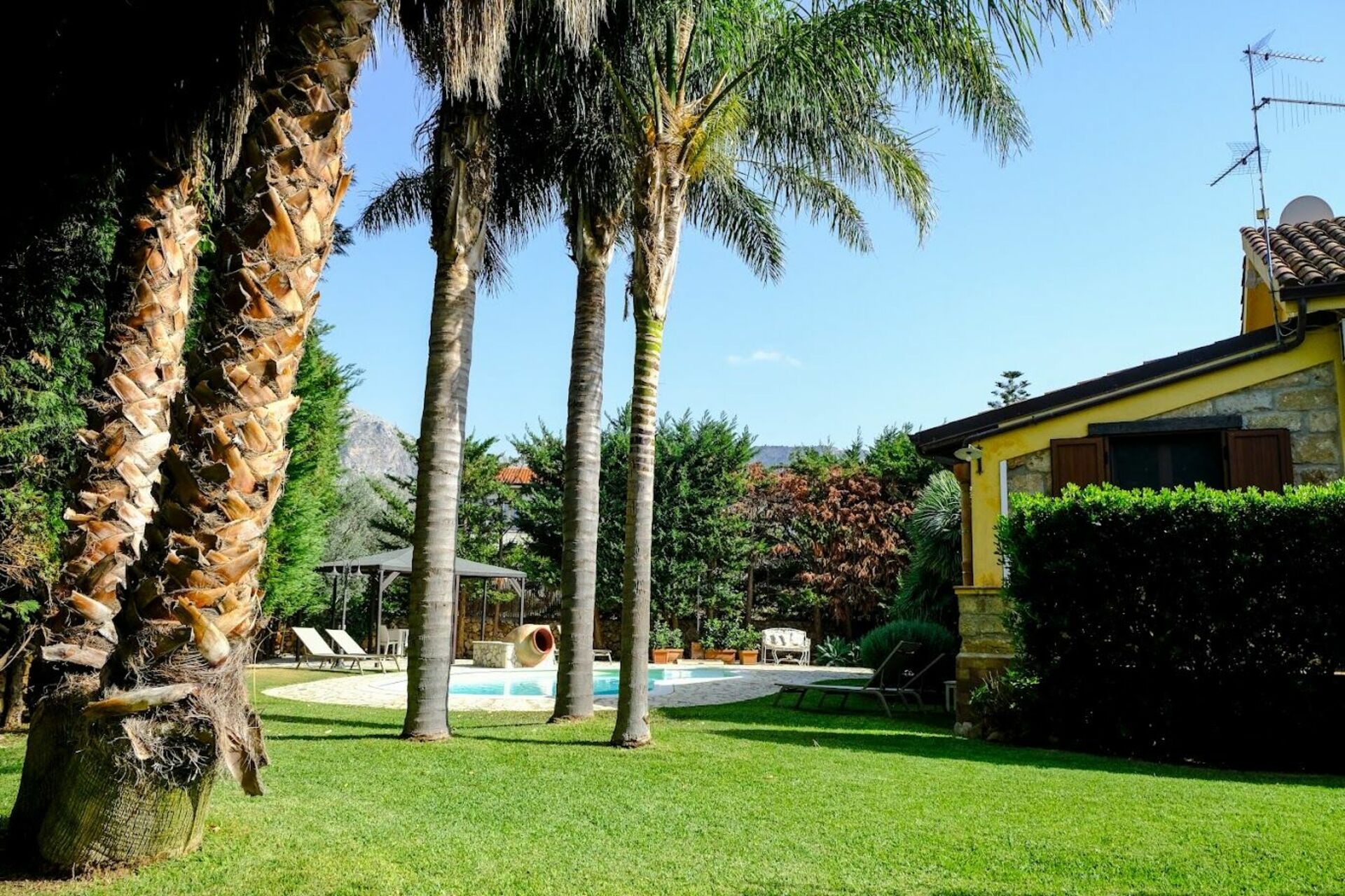 Avstander: Terrasini (alt av butikker) 1 km, Mondello med fine strender 20 km, Palermo 30 km, Segesta 35 km.