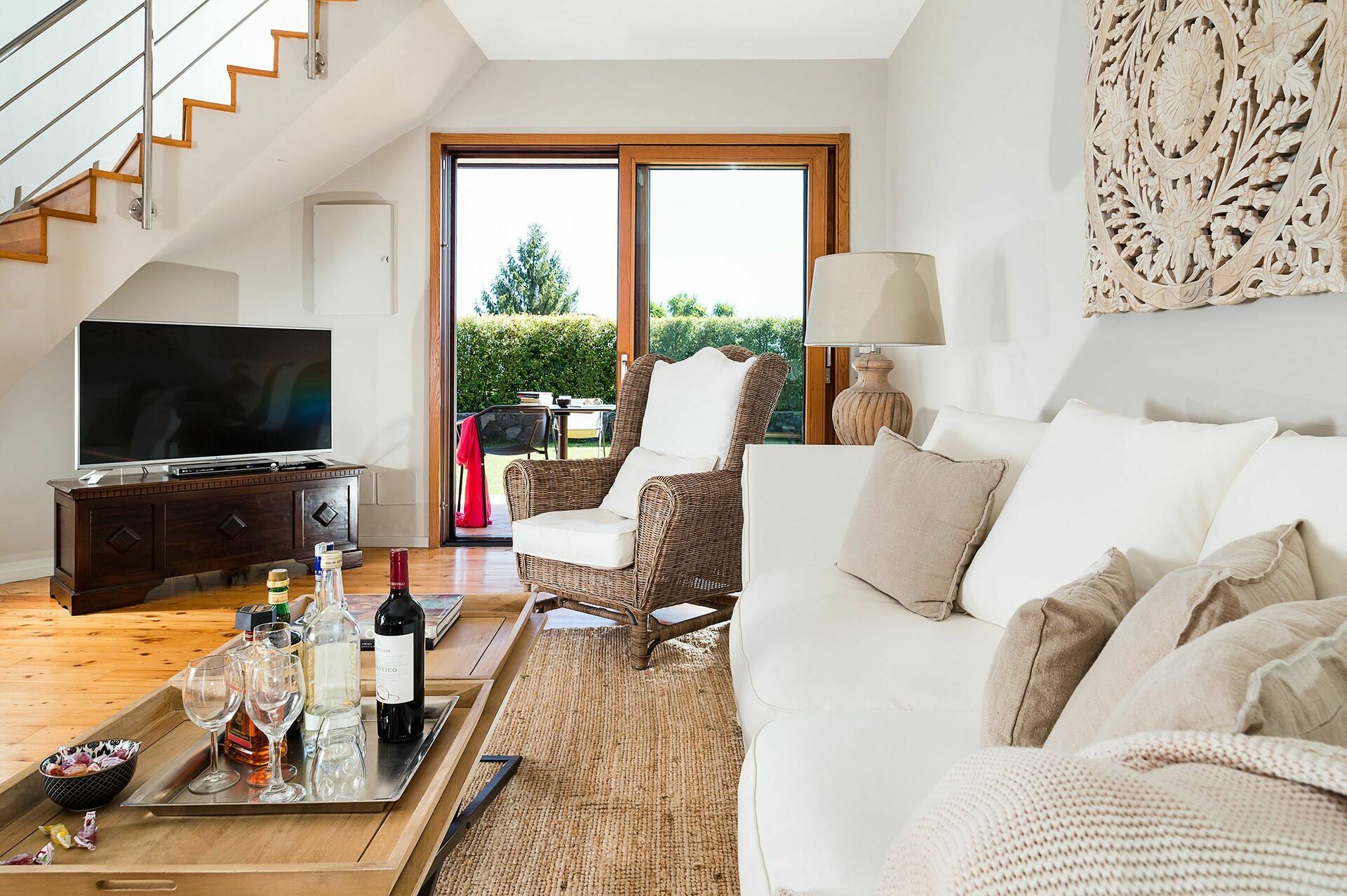 I første etasje er det varmt, koselig stue med stue, spisestue og et fullt utstyrt murkjøkken. Fra spisestuen, fører en trapp til underetasjen med tre soverom med eget bad, en gang med en sovesofa og en lys stue.