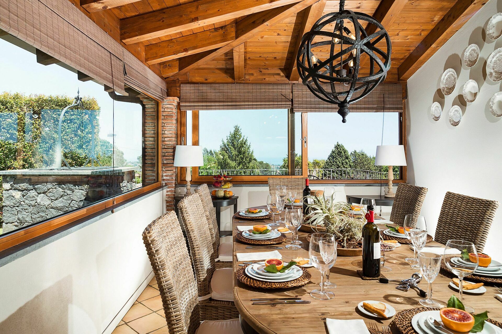 Etna Park med sin imponerende natur og vinveien (rundt Etna lages noe av italias beste hvitviner), men også de sjarmerende, vakre byene på sør-østsiden av Sicilia, som Taormina, Catania, Syracuse og Ragusa. Feriehuset byr gjestene på raffinerte, elegante rom innredet for perfekt komfort med det aller beste inventar, som for eksempel parkett og kostbare tekstiler.