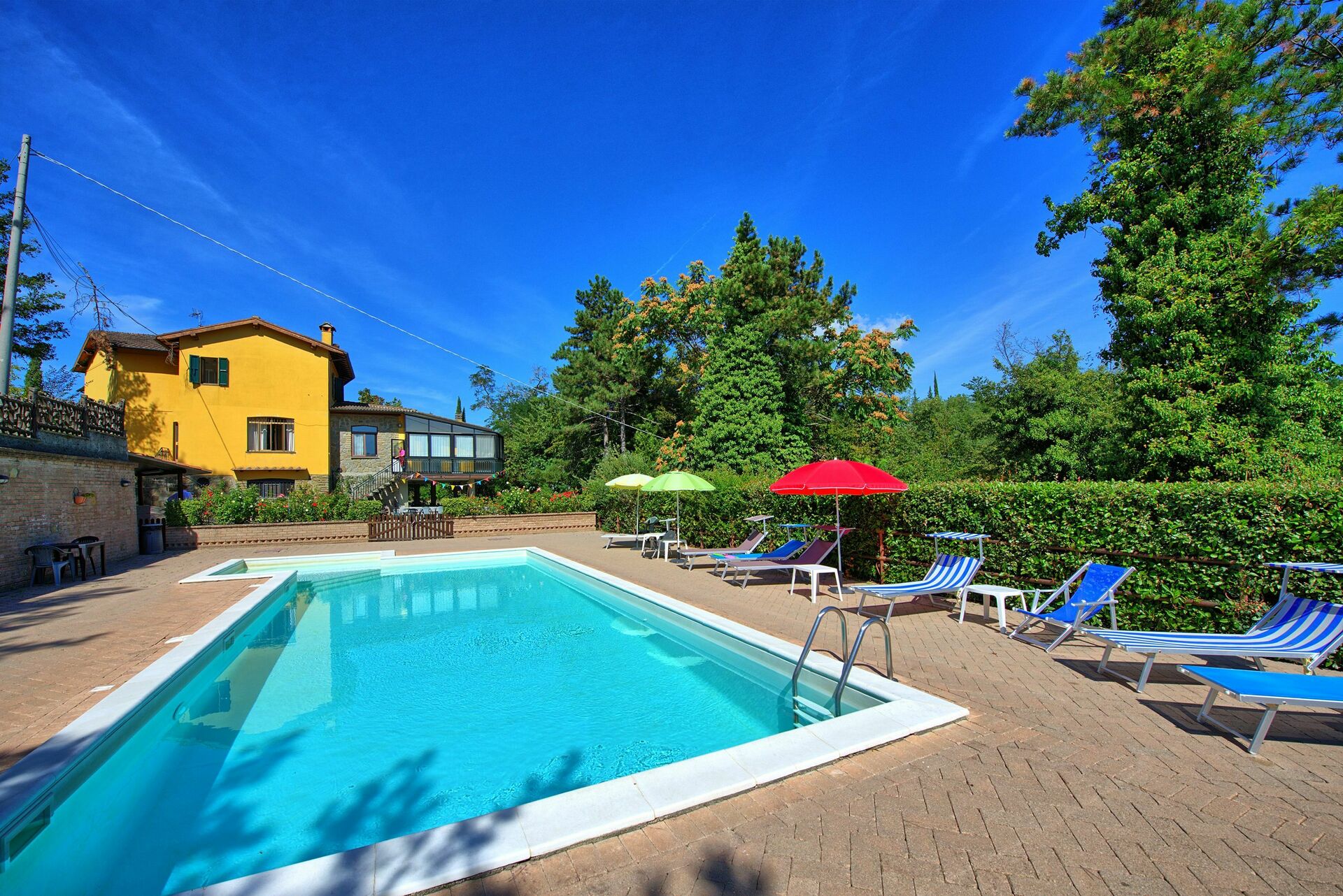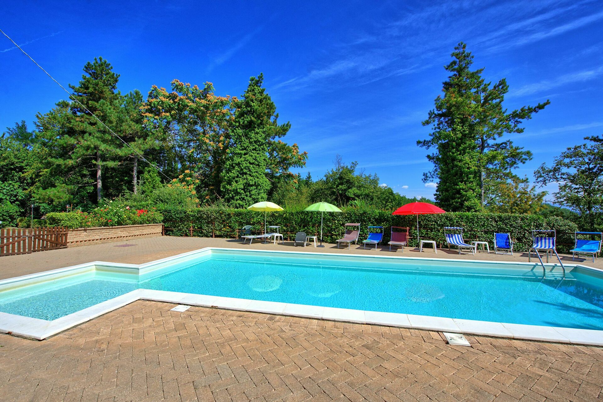 Villa Lorenzo er et romslig feriehus med basseng i frodige omgivelser på åsene øst for Arezzo i Toscana.