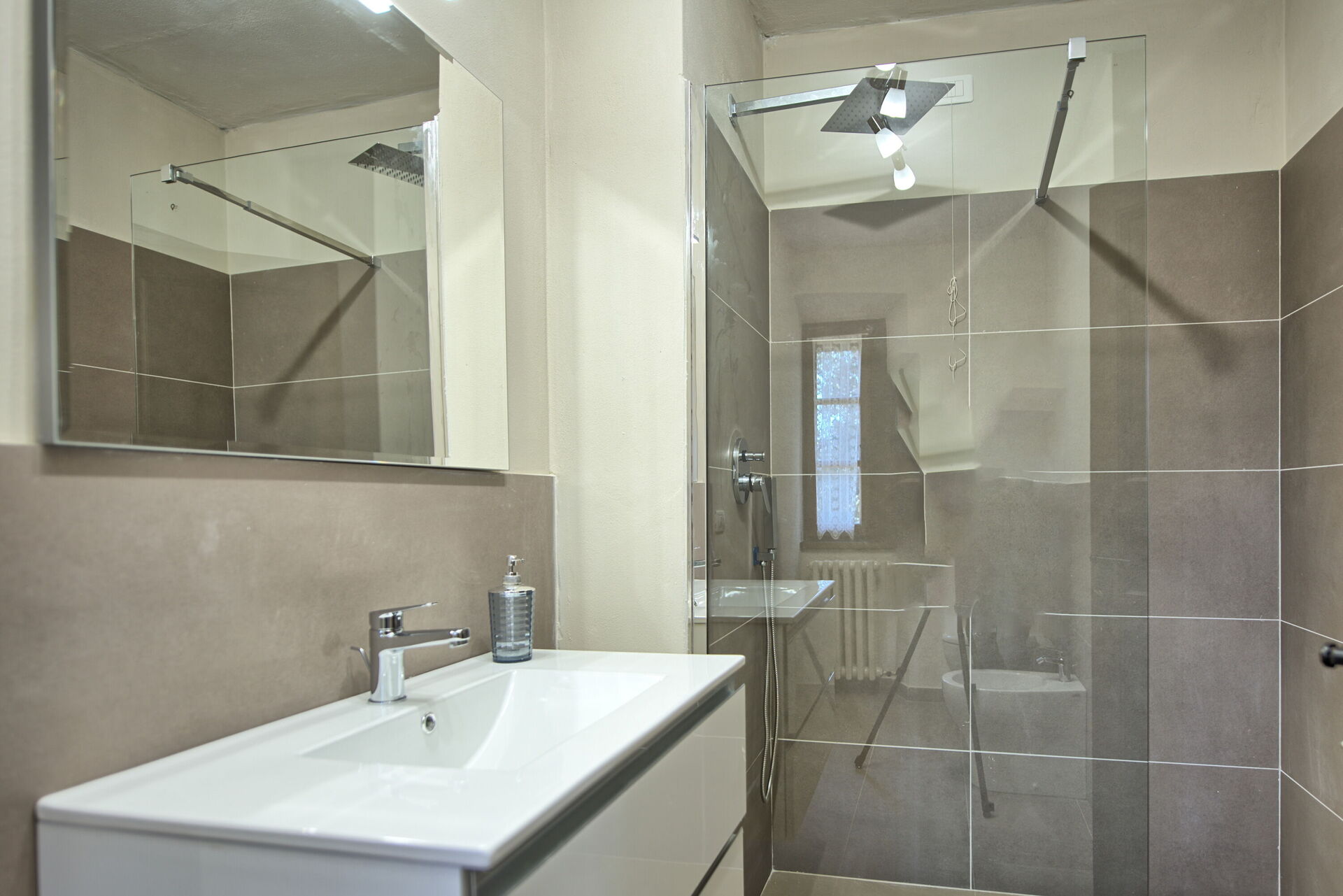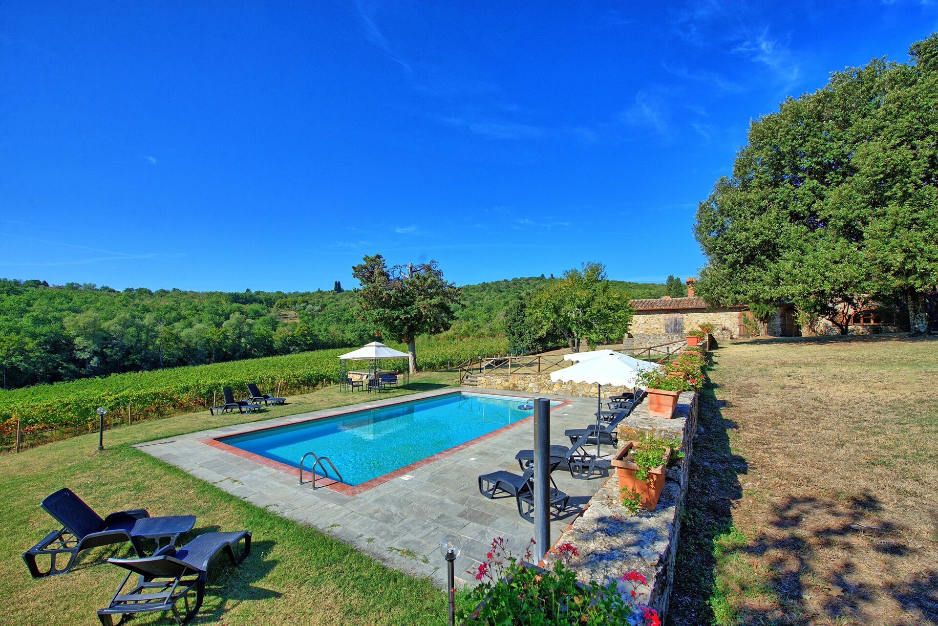 The property is in a beautiful but quiet location surrounded by vineyards and spectacular Tuscan scenery. The apartment was spacious and generally cool inside despite the high temperatures outside. The pool area is superb with extensive paving and plenty of sun-loungers