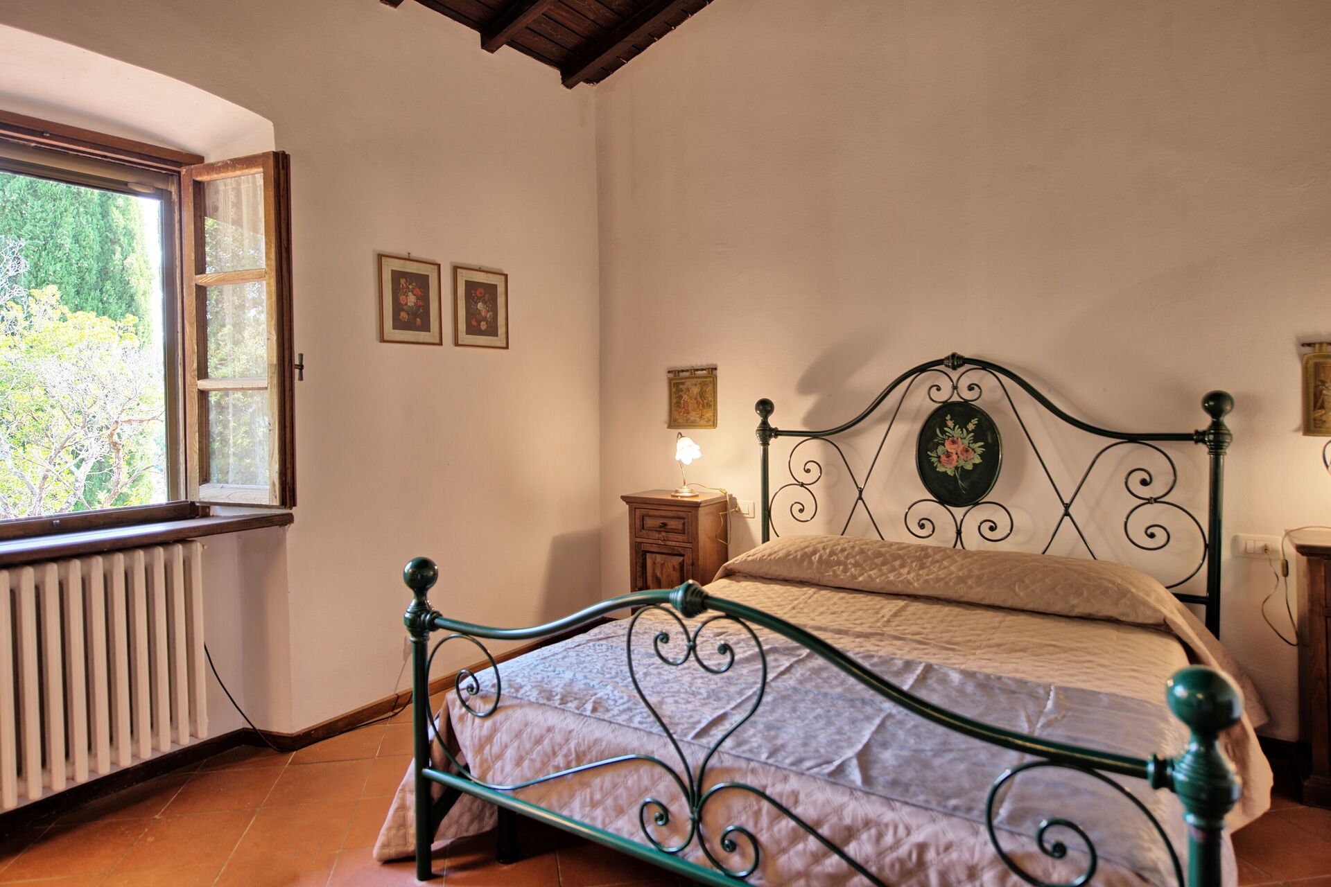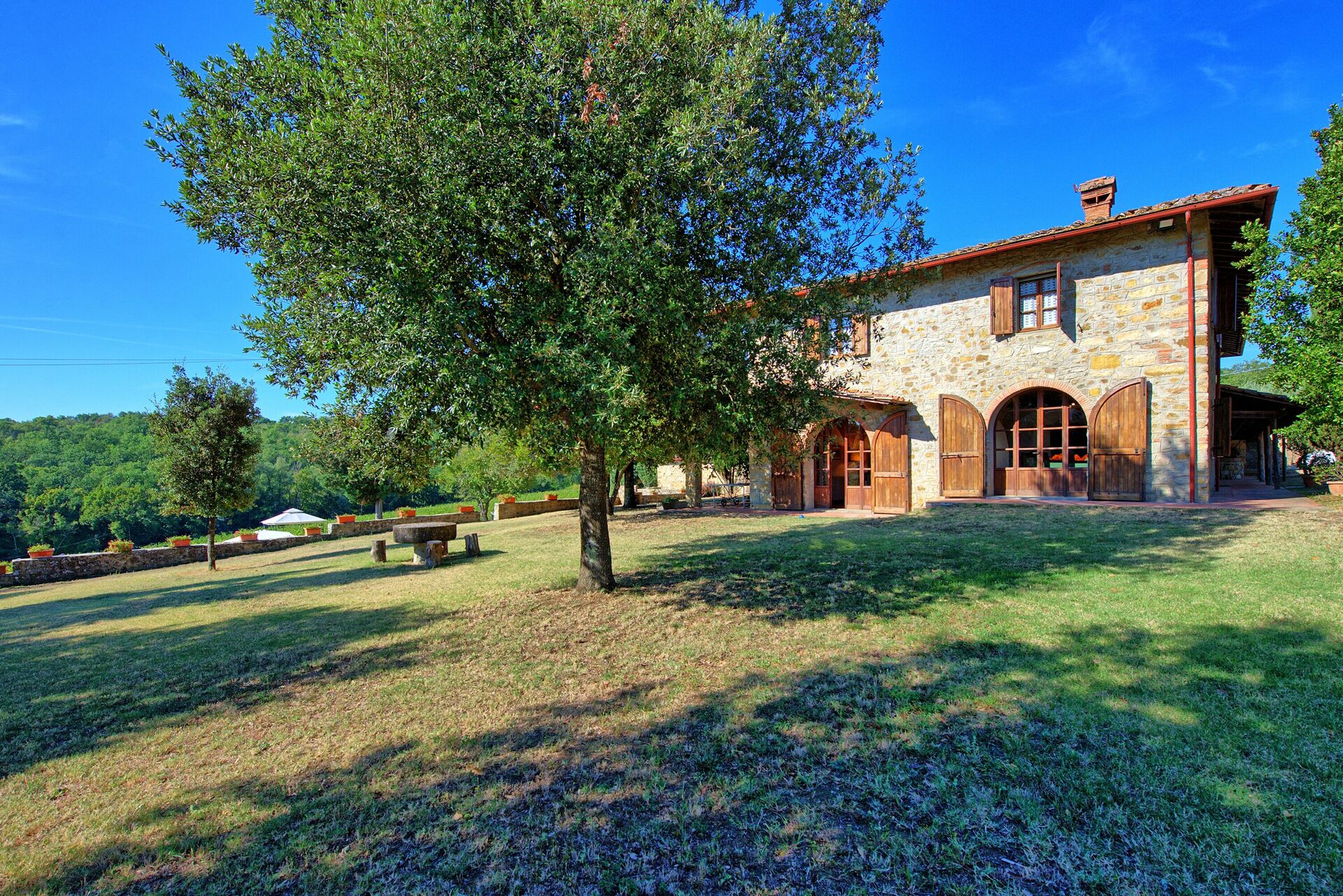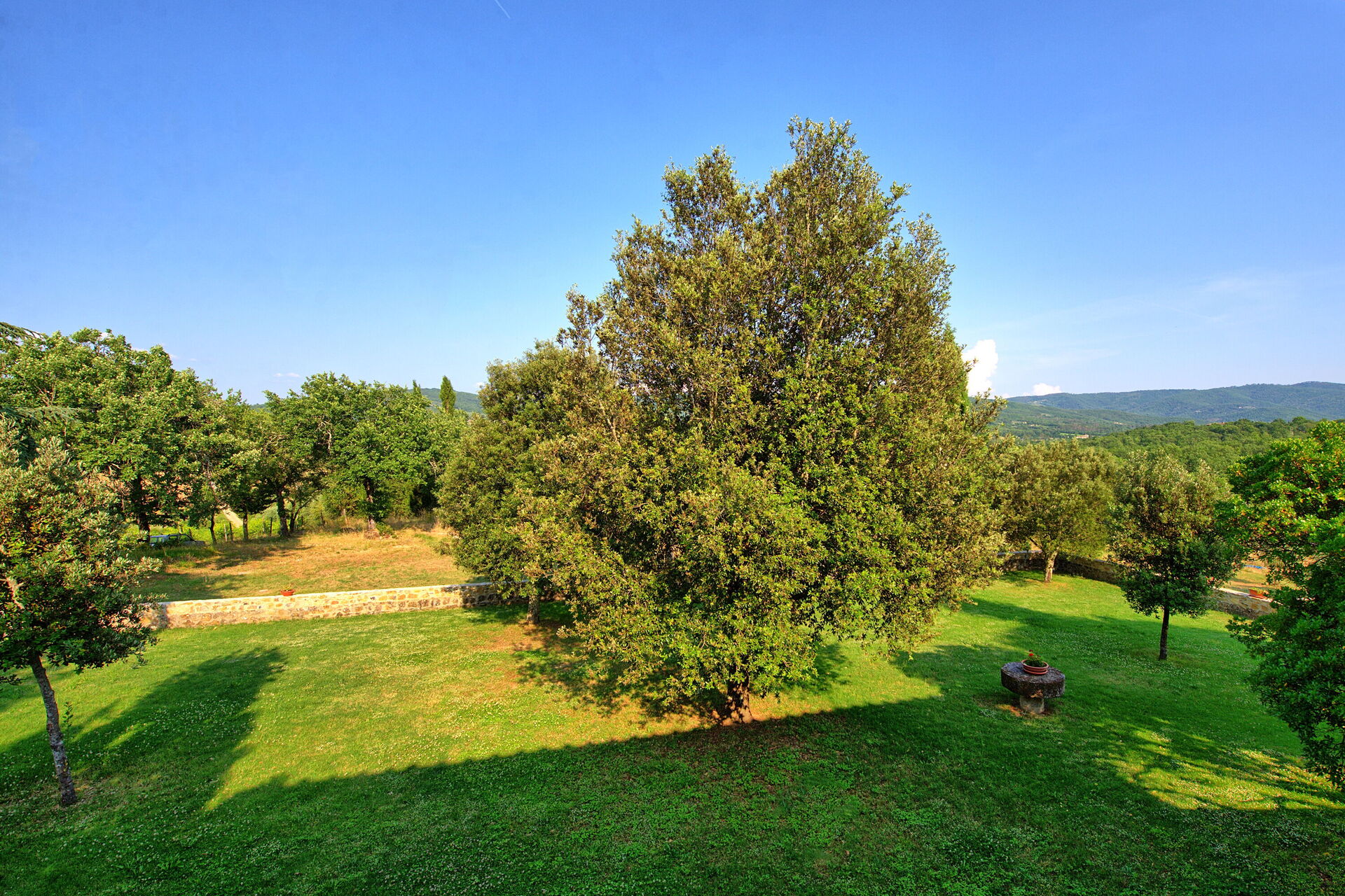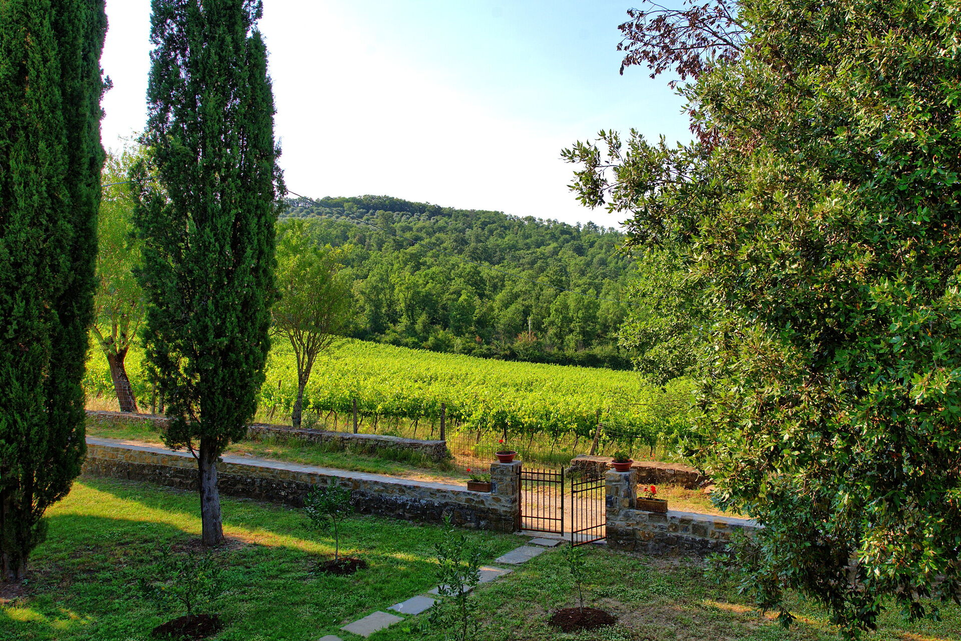 Feriehuset ligger frodig til i Toscana og har en flott grønn hage. Damen som passer på huset, bor på stedet ved siden av i et anneks, totalt upåtrengende.
