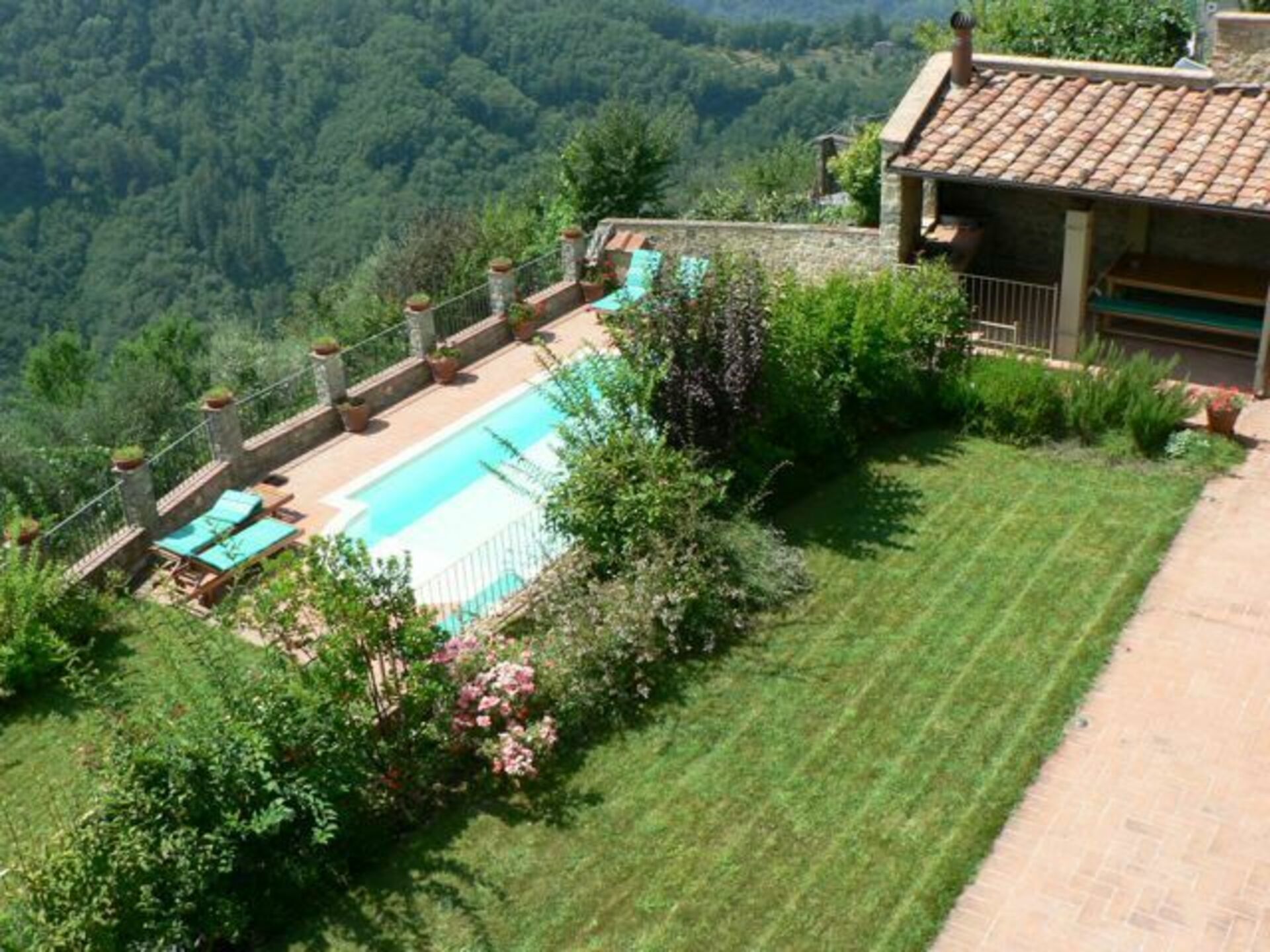 Avstander: Huset ligger kun noen meter fra Lugliano sentrum, Bagni di Lucca med supermarked, alle typer butikker og resturanter 2 km. Lucca 23 km, Pisa 41 km, Firenze 80 km.