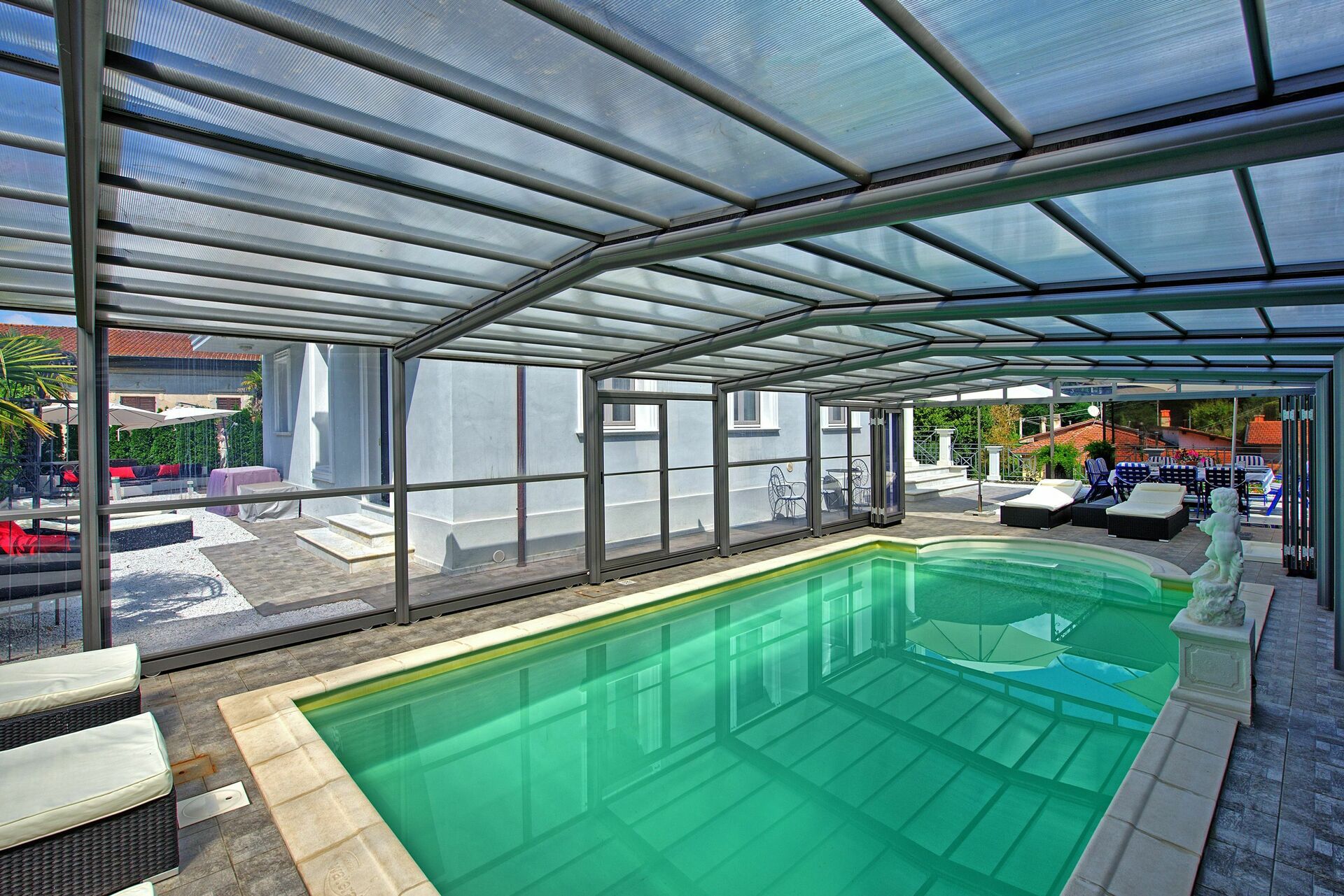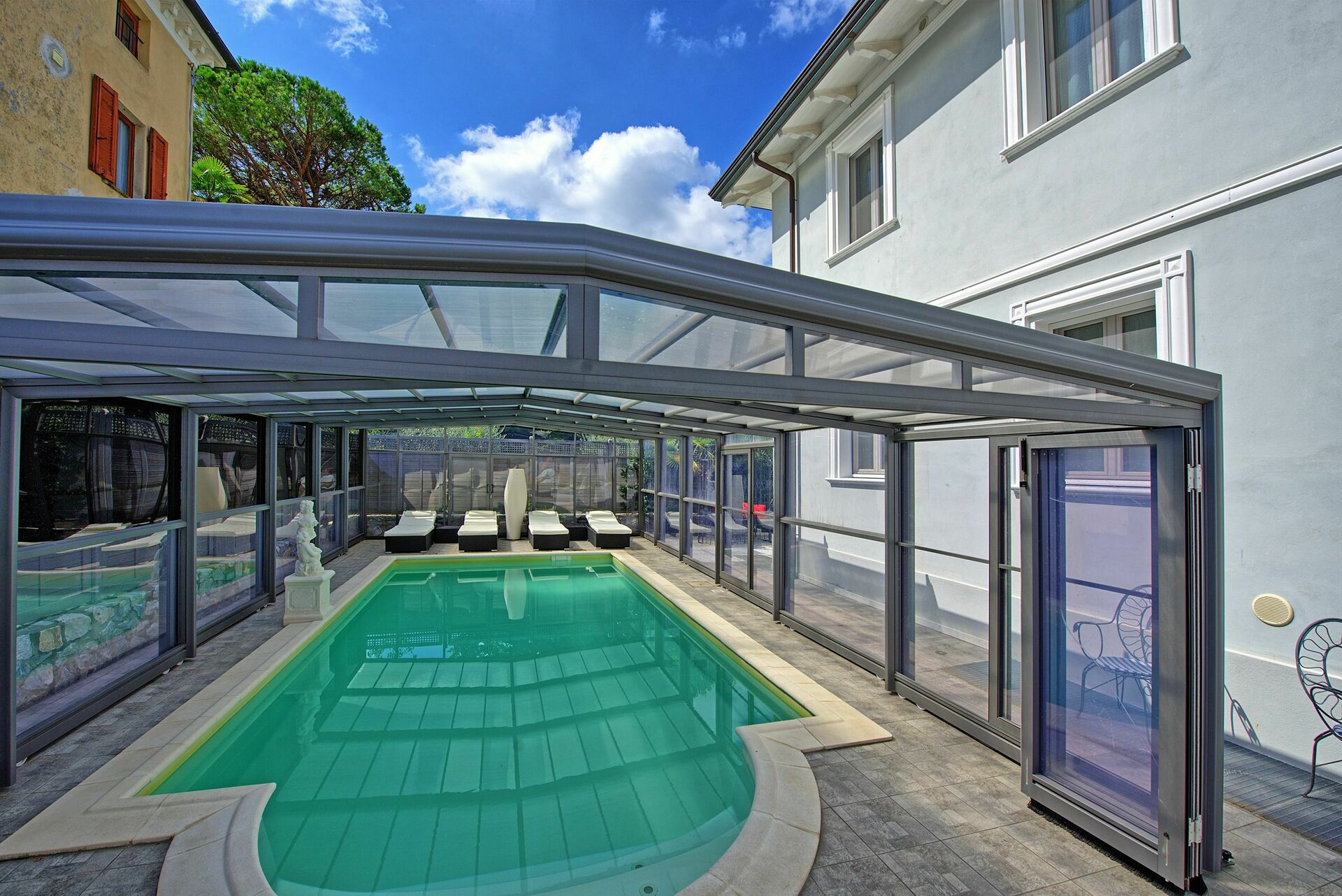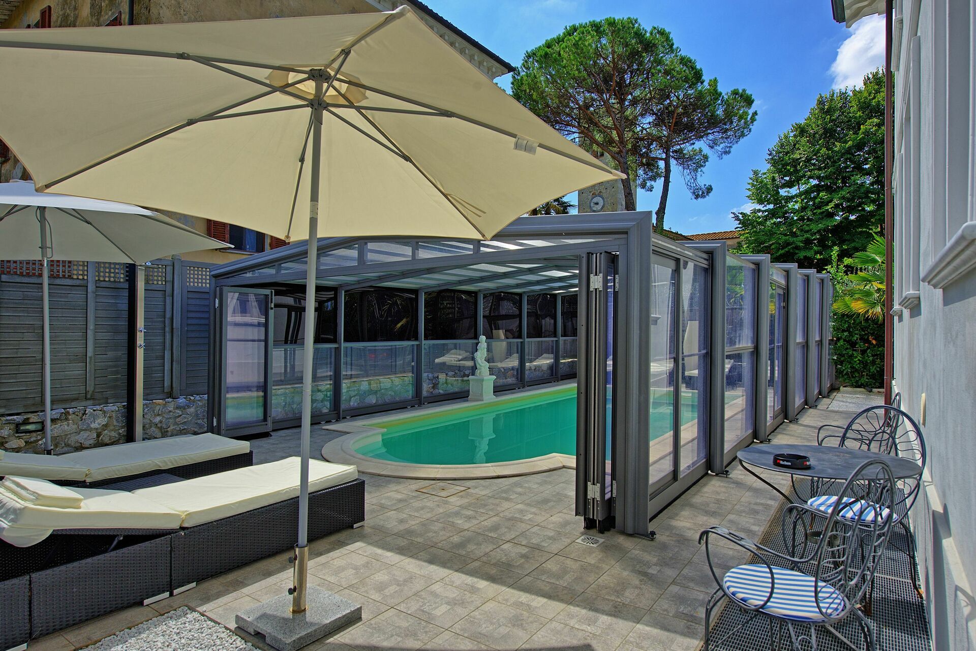 The pool is covered, but we were only able to use it once. Obviously due to the time of the year we visited, it was very cold. There is also an issue with sand in the pool. The owners were diligent in cleaning it, but they were unfortunately unable to remove it. I think if you visit in the height of the summer, the pool will be much warmer.
