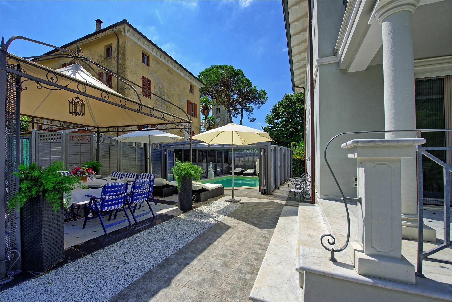 Fantastisk feriehus på åsene bak Versilia-kysten i Toscana. Versilia-kysten i Italia er kjent for sine vakre strender, shopping og sitt yrende natteliv. Glem hverdagens mas og stress ved å nyte et opphold i boblebadet, eller se en film i den fantastiske kinorommet, spille biljard og mange mange andre aktiviteter.