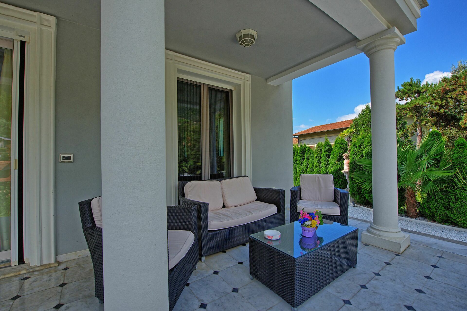 På uteområdet av villaen ønsker velkommen en flott stue hvor du kan nyte en drink, lese en bok, høre på musikk takket være hifi-system og mye mer ...