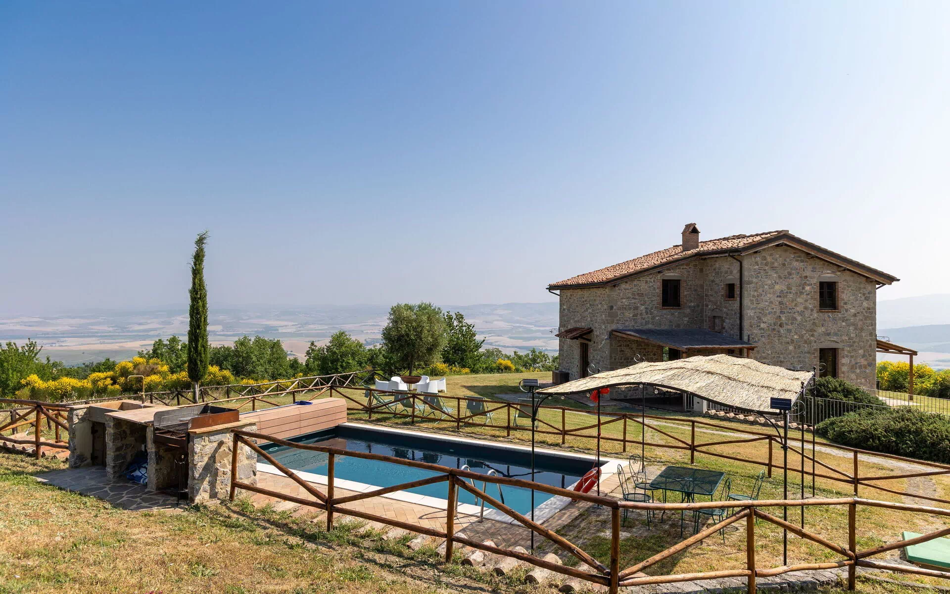 This place is amazing! The owners were very welcoming and took care of every last detail. The house itself is beautiful outside and inside. Everything is clean and all the house appliances worked perfectly. The pool is also perfect and very clean. This property is truly a very special experience in the heart of the Tuscan nature.