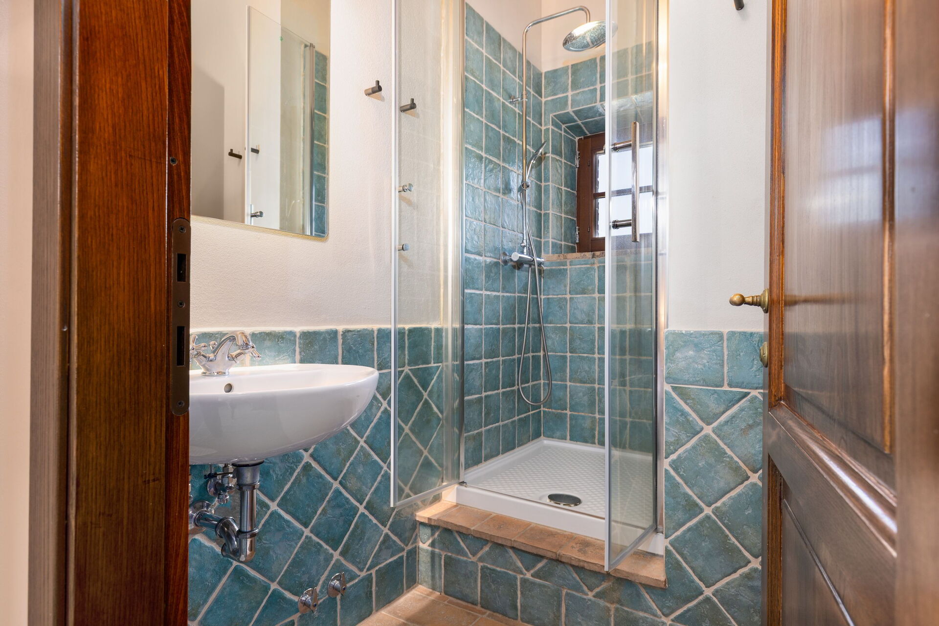 Andre etasje: En trapp med 13 trinn fra kjøkkenområdet leder deg til andre etasje med to doble soverom, et dobbelt soverom med eget bad med dusj, ett soverom med to enkeltsenger, (kan slås sammen på forespørsel) det er et bad med boblebad i korridoren og en ekstra halvt bad (kun wc og vask).
