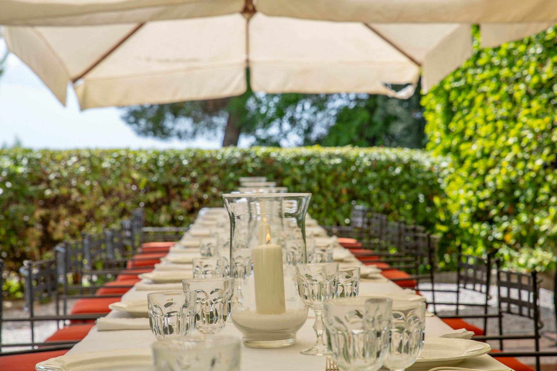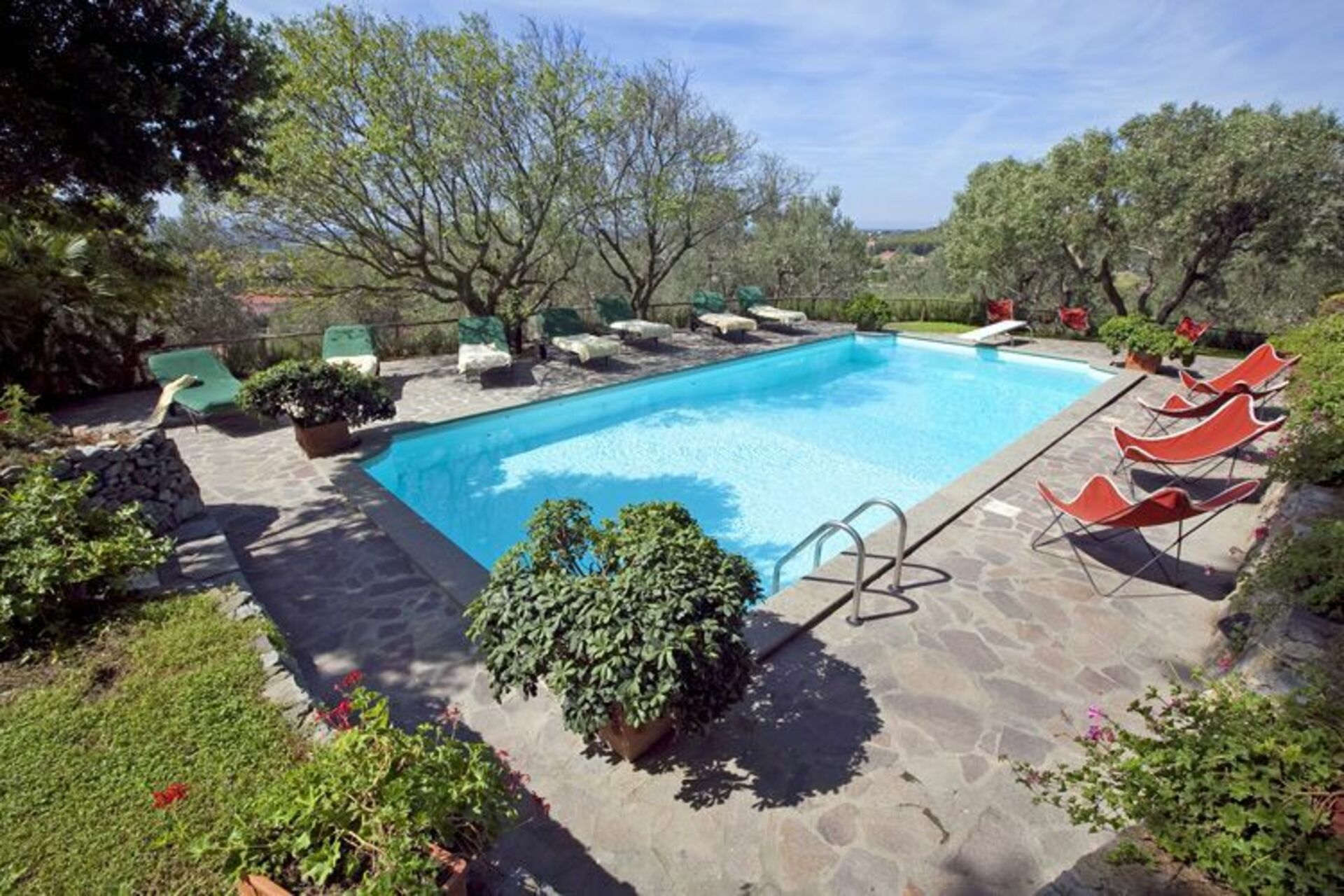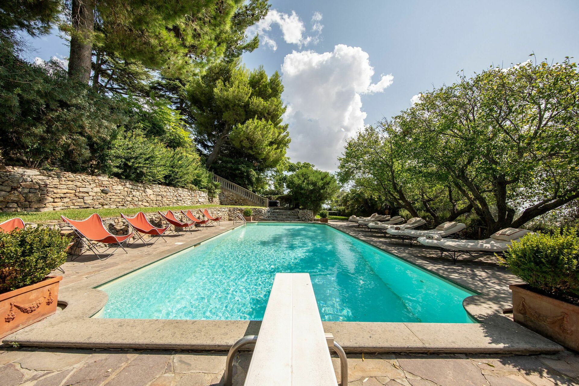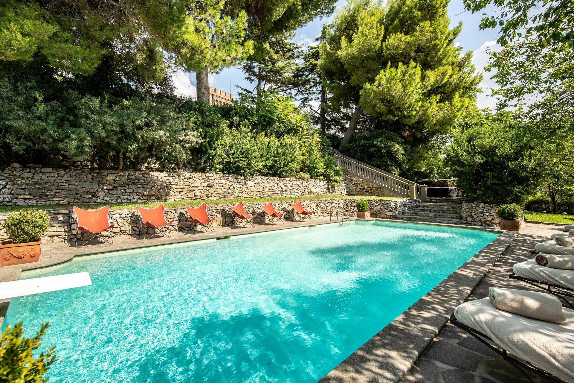 Slottet er omgitt av en stor hage som er svært velstelt som garanterer for gjestenes privatliv. Et svømmebasseng er til bruk kun for gjestene slik at man kan kjøle seg ned på de varmeste dagene i fullstendig fred og ro.