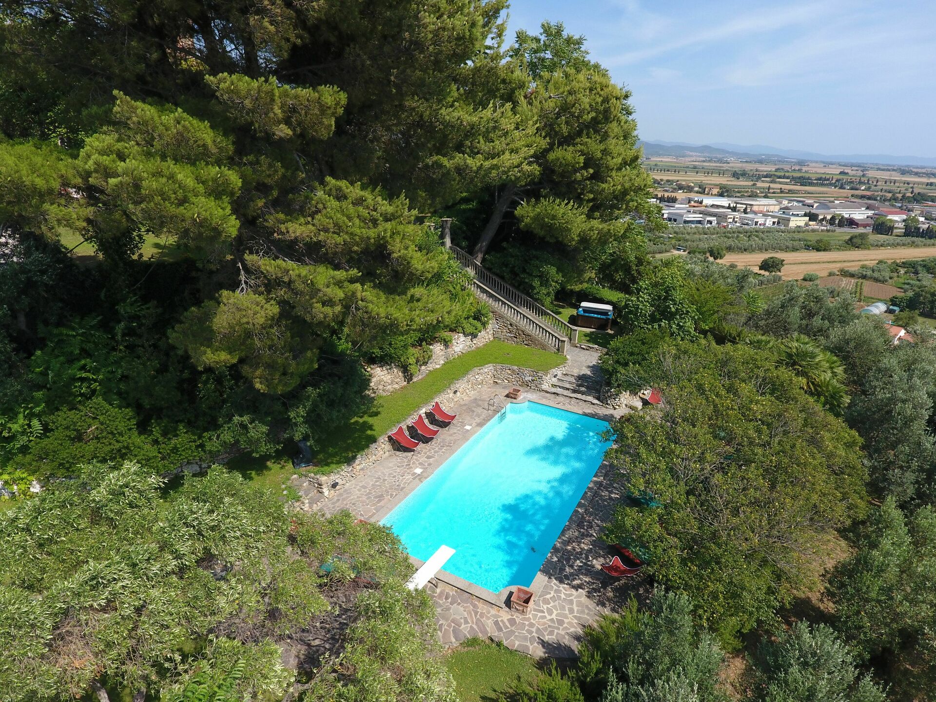 Avstander: Venturina med alle slags butikker ca. 1 km, Piombino (med ferger til Elba) 10 km, Livorno 60 km, Pisa 75 km. Firenze og Siena ligger mindre enn 120 km unna. Fine strender er noen få minutters kjøretur unna.