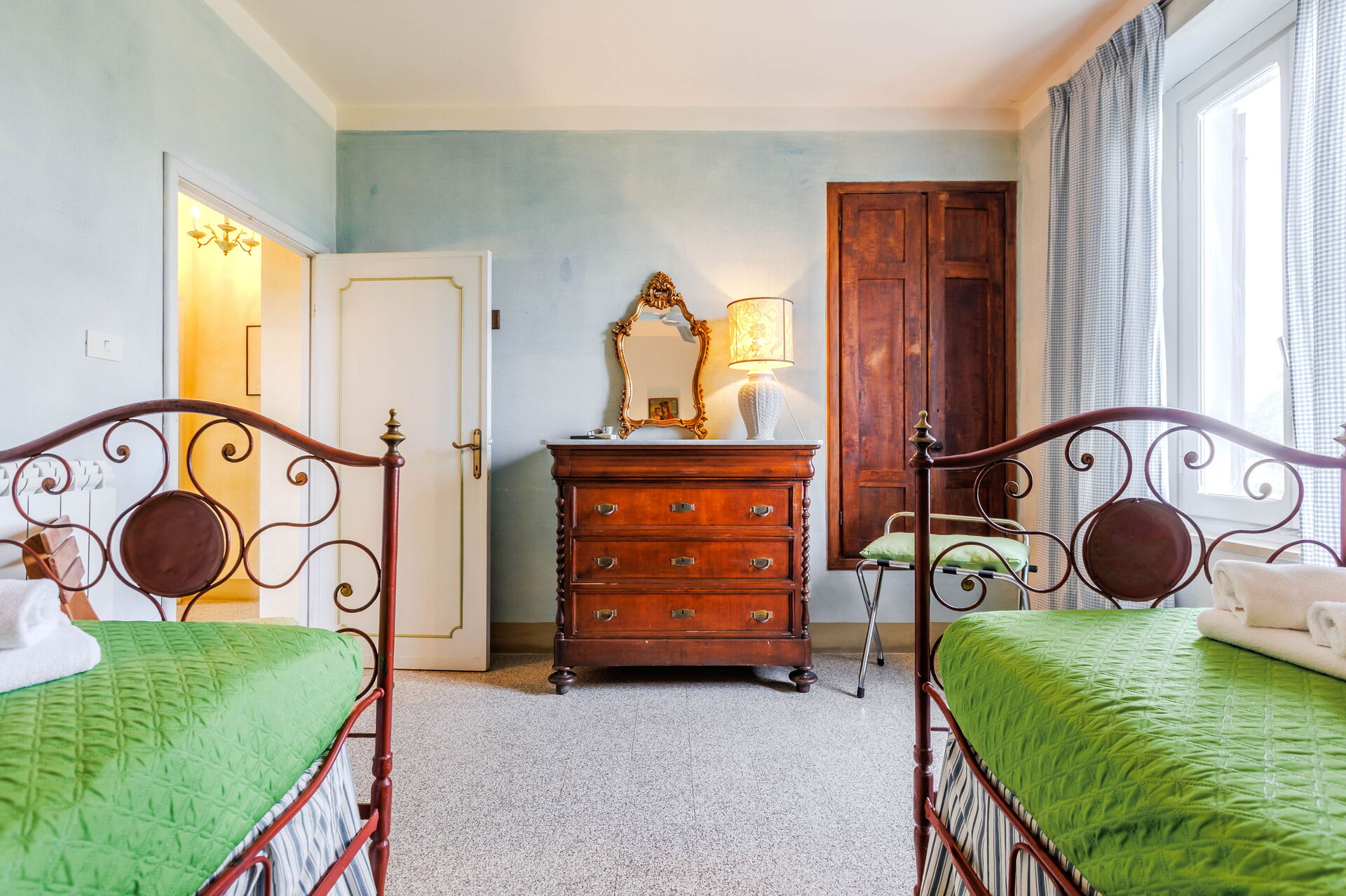 Séjour de 4 jours pour moi et mon fils adolescent, pour visiter la Toscane (Florence et alentours) avec des températures frôlant les 49 degrés en journée. Nous avions l’appartement « Verde Rame » le seul avec une TV. L’appartement est parfait avec salon cuisine au rdc et les chambres salle de Bain wc à l’étage. On y a des ventilateurs de plafond efficaces au salon et dans les chambres + des climatisations dans les 2 chambres. Les pièces sont grandes et il y a pleins de rangements. Il y a tous les équipements nécessaires. Il y a 4 appartements mitoyens au total mais sans aucun bruits entre les appartements. On peut acheter des produits de la propriété (vin chianti …huile …). Il y a un point ombragé pour garer la voiture. L’endroit est magnifique et paisible. Et en même temps proche des commodités (supermarché, station service, restaurants..) en voiture. Il est aussi très bien placé pour rayonner et visiter au alentours de Florence. Béatrice le point de contact est claire, réactive.