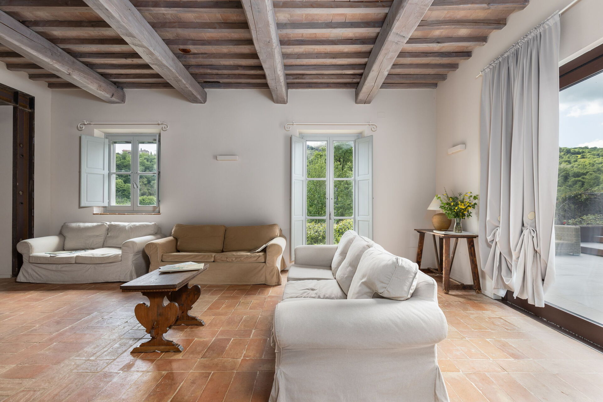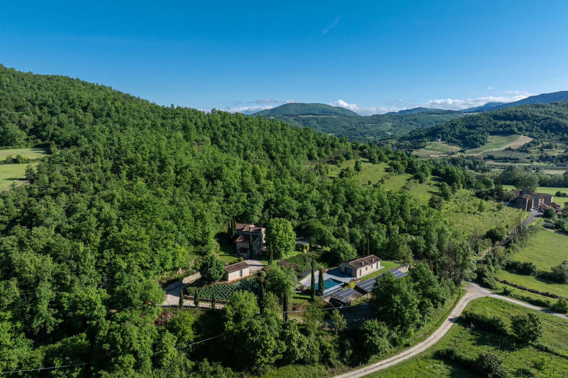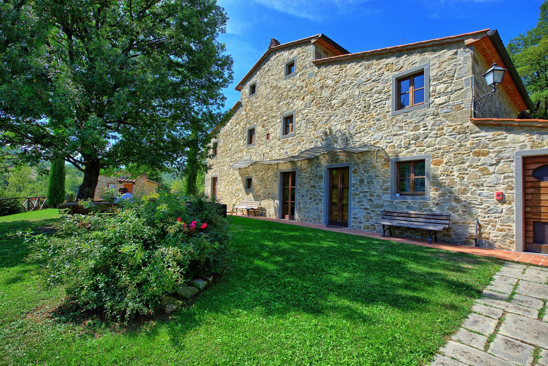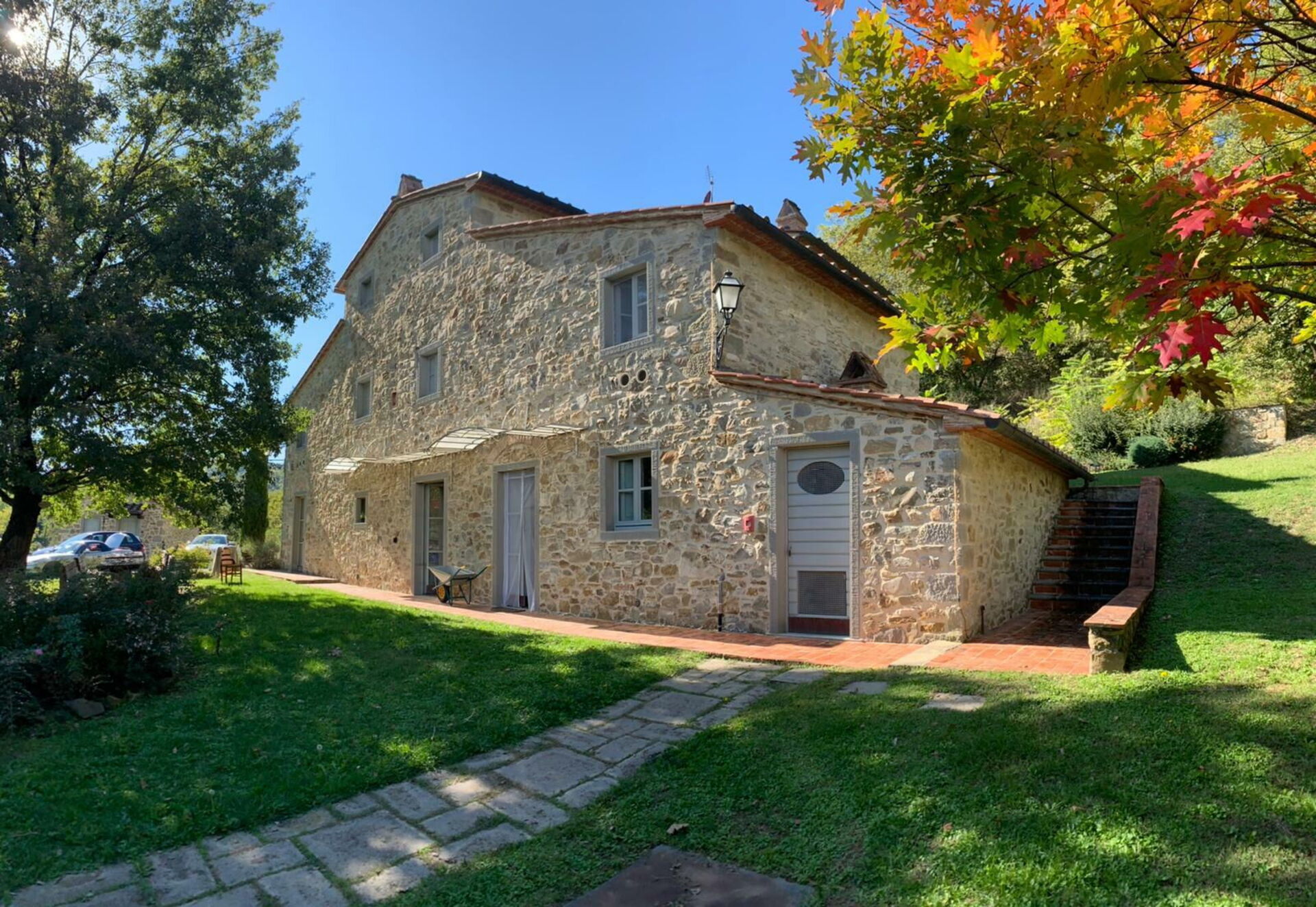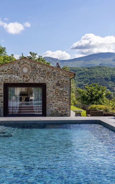 Pent hus som ligger i landlig til i området rundt vakre Arezzo (18 km unna). Villaen har blitt fullstendig restaurert og omgjort til et innbydende landsted med plass til 16/20 gjester. Eiendommen består av en sentral villa og 2 restaurerte tidligere fjøs. Separate enheter gir privatliv når man måtte ønske det, selvom man reiser sammen med venner eller familie (alle enhetene leies kun ut samlet som en privat villa). Et stort fellesrom med kjøkken ligger på i første etasje er tilgjengelig for gjestene og gjør det mulig å ha sine måltider sammen.
