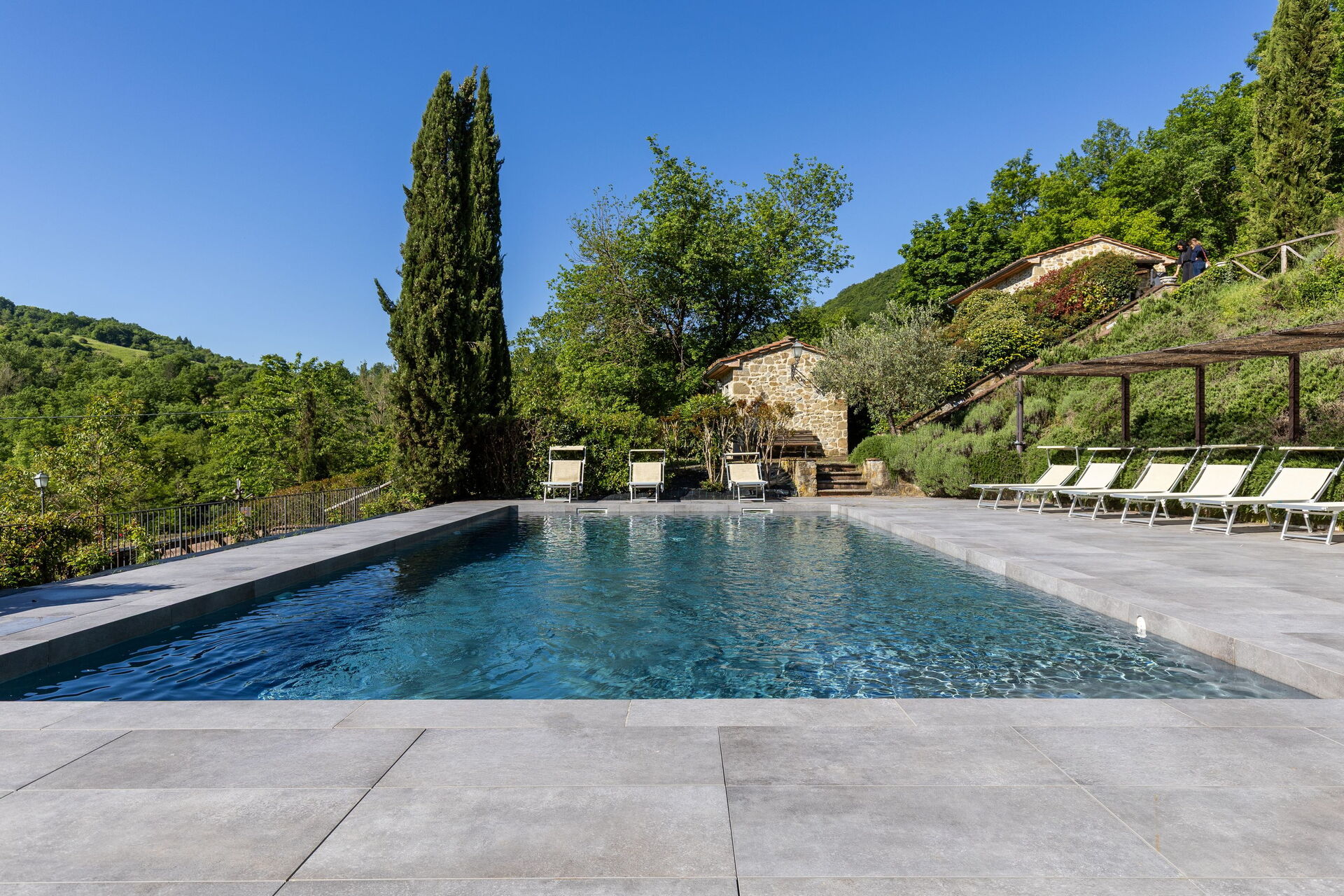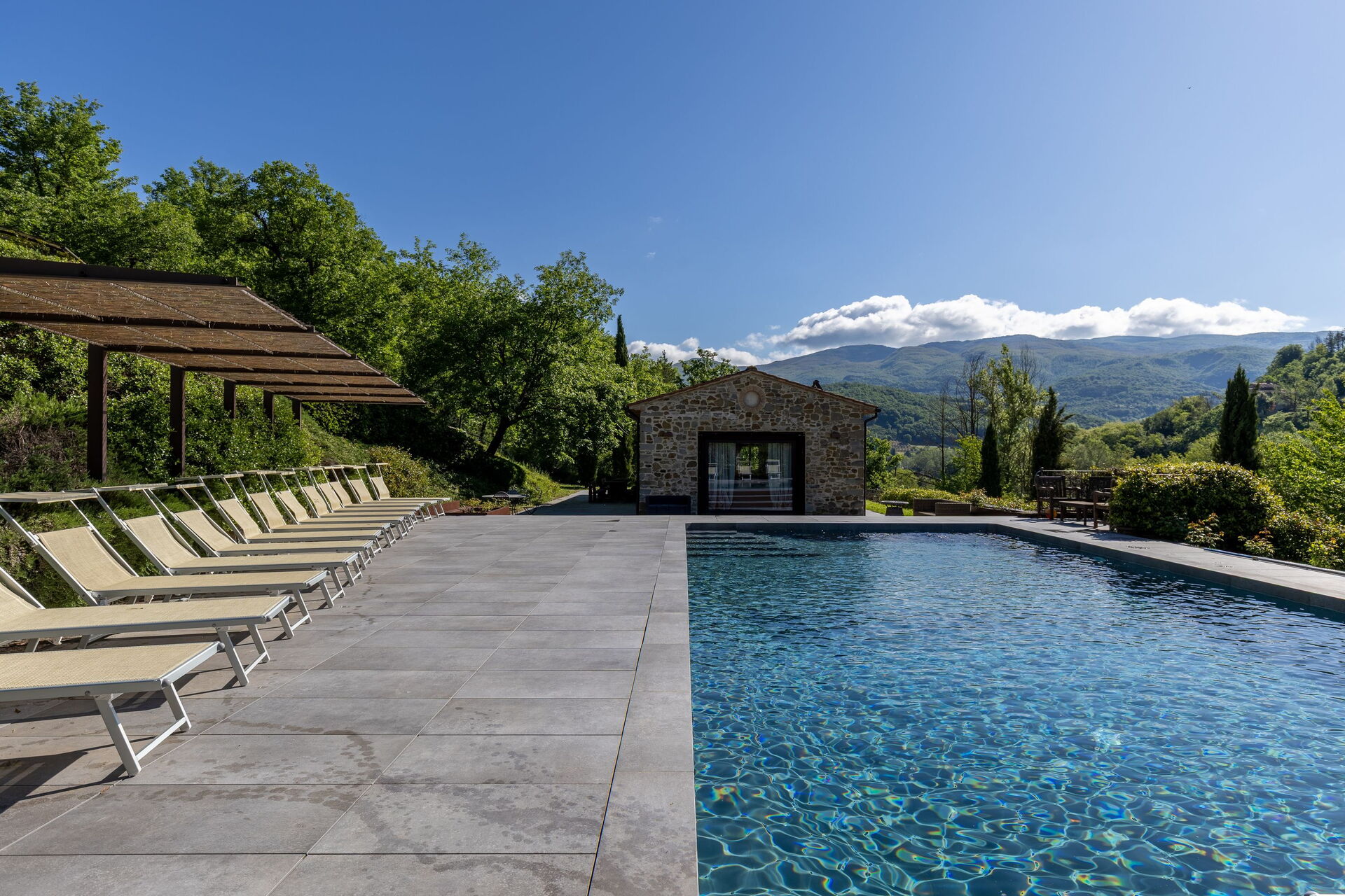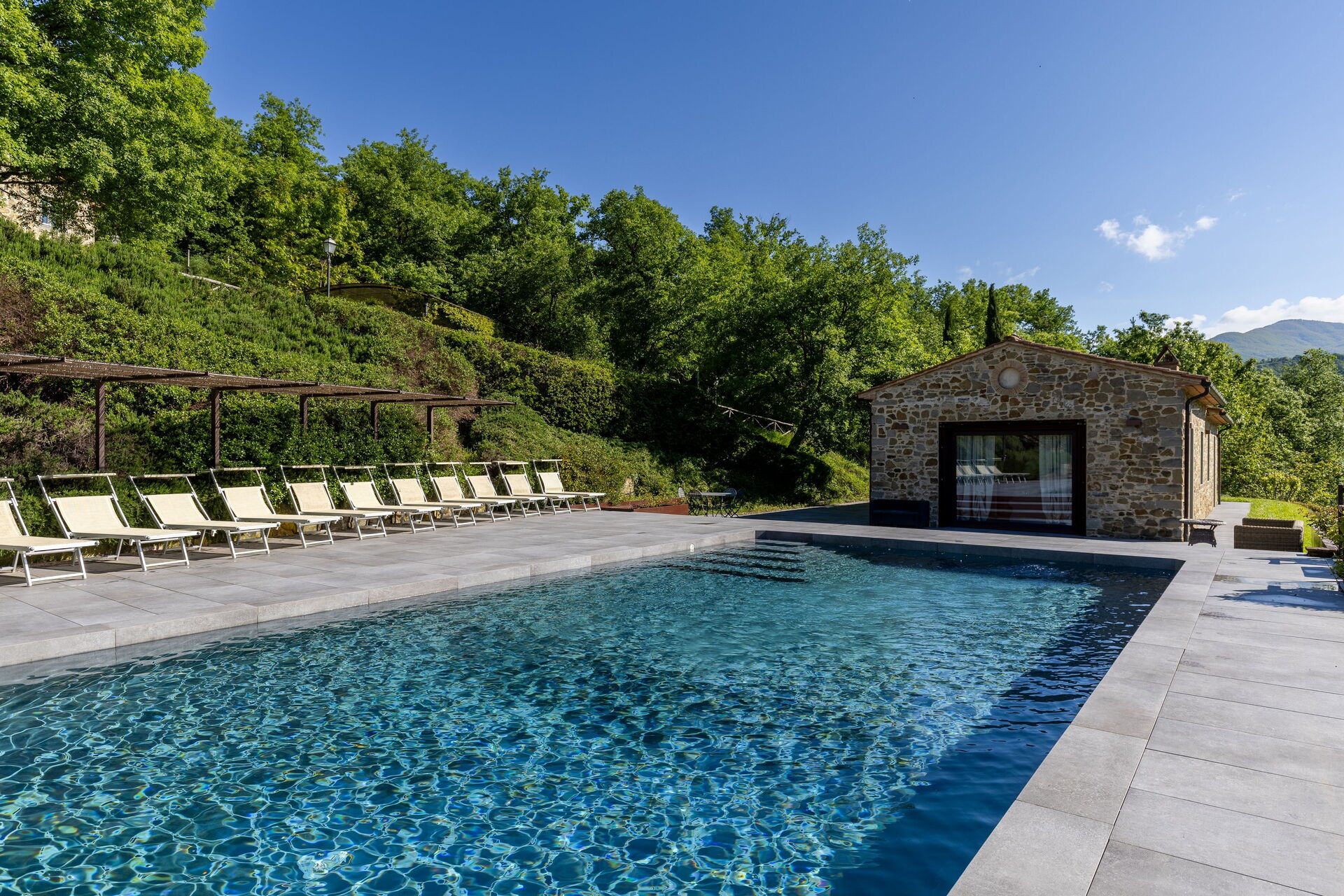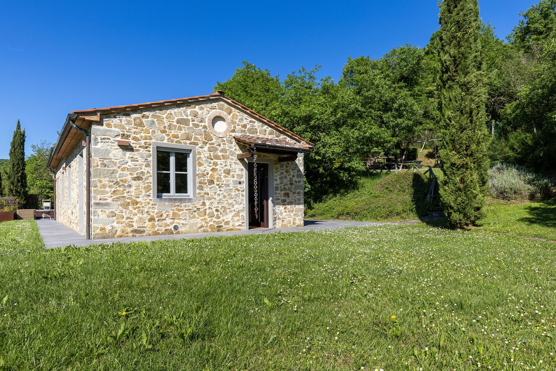 Huset er pent innredet i en rustikk stil som er typisk for Toscana. På uteområdet kan gjestene benytte seg av en stor inngjerdet i hage, privat basseng med solterrasse og en fin grillplass med en stor møblert lysthus og tilhørende bord og stoler.