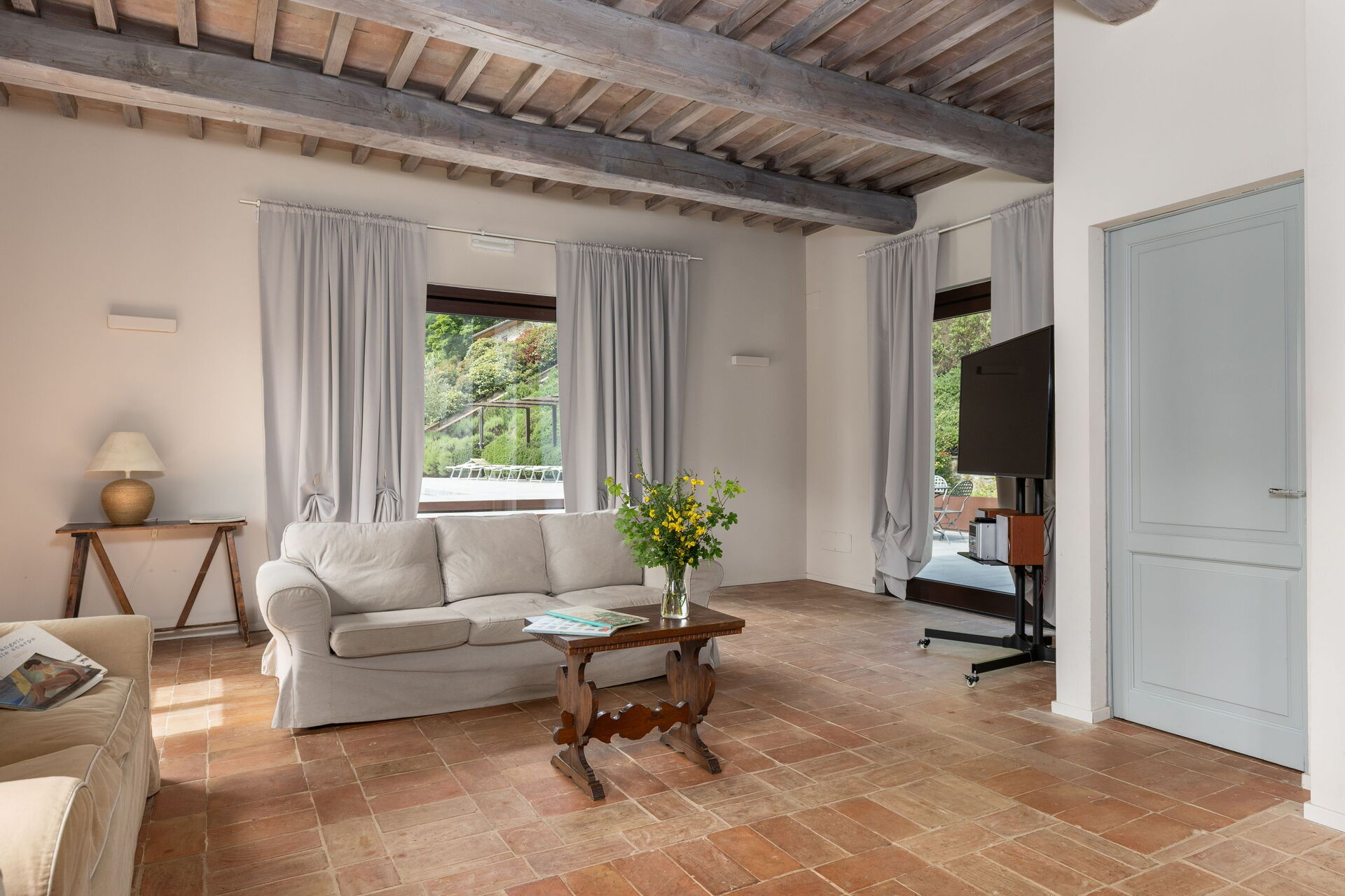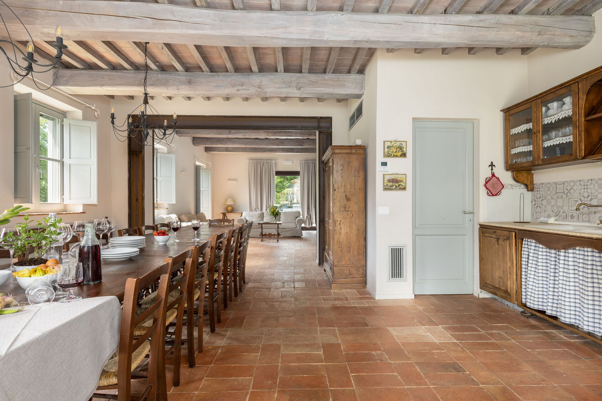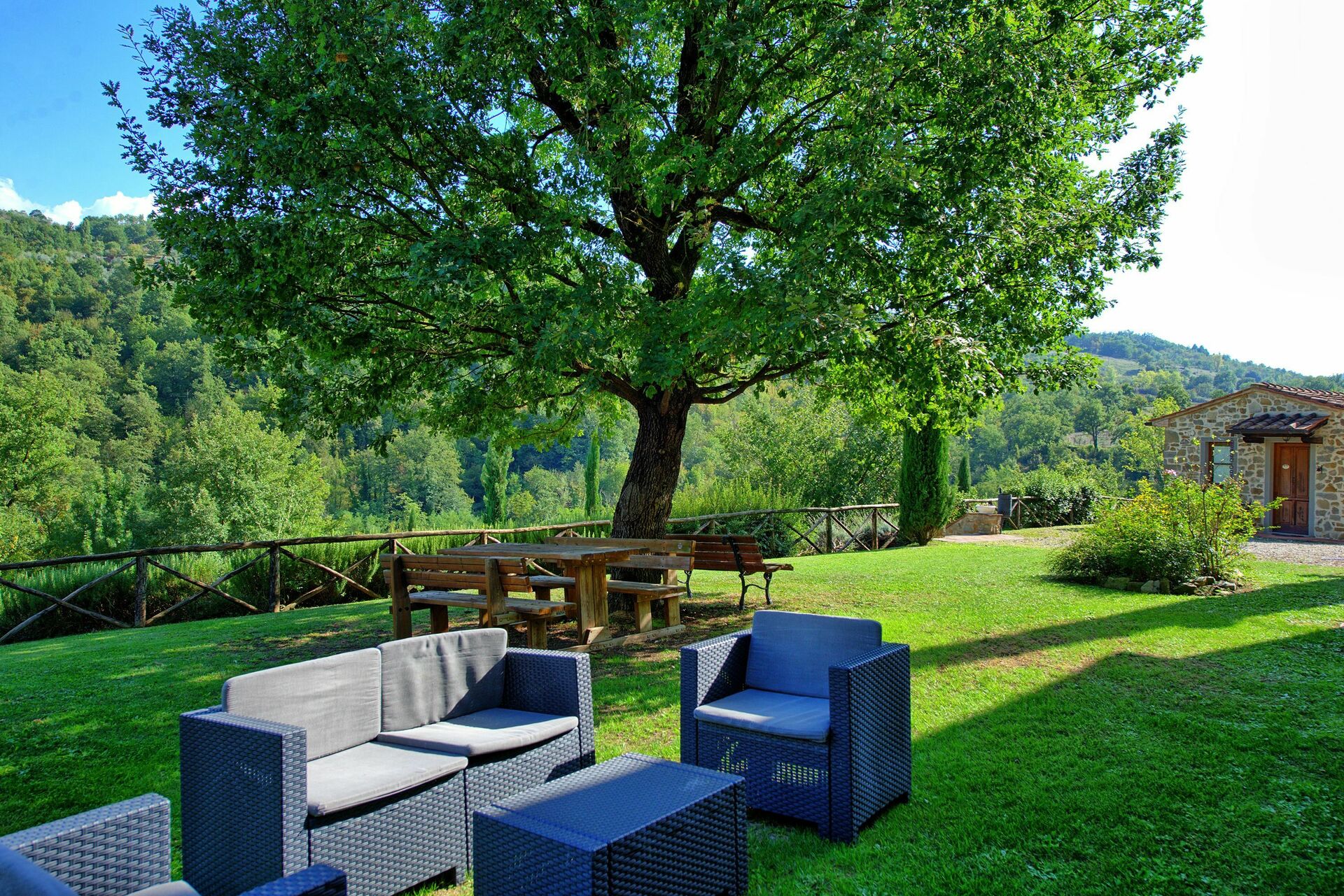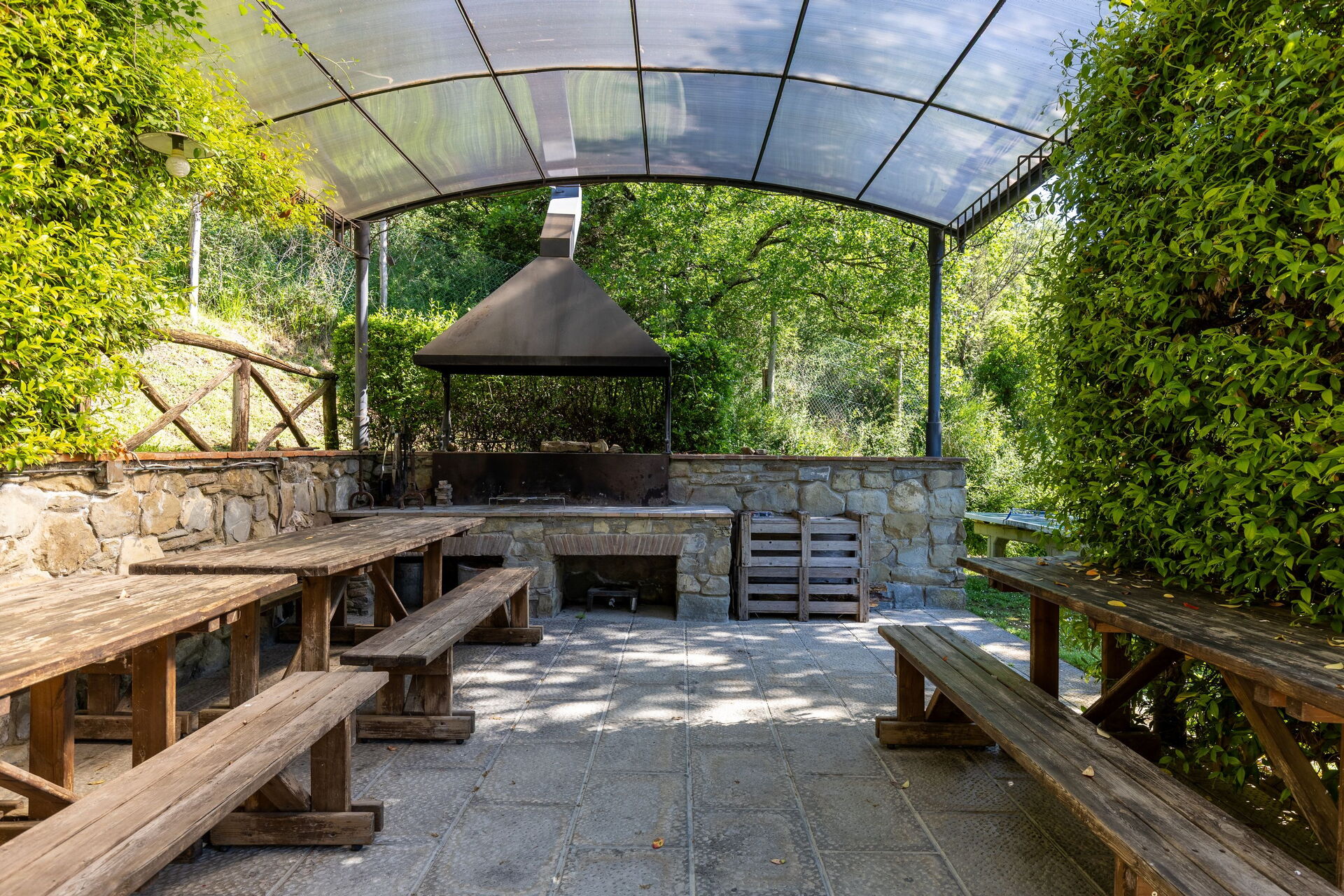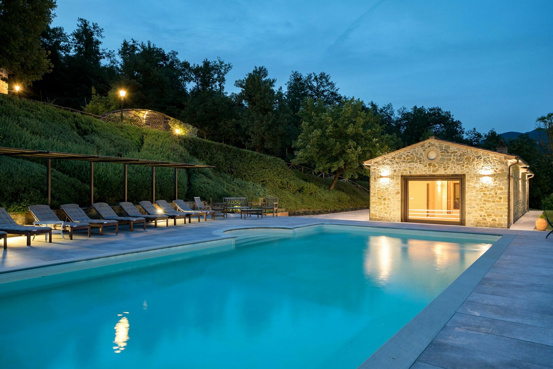 Huset er pent innredet i en rustikk stil som er typisk for Toscana. På uteområdet kan gjestene benytte seg av en stor inngjerdet i hage, privat basseng med solterrasse og en fin grillplass med en stor møblert lysthus og tilhørende bord og stoler.
