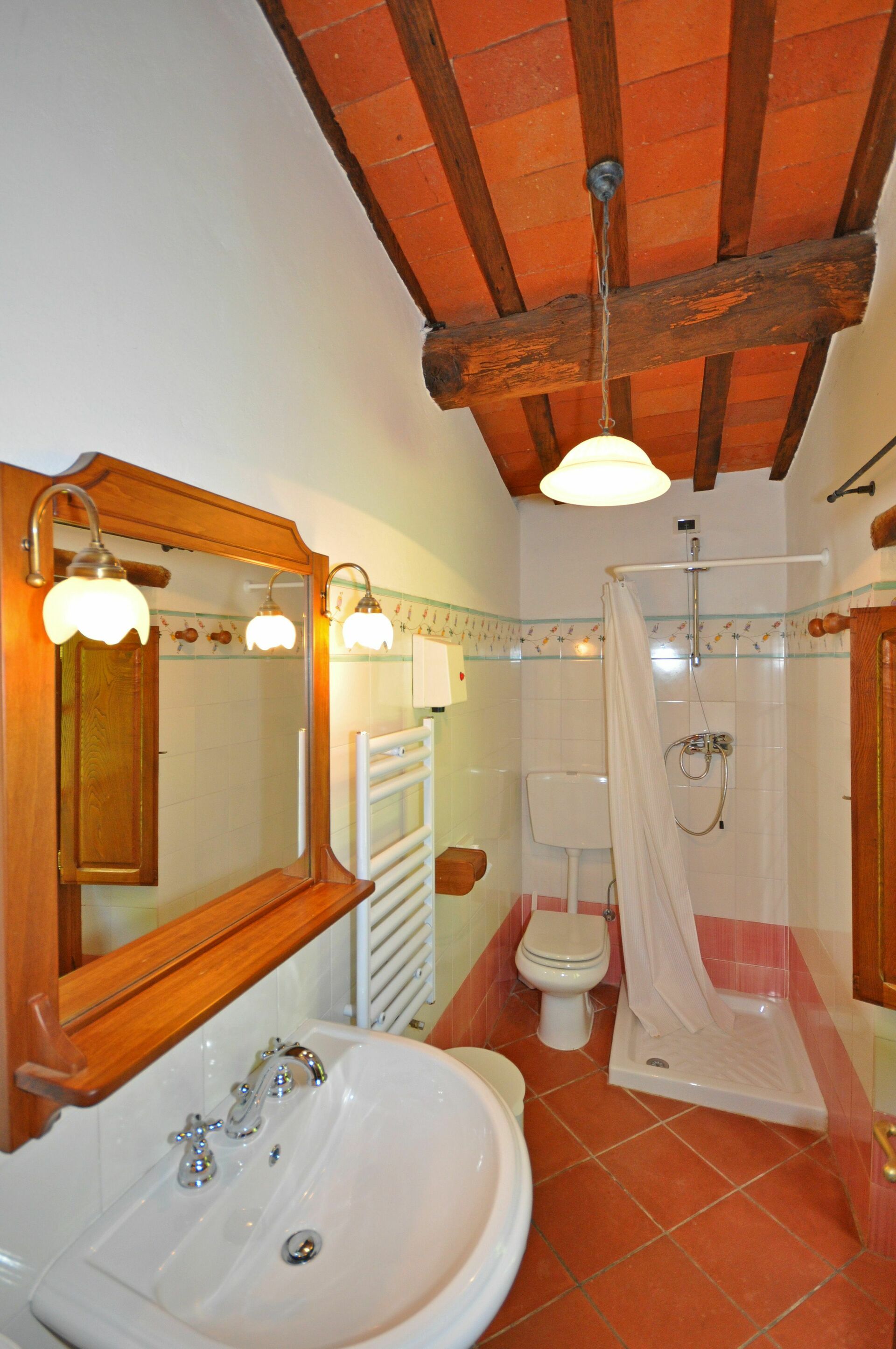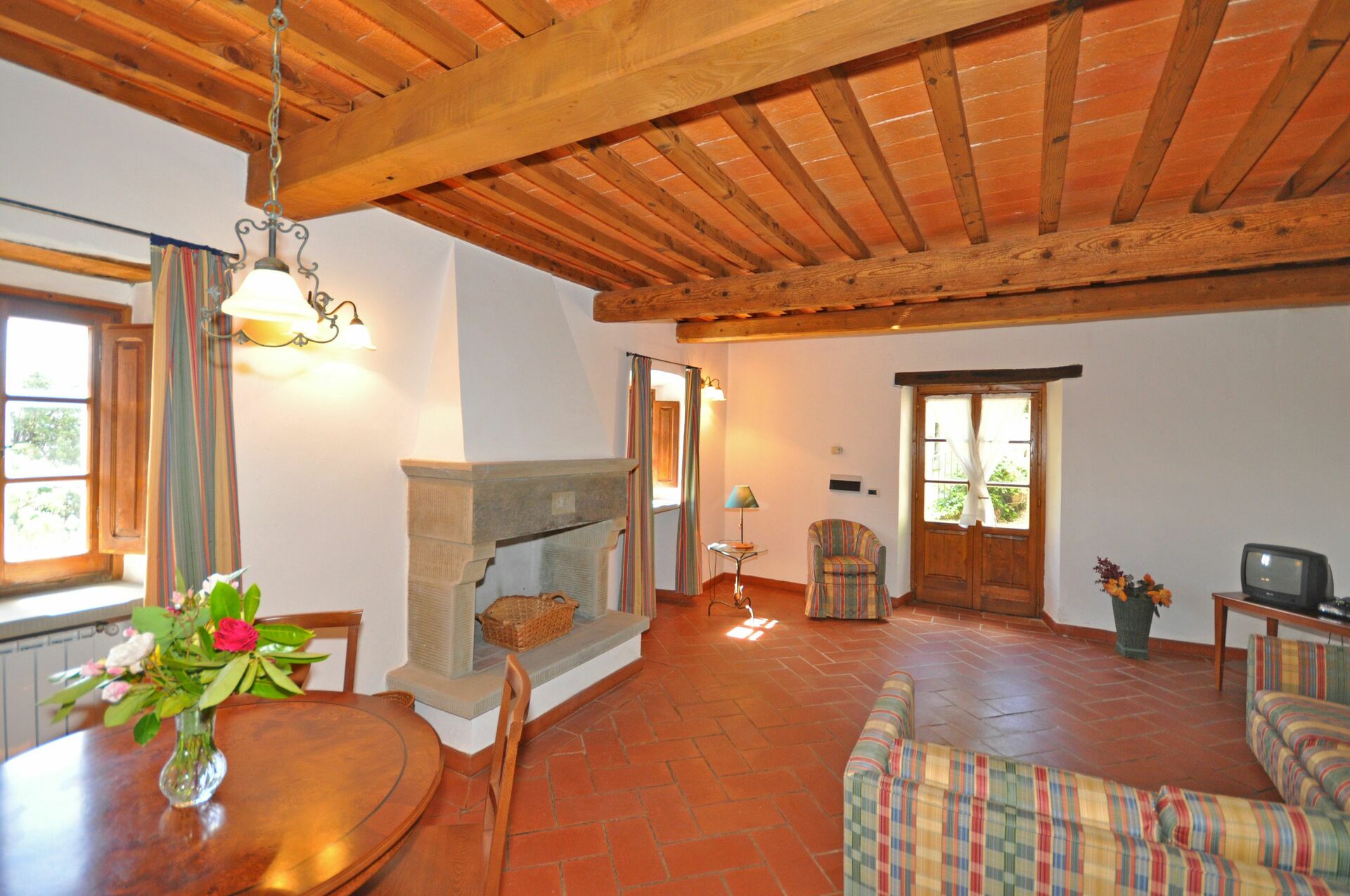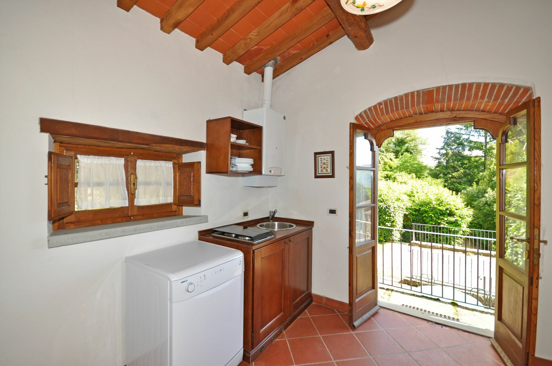 Andre etasje (tilgang via en privat møblert terrasse): kjøkkenhjørne (oppvaskmaskin, fryser, 2 elektriske plater), bad med badekar (hårføner).