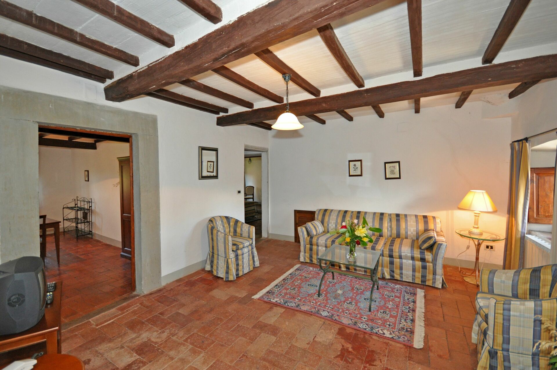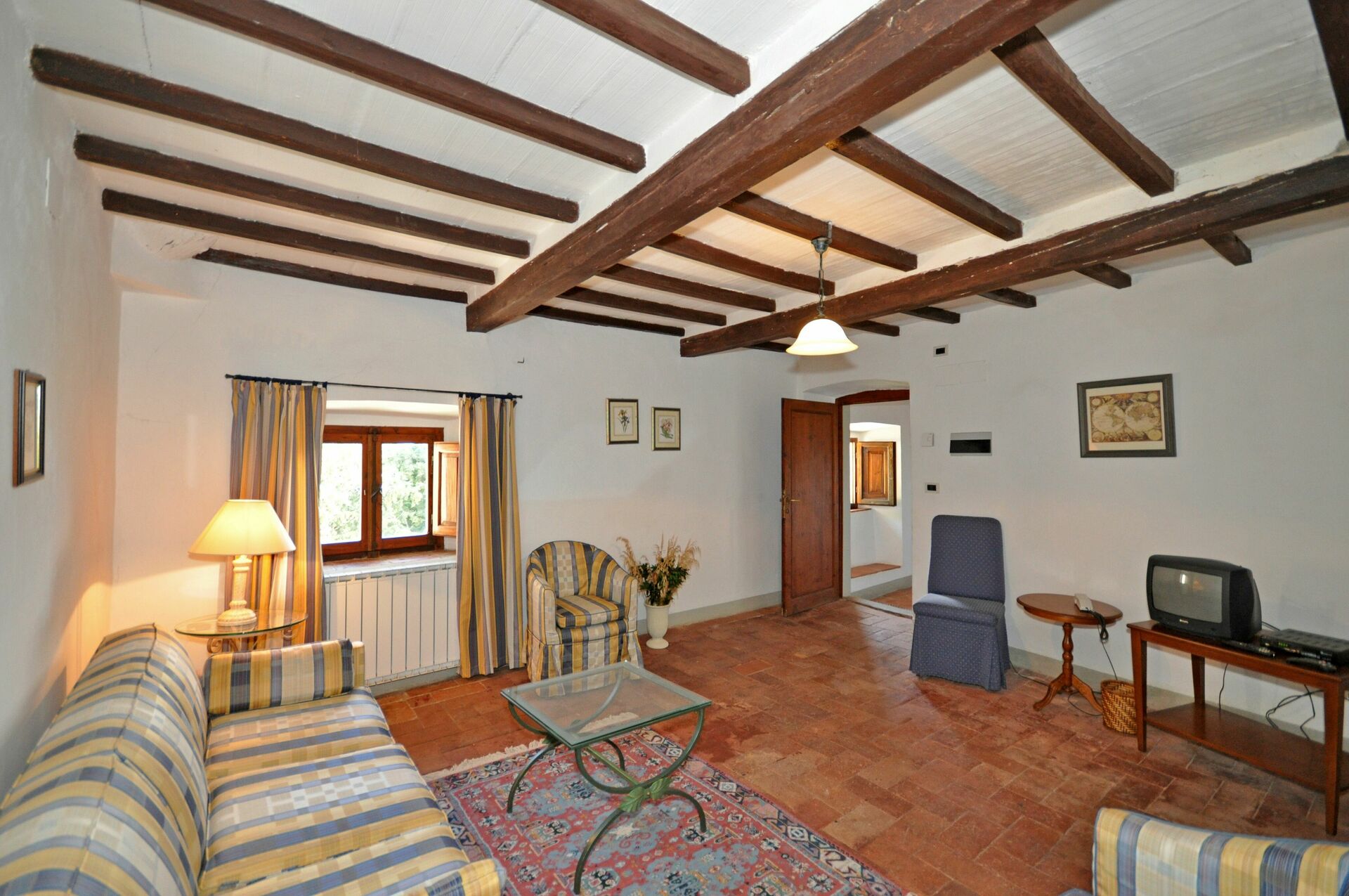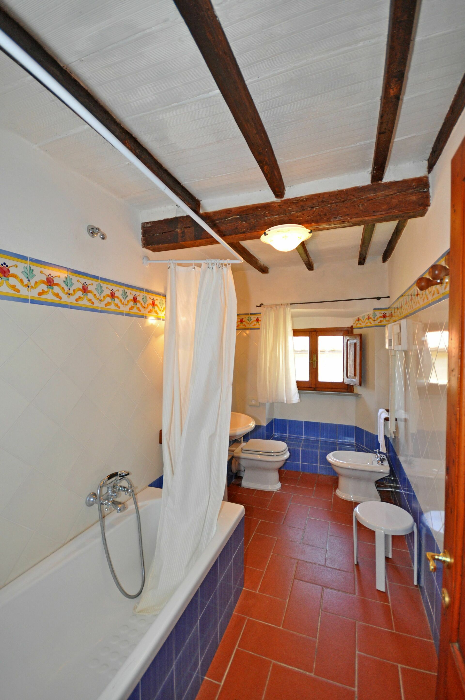 2nd floor: living-room (satellite TV), small kitchen (2 electric plates) with dining area, double bedroom, bathroom with bathtub (hairdryer).