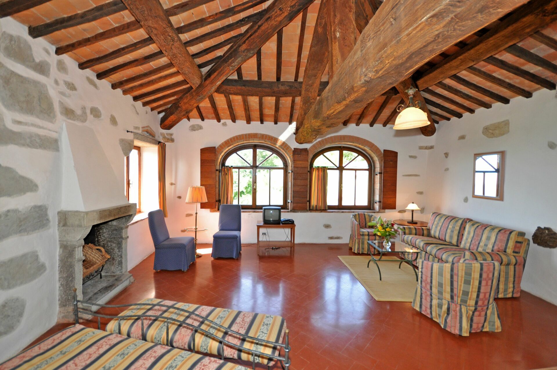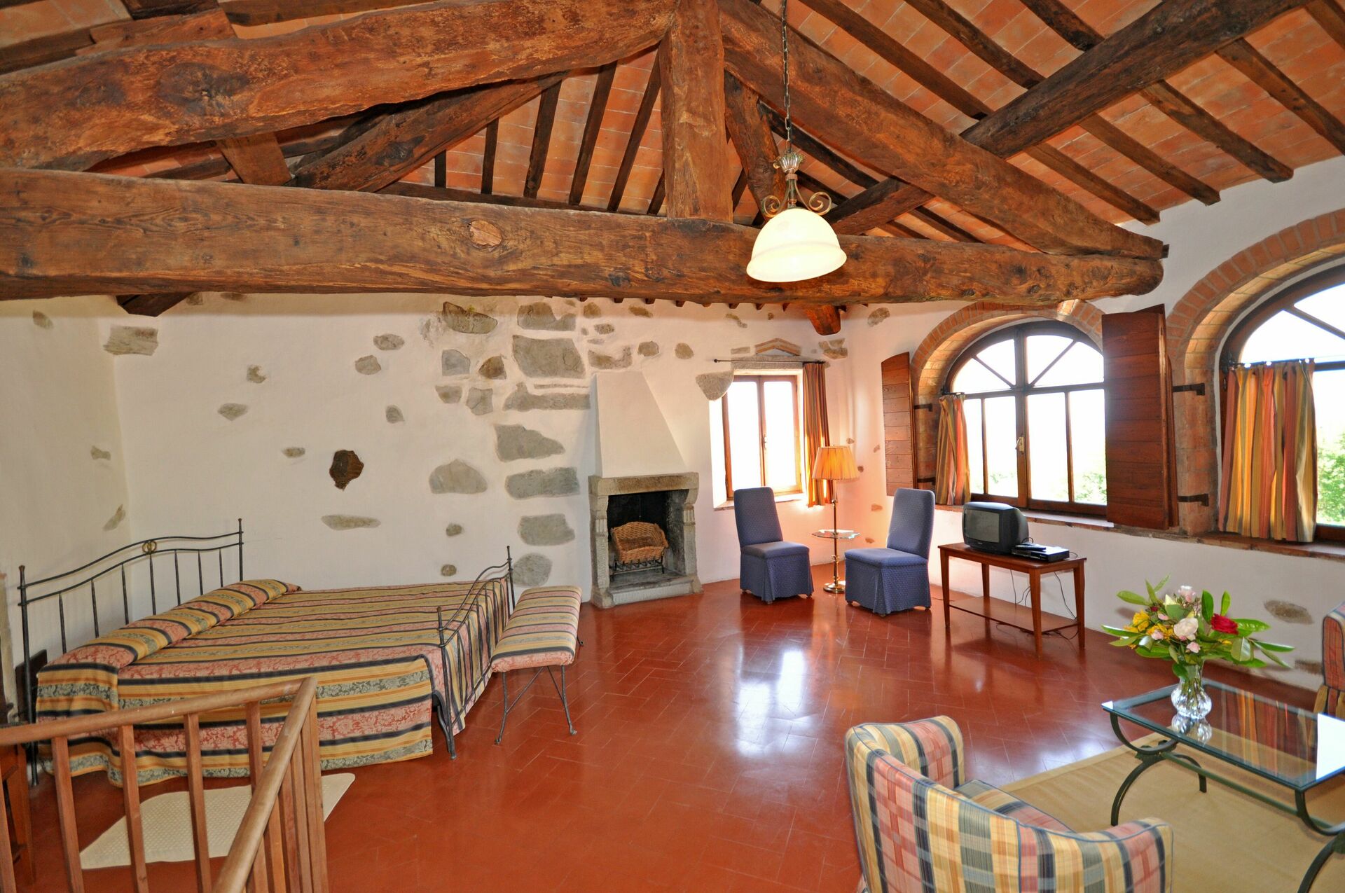 2nd floor (in the tower): large suite with double bed, fireplace and living area (satellite TV).