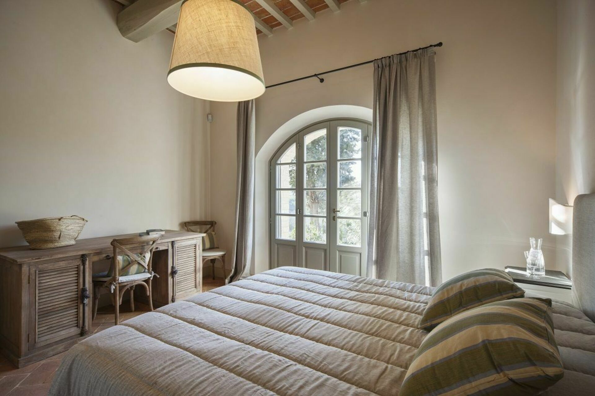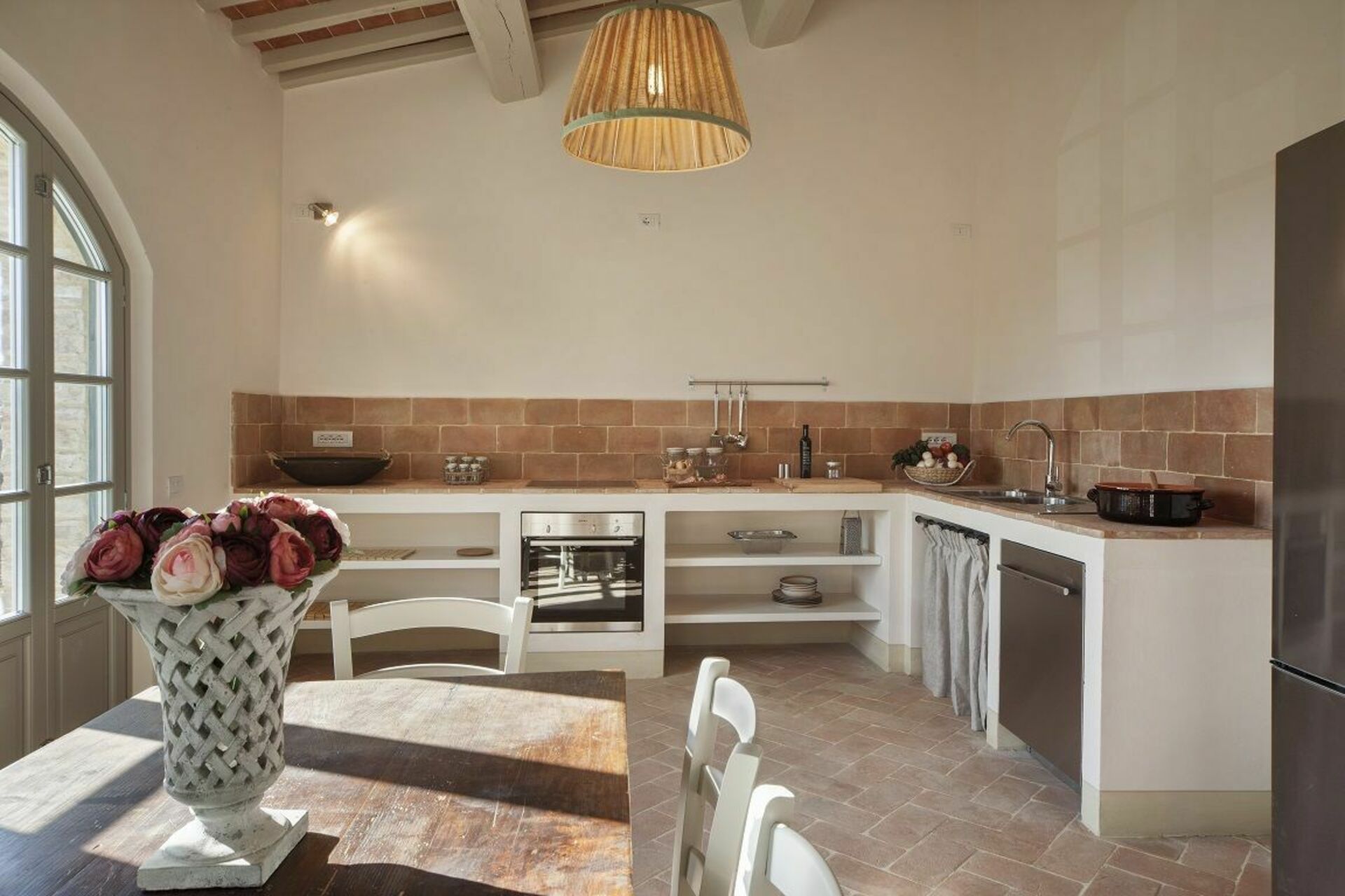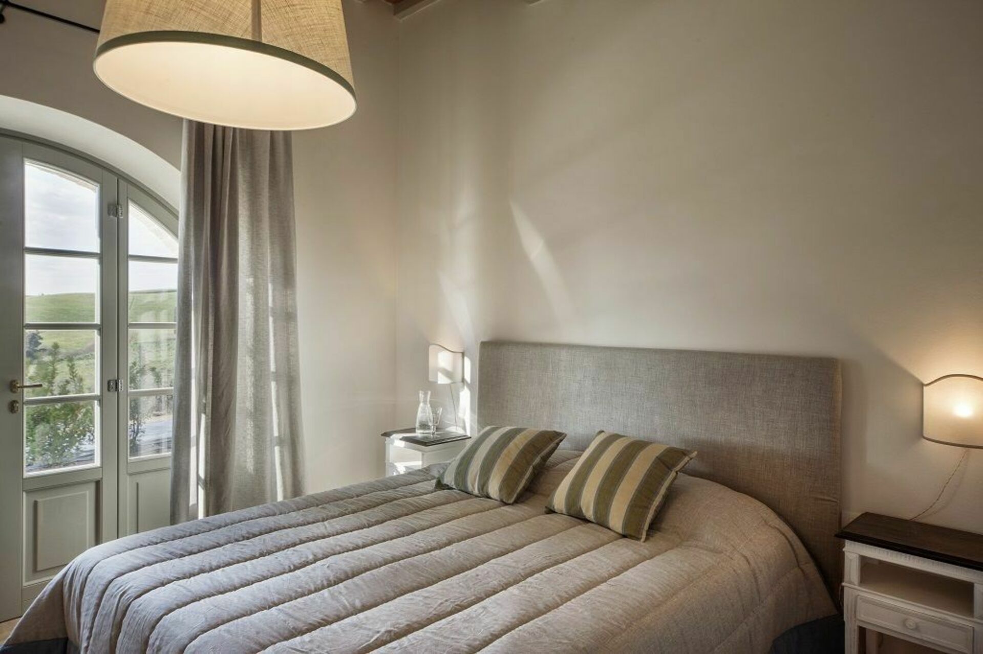 The villa and surrounding area are even more beautiful than the photos suggest. We spent six days there and were sad to leave. Castelfalfi is very centrally located to all the major towns in Tuscany. Most places are about 30-45 minutes away. The villa itself is within a beautiful hotel and golf resort, so you have access to nice restaurants on the property nearby. We loved the kitchen. It has two large sets of French doors that open up completely so that you feel like you’re indoor/outdoor at the same time. We loved cooking and eating there - though we mostly ate in the covered patio, which has a nice picnic table.We loved the kitchen. It has two large sets of French doors that open up completely so that you feel like you’re indoor/outdoor at the same We loved the bedrooms. I stayed in the master bedroom which has brick vault ceilings and french doors that open to give a wonderful view of the countryside. The other bedroom also has French doors.time. We loved cooking and eating there - though we mostly ate in the covered patio, which has a nice picnic table. We loved the bedrooms. I stayed in the master bedroom which has brick vault ceilings and french doors that open to give a wonderful view of the countryside. The other bedroom also has French doors.Fantastic. The three major sites - San Gimignano, Sienna, Volterra, Pisa - are all 30-45 minutes away. Florence is about 1h20 minutes.The pool is nice though it’s often filled with bugs given that the villa is out in the countryside. However the property is well maintained and we saw staff cleaning the pool a few times during our stay.