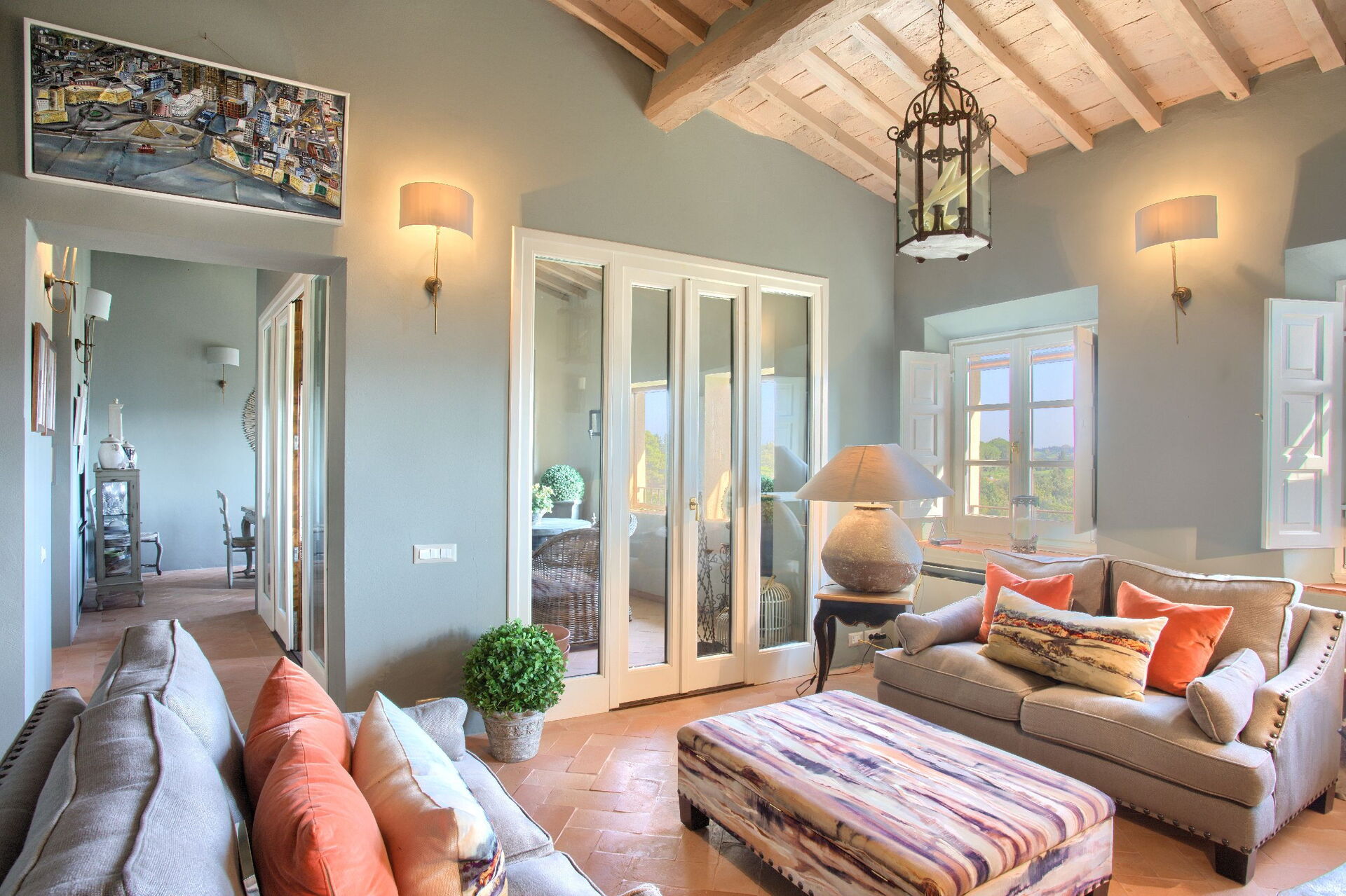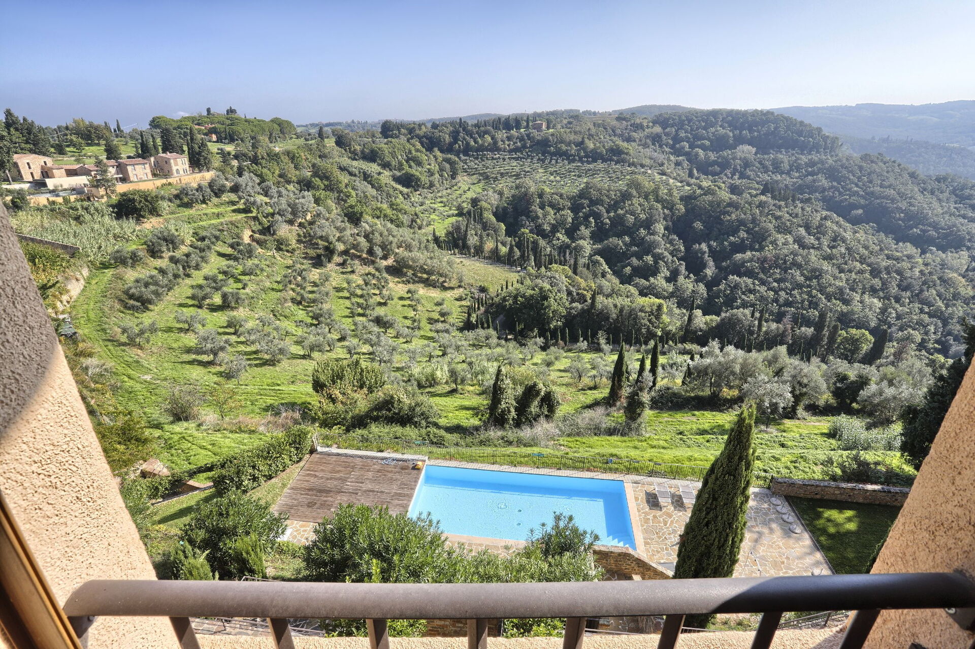 Tredje etasje: stue, spisestue, kjøkken ((komfyr, kjøleskap, stekeovn, oppvaskmaskin), bad med dusj, overbygd loggia (lenestoler og bord) med panoramautsikt over åsene, svømmebasseng og golfbane.