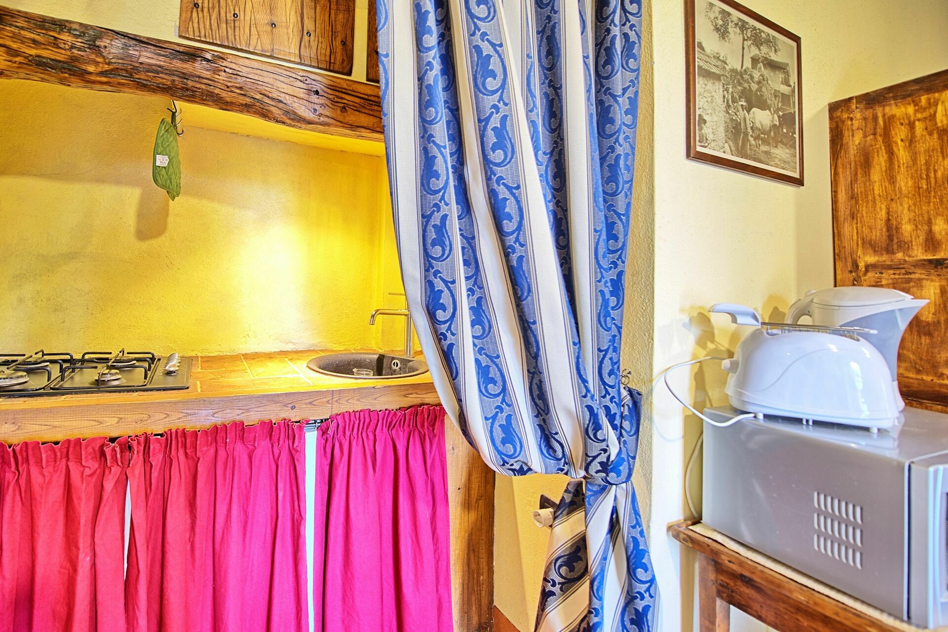 Wunderschön gelegene und gepflegte Anlage. Geschmackvolle Einrichtung. Sehr nette Vermieter mit tollem Wein, hervorragendem Olivenoel und wunderbarem Honig. Traumhafte Ruhe, da abseits der Hauptstraße auf einem Berg gelegen. Es gibt zwar eine Anfahrt über einen in der Toscana üblichen Schotterweg aber die Ruhe und der wunderschöne Weitblick entschädigen einen dafür. Mit etwas Glück bekommt man Besuch von den Pfauen oder den Pferden welche direkt neben dem Anwesen leben.