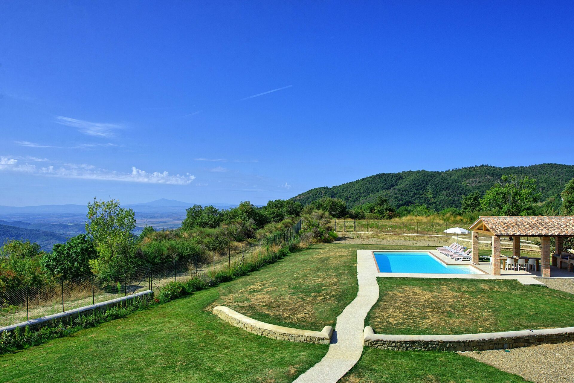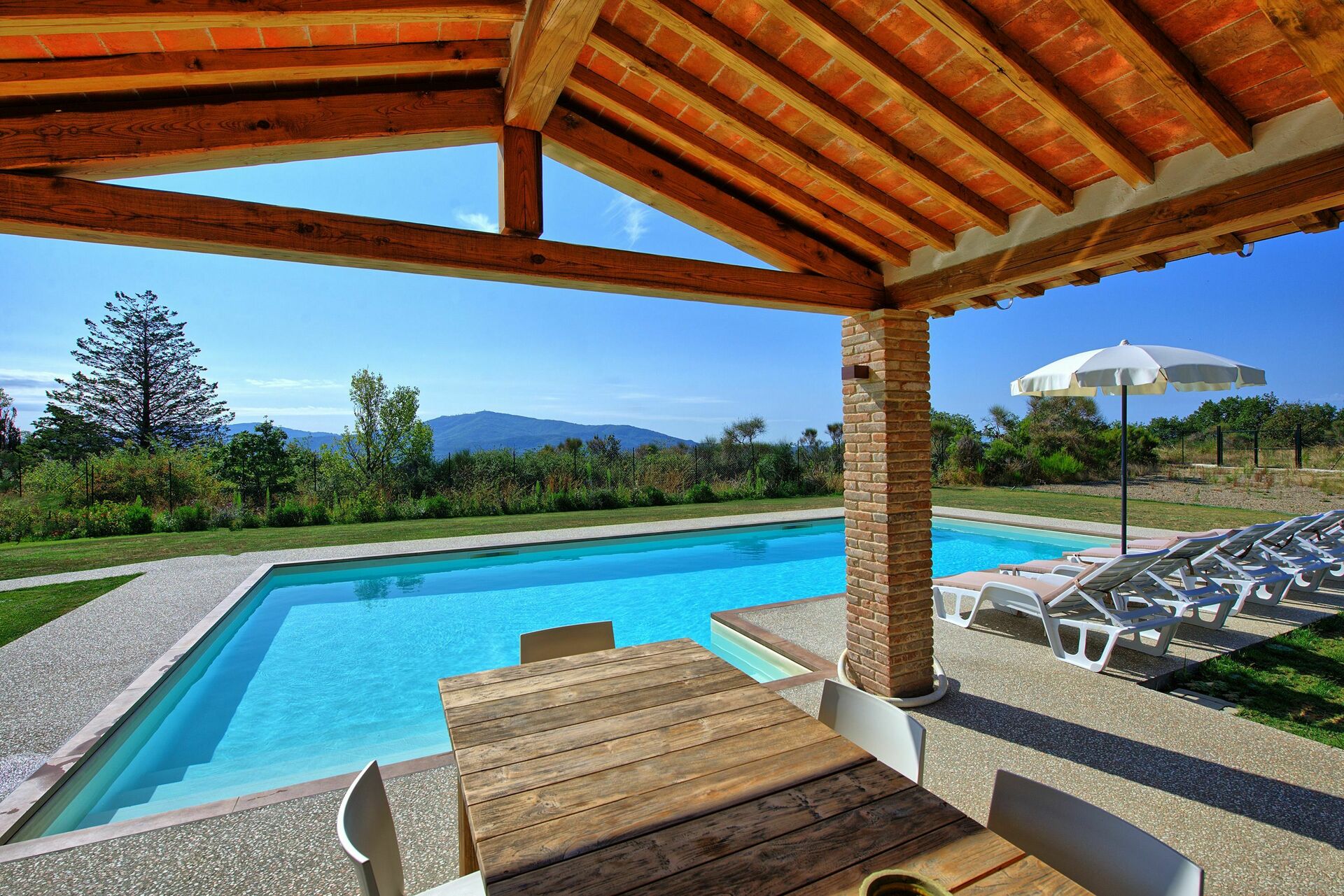 Vakker villa med privat svømmebasseng nær Castiglion Fiorentino, mellom de to historiske byene Cortona og Arezzo i Toscana. Feriehuset ble ferdigstilt i 2018 og byr på et komfortabelt interiør og pene utearealer.