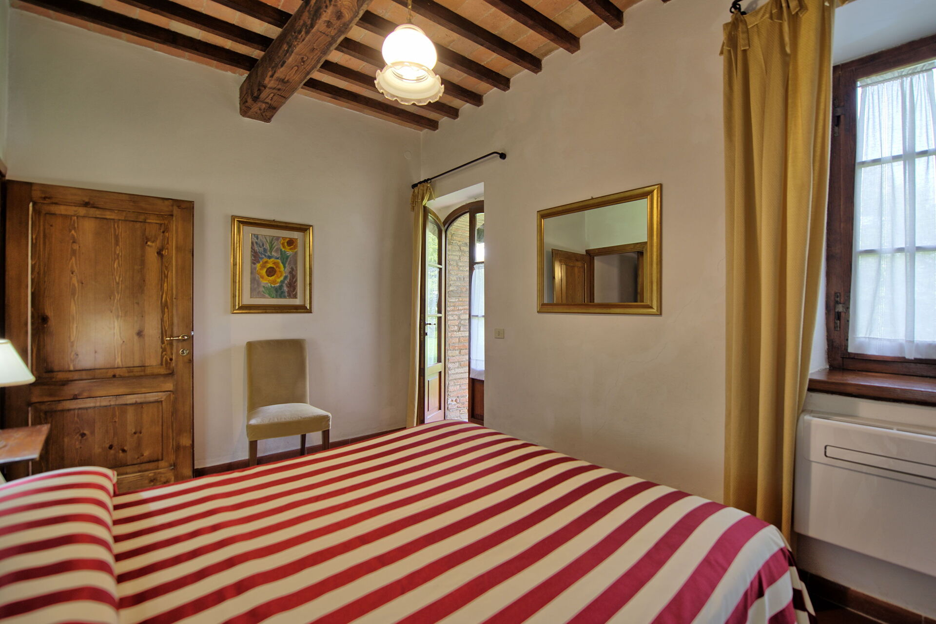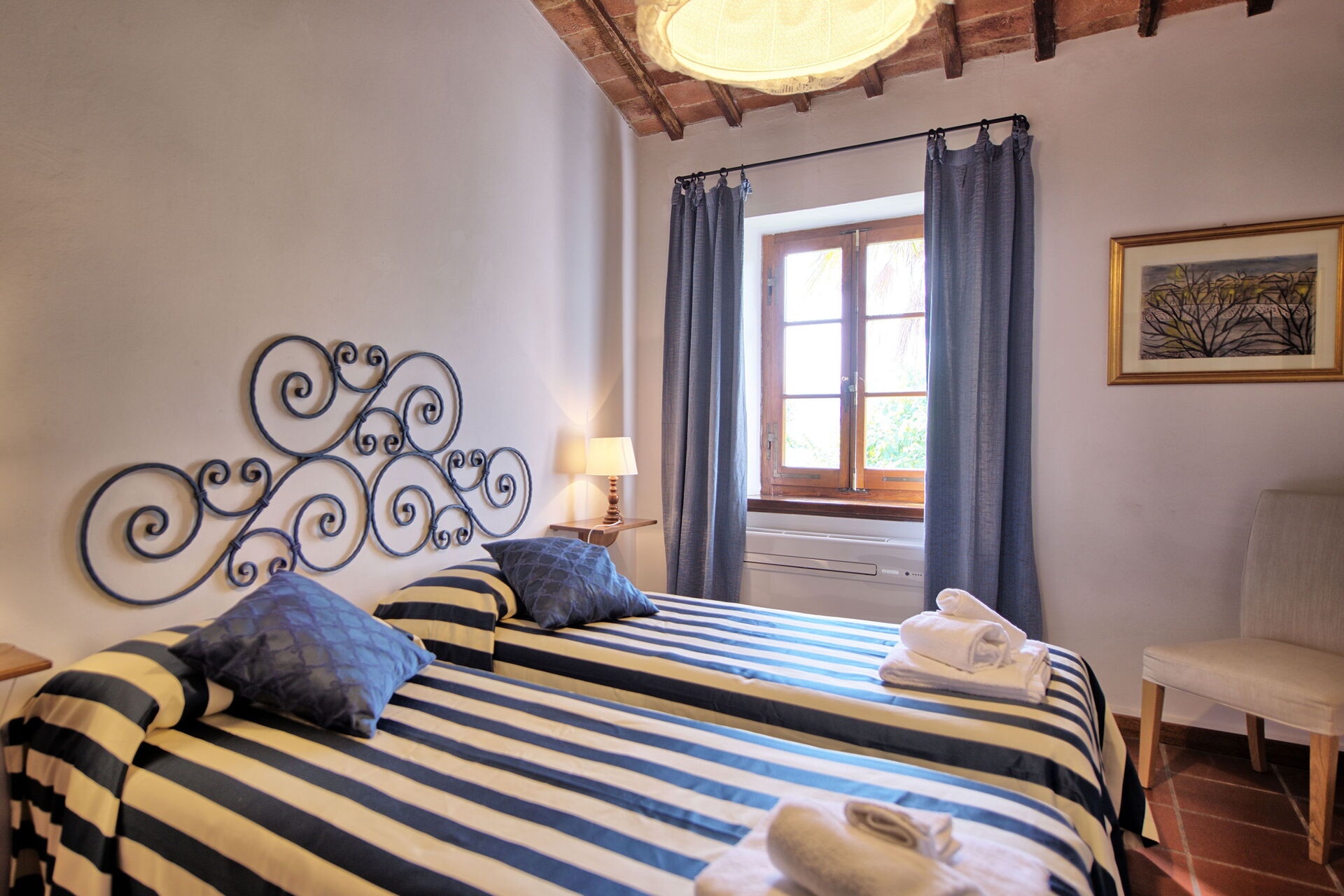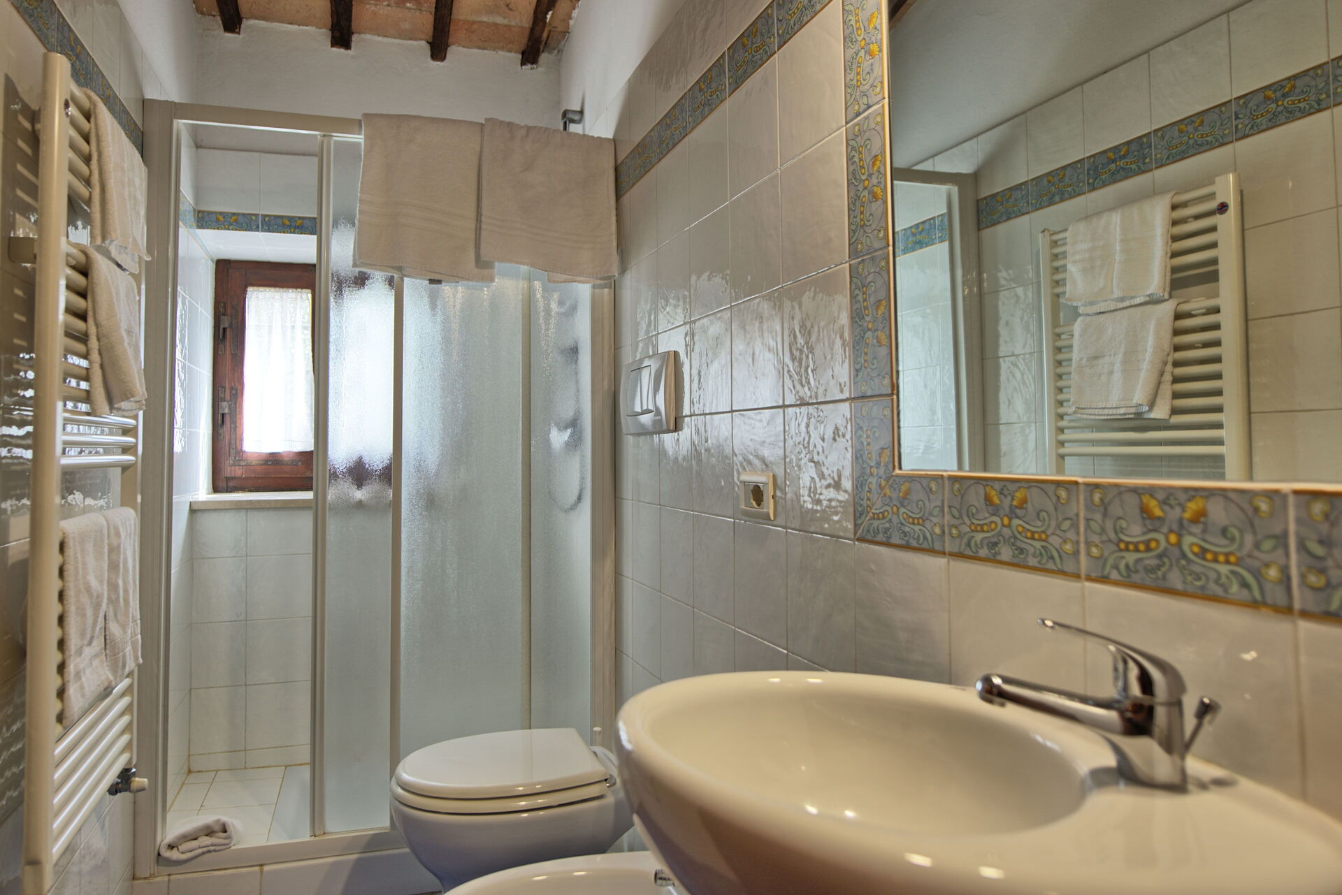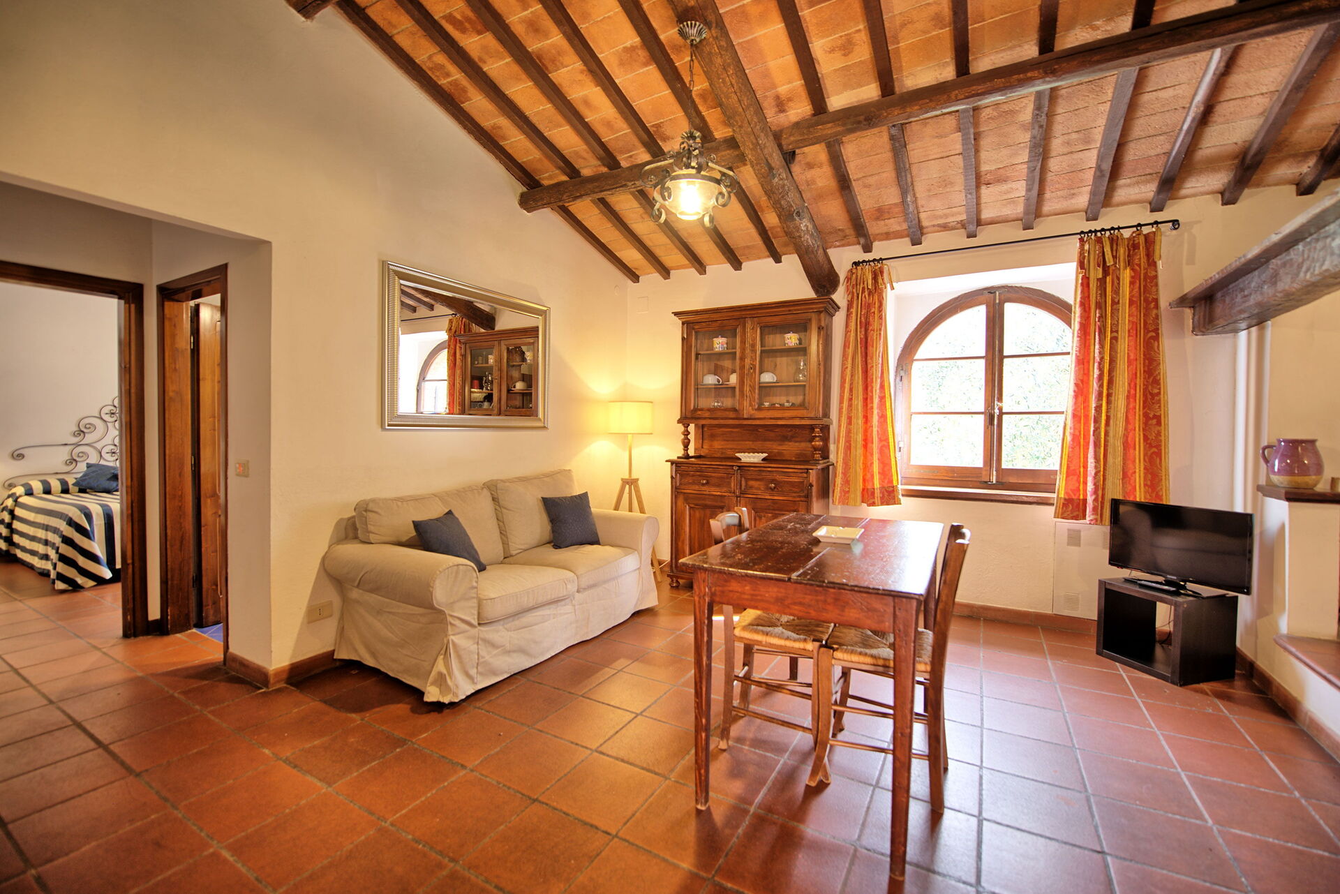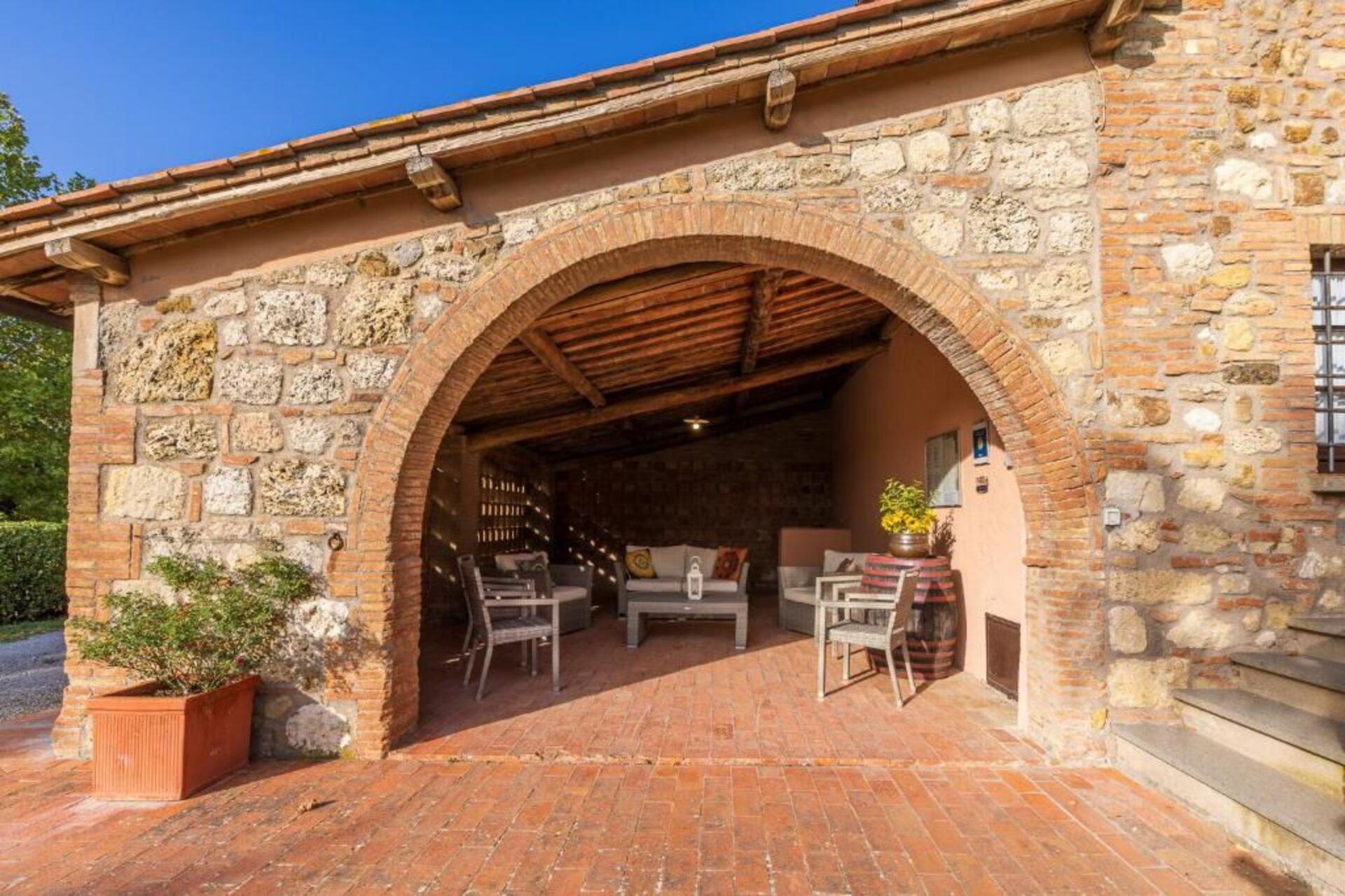 Fra feriehuset har man fantastisk 360° utsikt over Toscana-landskapet. Huset har blitt møysommelig renovert på en måte som har bevart mange av de originale detaljene som store peiser, terrakottagulv og trebjelker i taket.