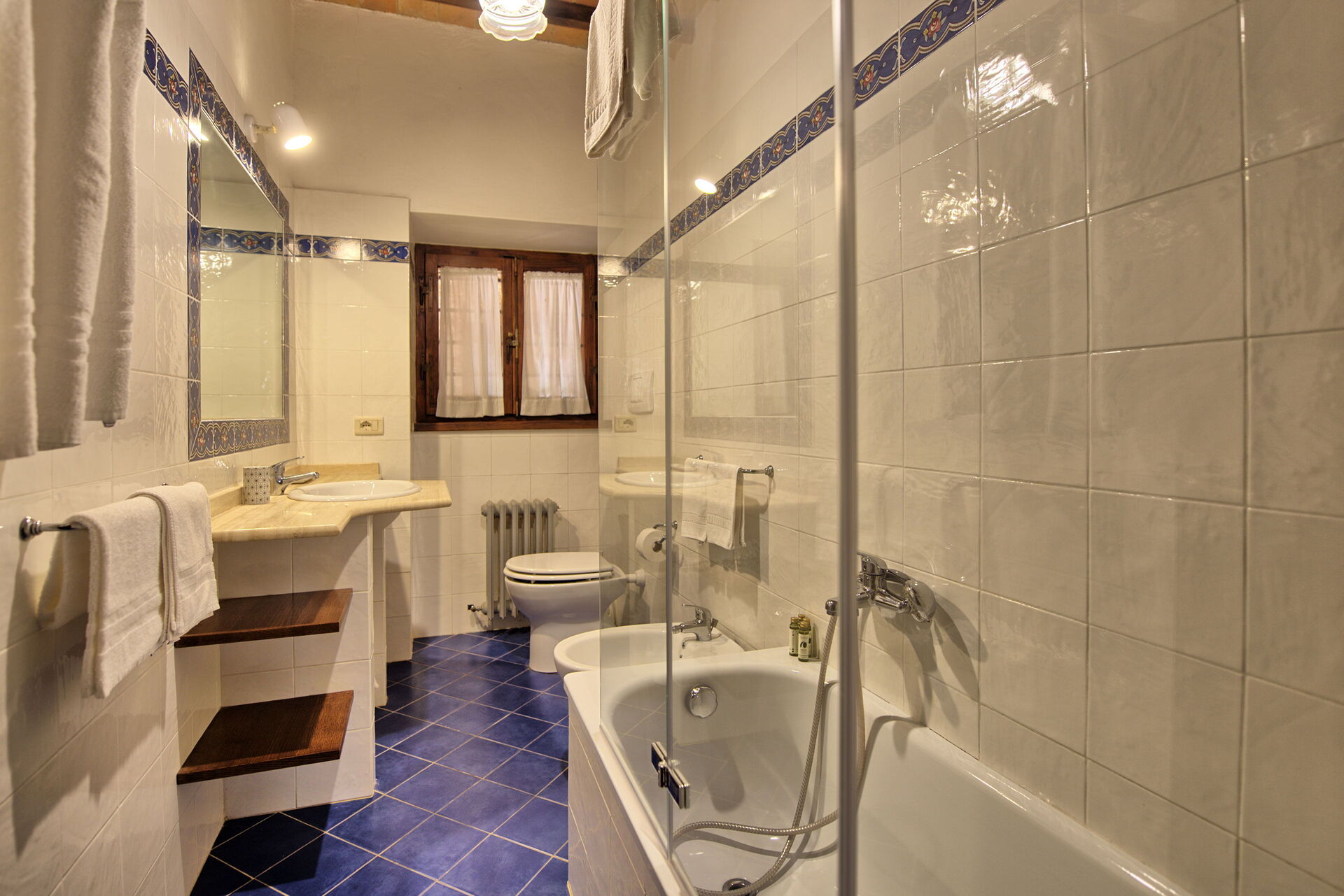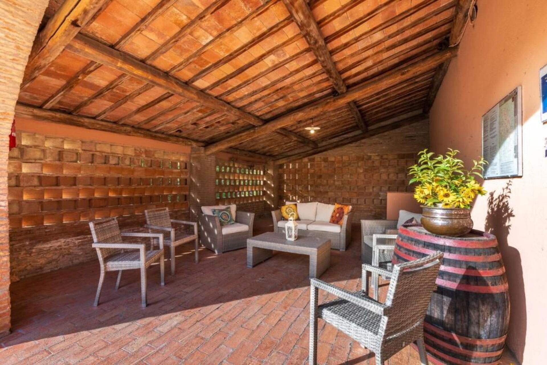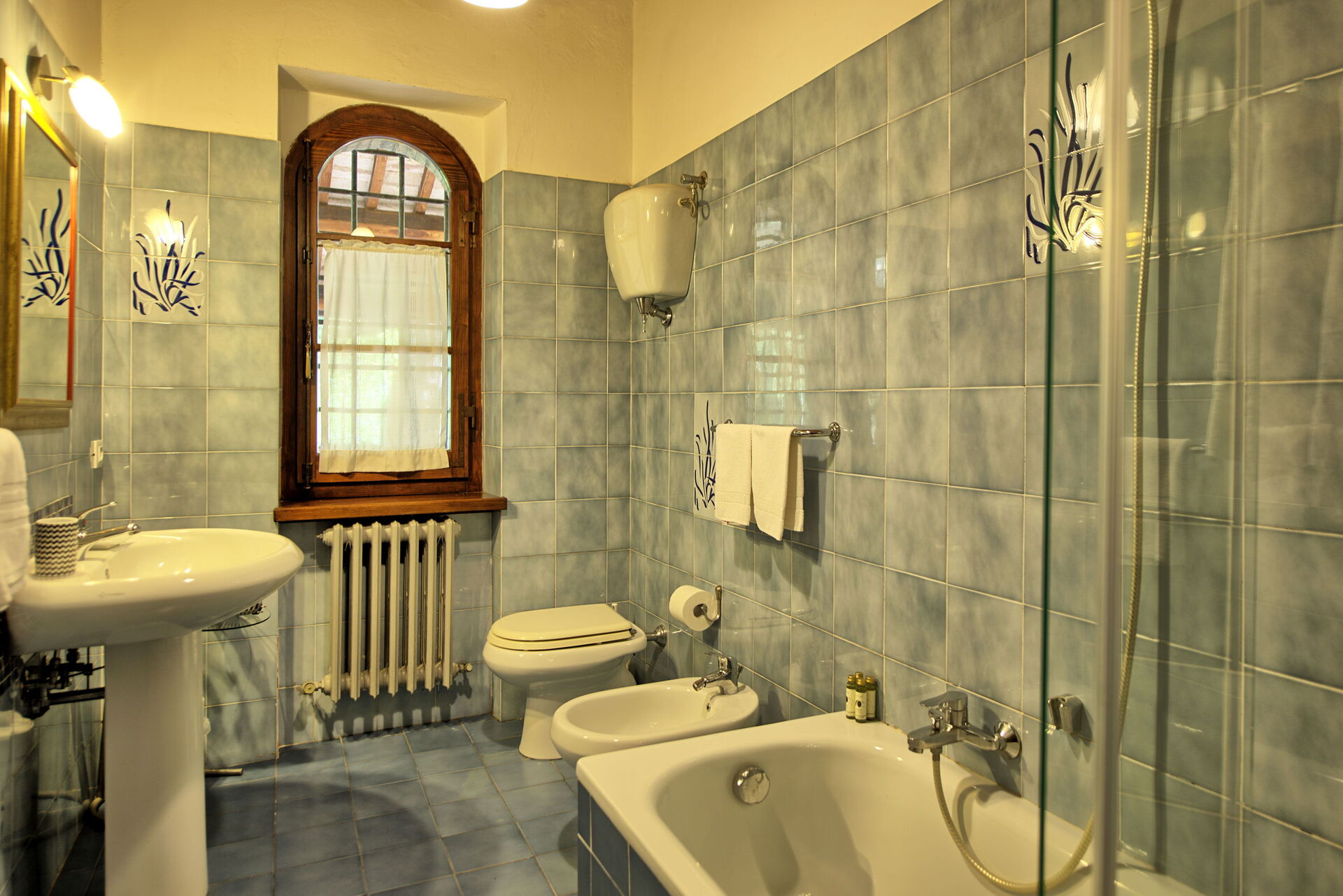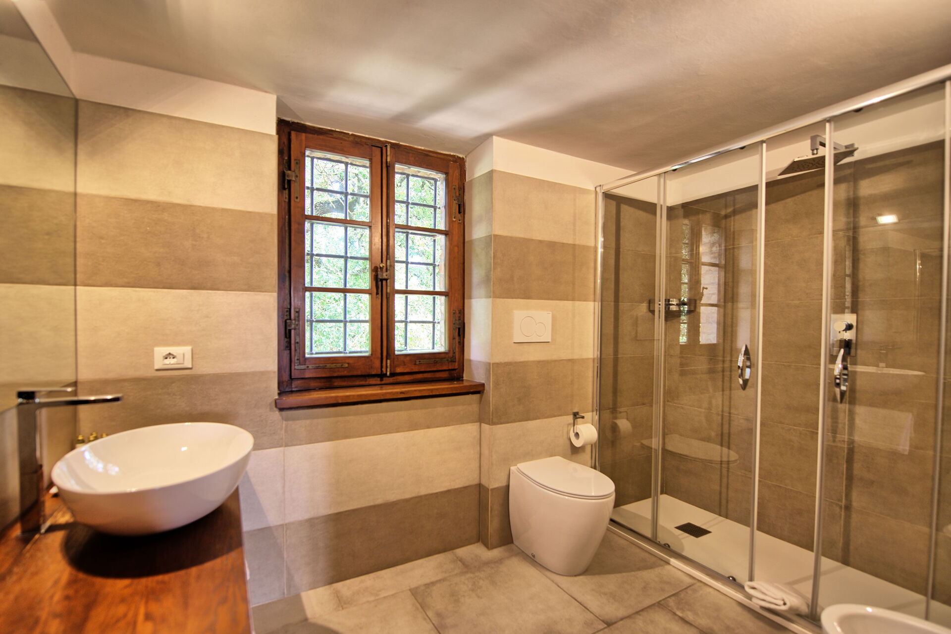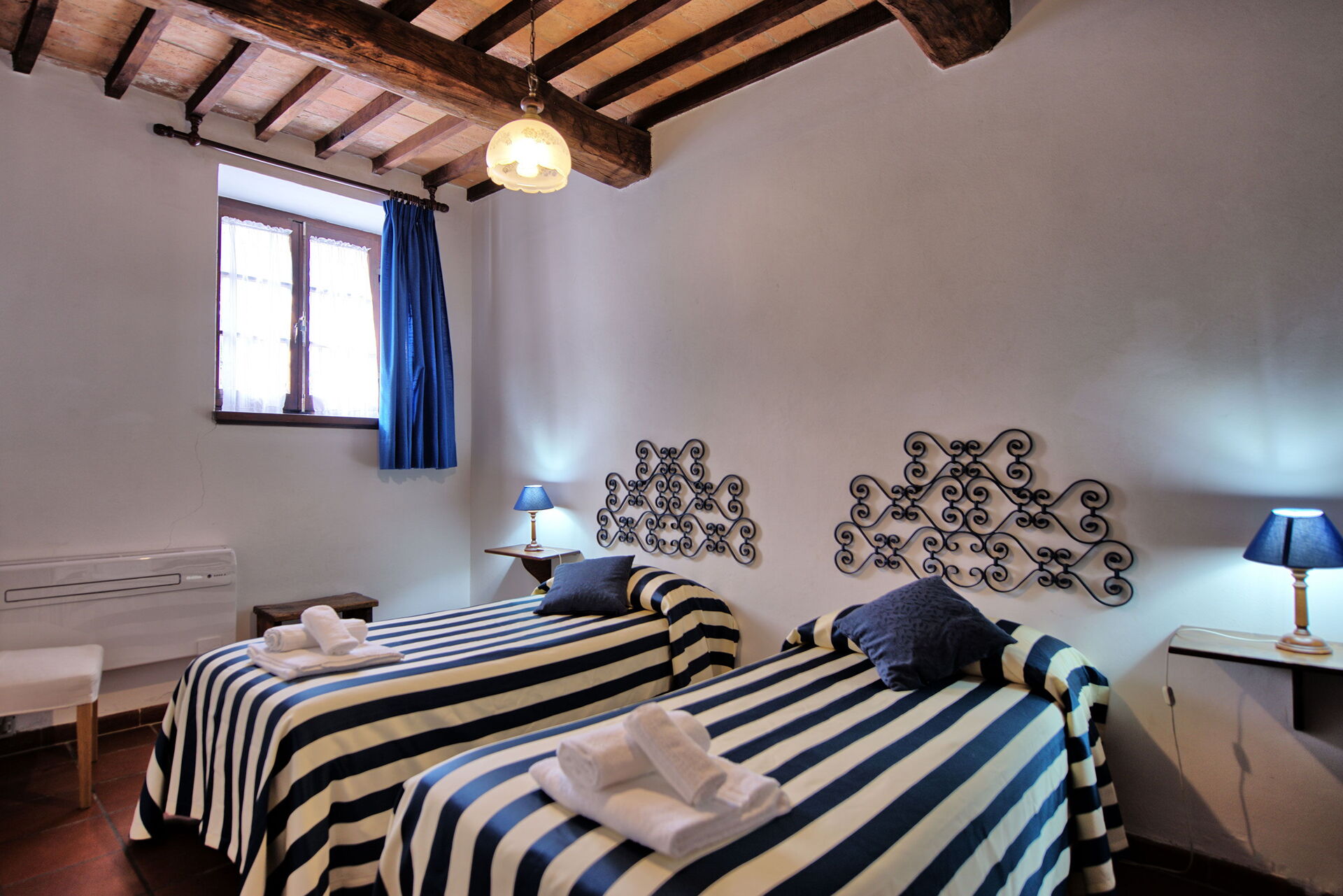 Fra feriehuset har man fantastisk 360° utsikt over Toscana-landskapet. Huset har blitt møysommelig renovert på en måte som har bevart mange av de originale detaljene som store peiser, terrakottagulv og trebjelker i taket.