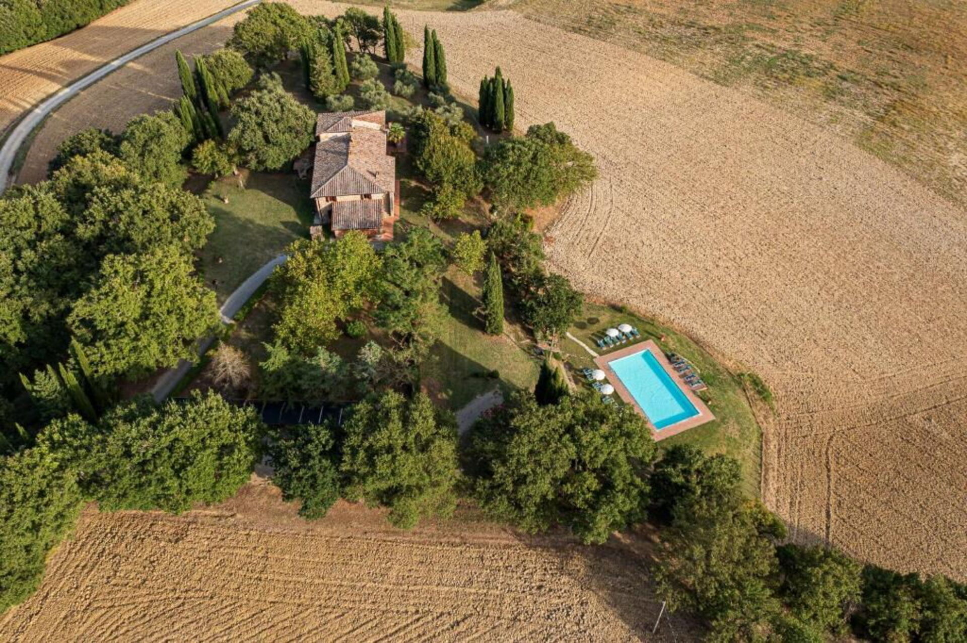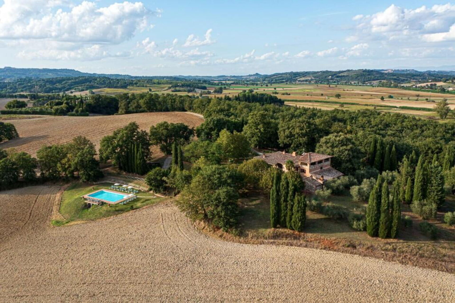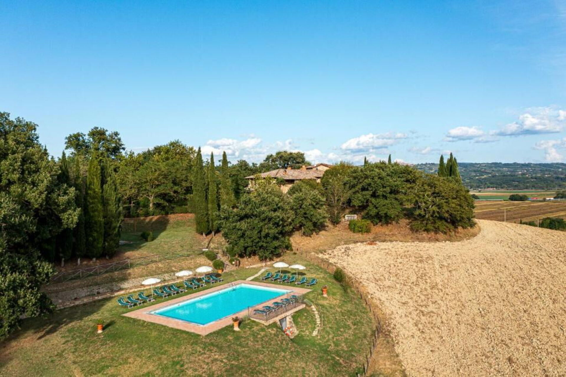 Gjestene kan nyte den fortryllende utsikten over de toskanske åsene: området er veldig rolig og tilbaketrukket. Store marker og skoger omgir huset og et fantastisk basseng er perfekt for å kjøle seg av på varme sommerdager. Avslapping og ro er garantert!