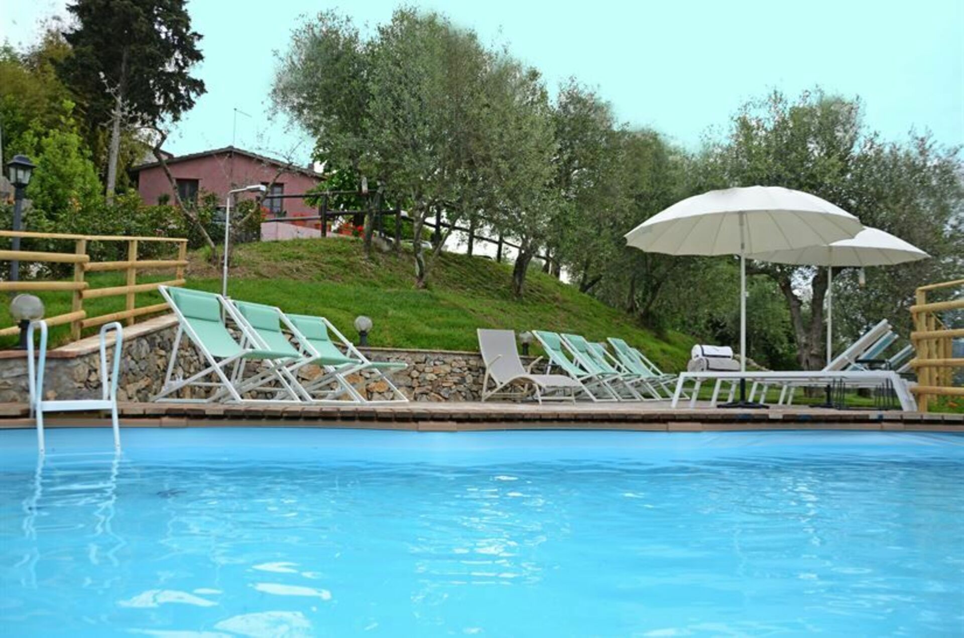 - Basseng mt. 7 x 4m, utstyrt med solsenger, parasoller og bord (for felles bruk av leilighetene "CECILIA", "GIUSEPPINA" og "GINA")
