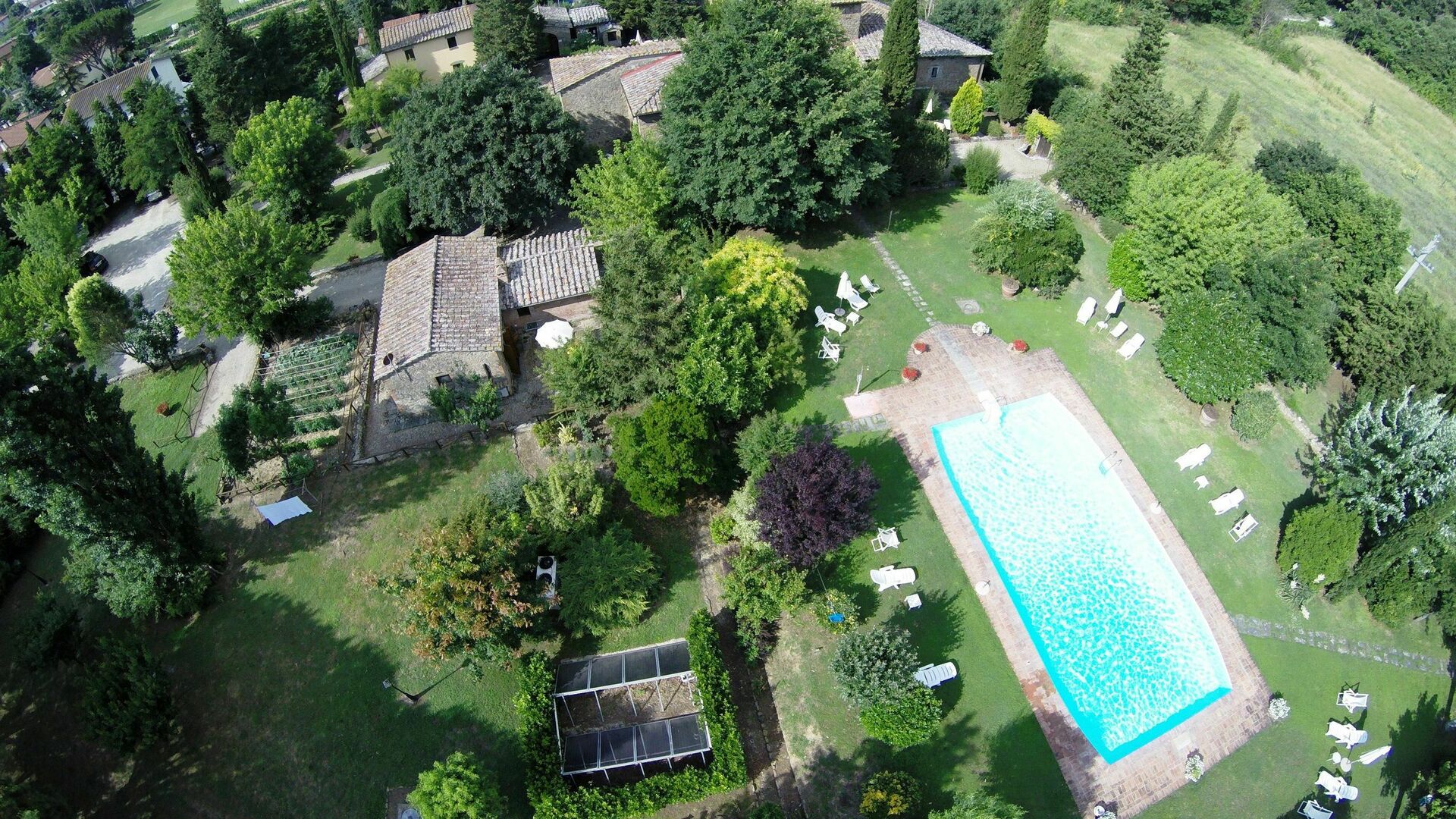 San Pietro byr på et vakkert basseng med utsikt mot Cortona hvor man kan slappe av sammen med familie eller venner. På uteområdet finner man også en vakker felles hage. Eiendommen består av flere steinbygninger som har blitt pent restaurert og omgjort til 10 komfortable leiligheter, som alle er smakfullt innredet i toskansk stil. Hver av leilighetene har et personlig møblert uteområde.