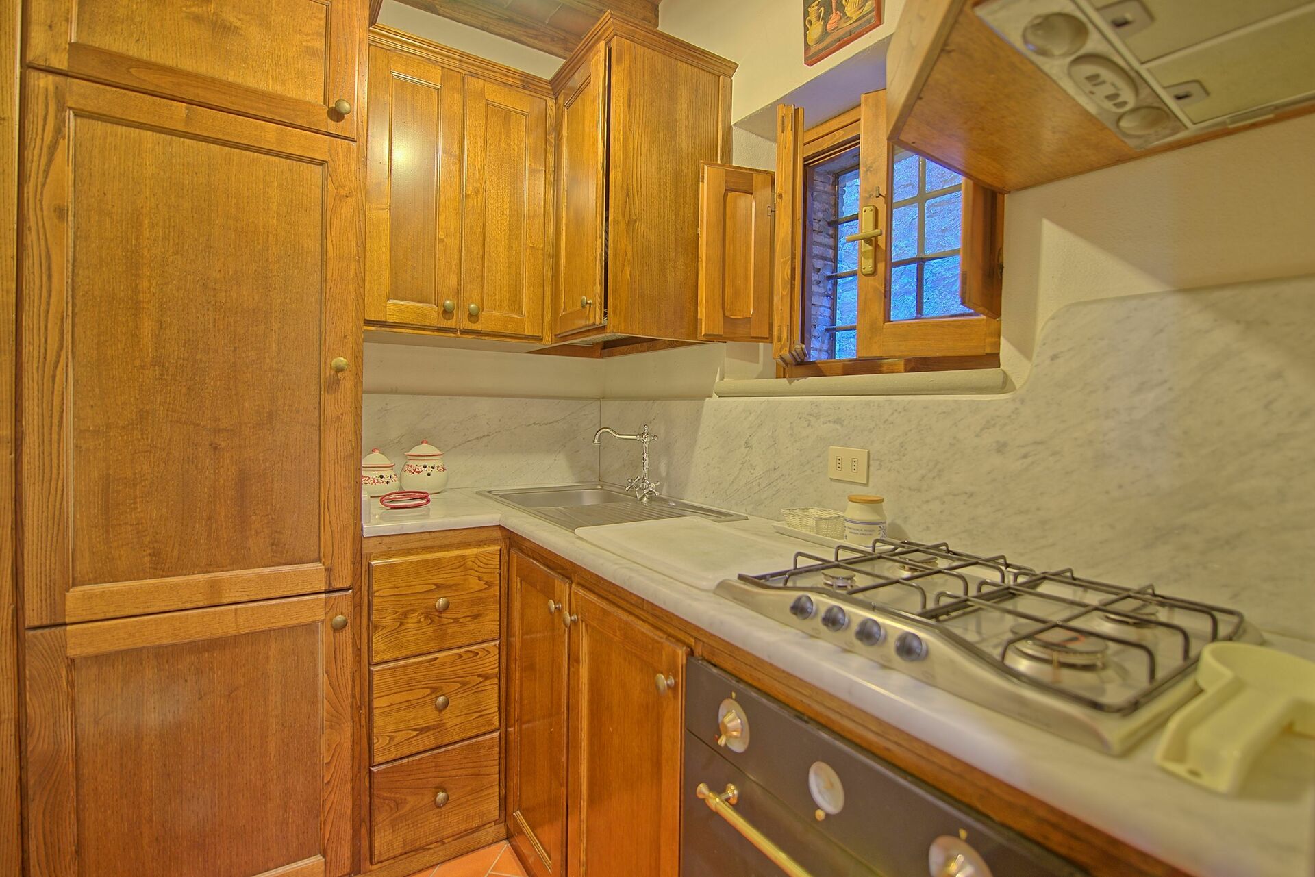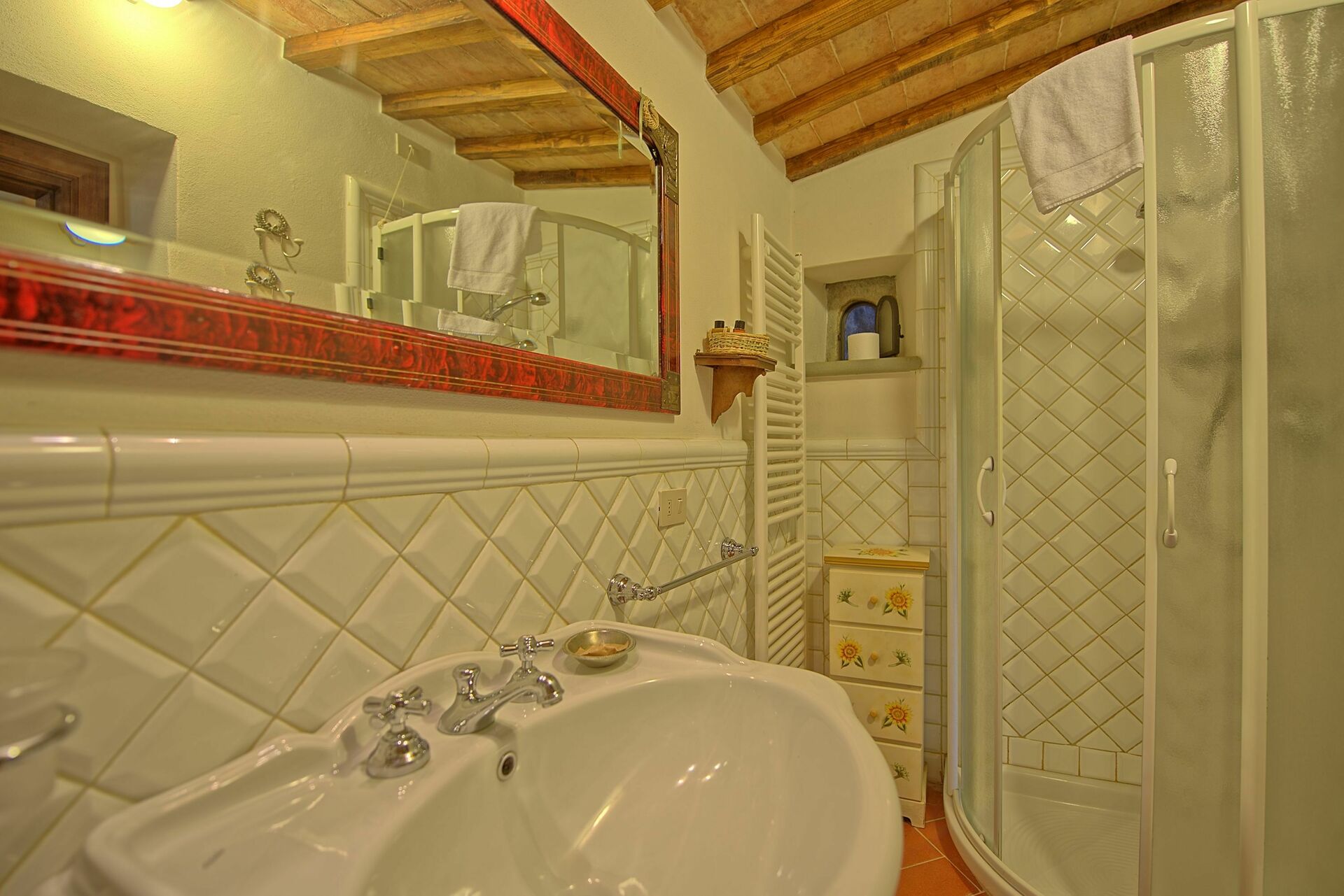 På det øvre nivået er det en uteplass med bord for uteservering, grill og vedovn og ved på forespørsel for tilbereding av pizza og typiske toskanske retter.