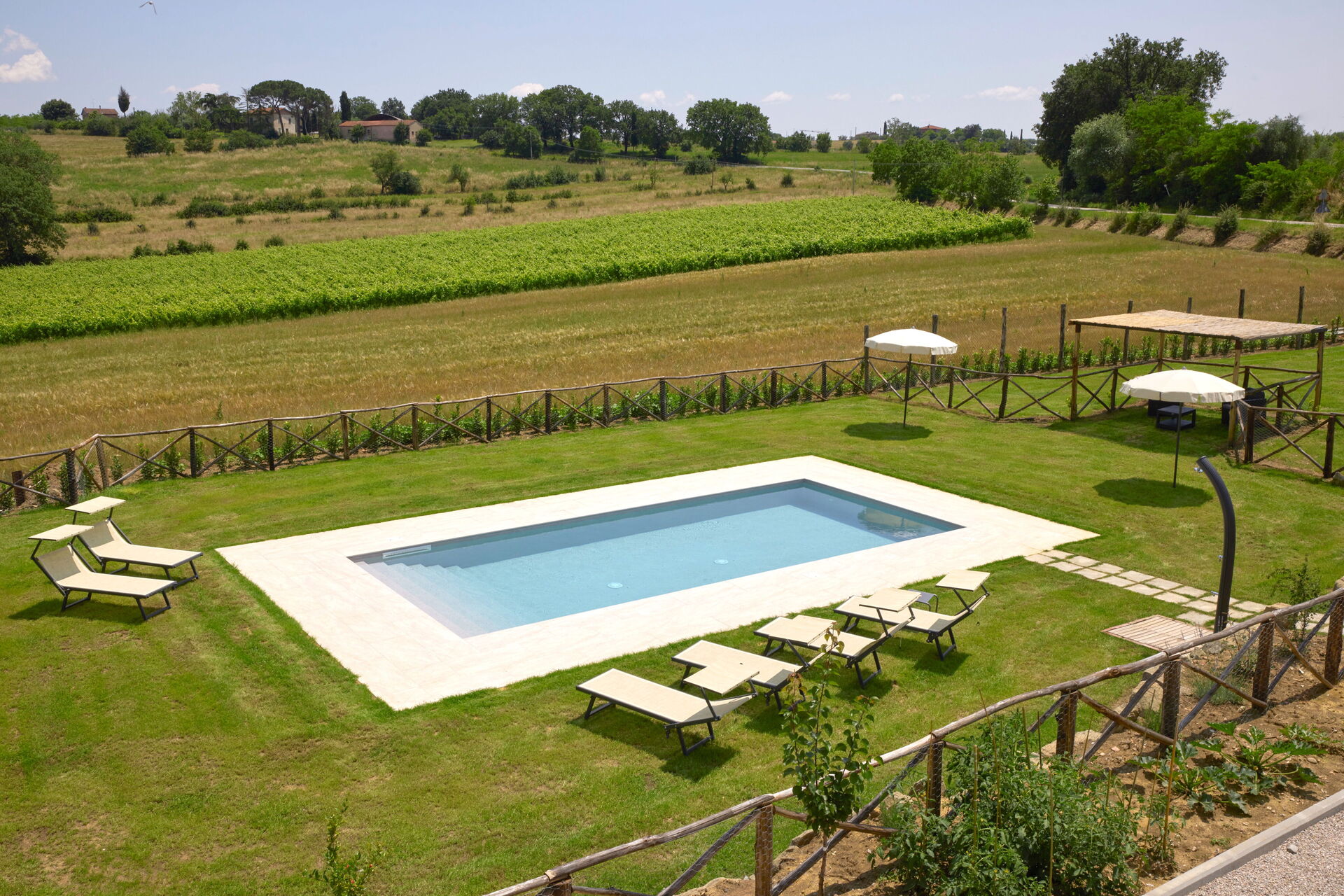 Uteområdene er prikken over i'en: den velstelte hagen, med terrasser og et privat basseng, byr på muligheter for full avslapning. Villa Vigneto er perfekt for på solfylte toskanske sommerdager.