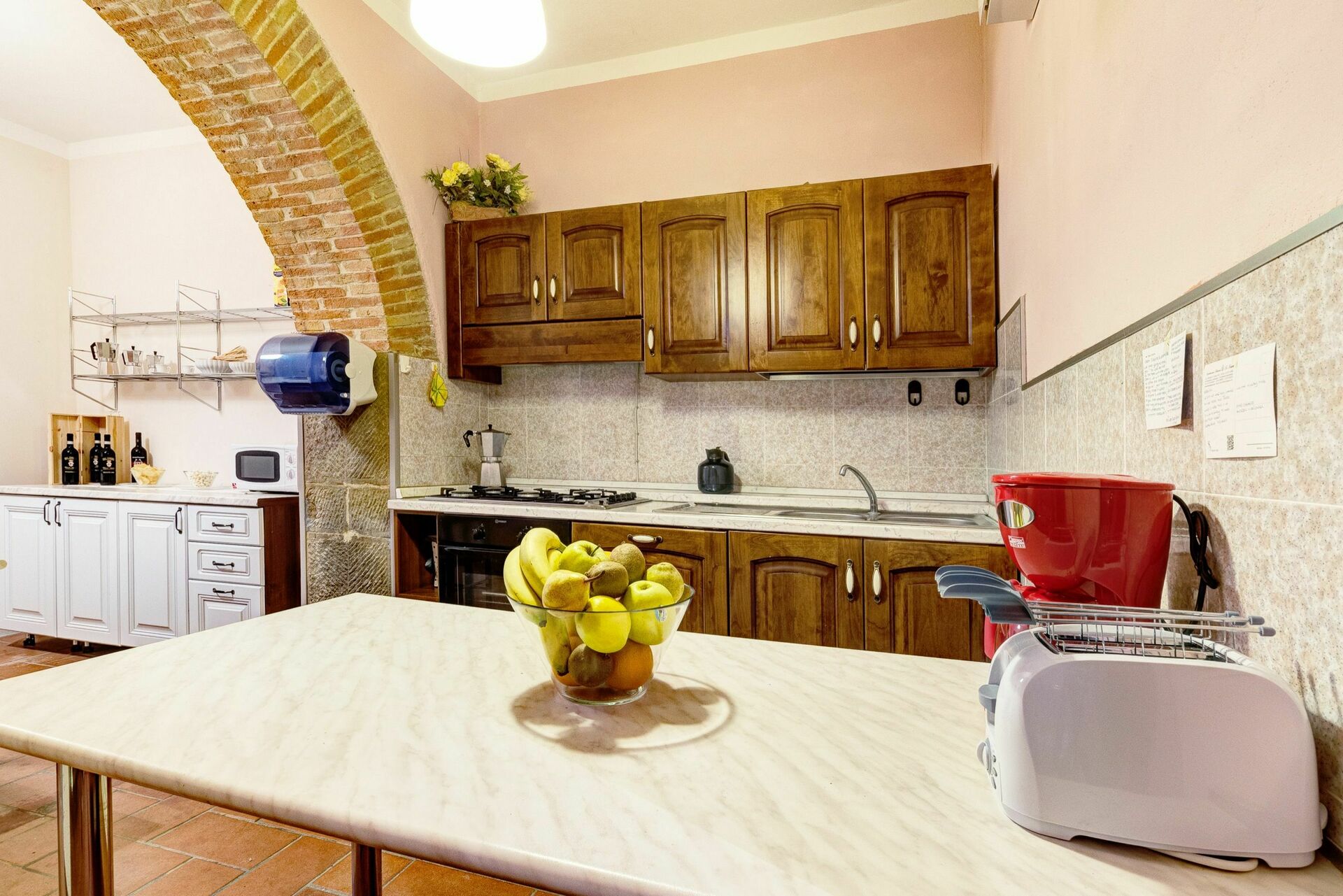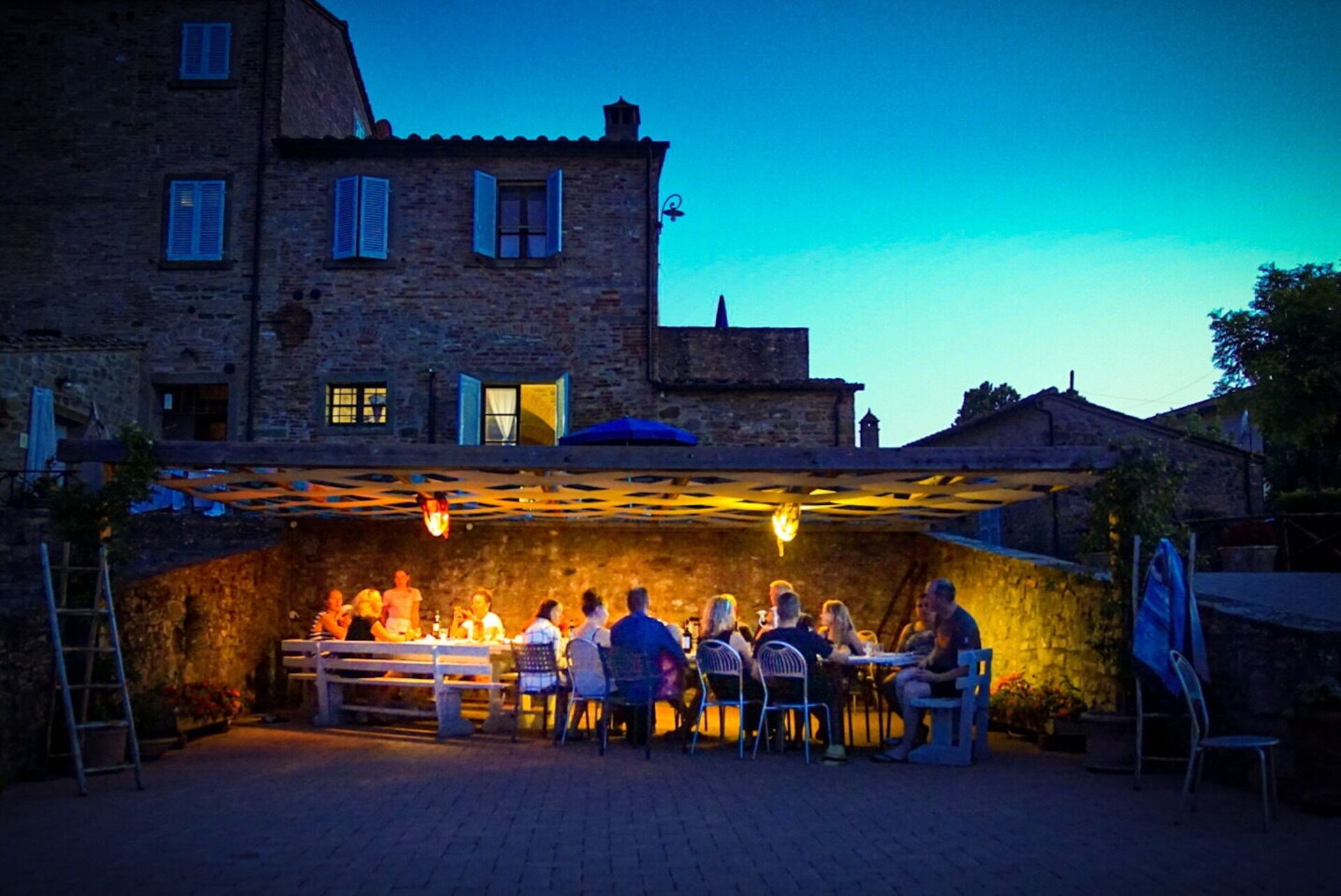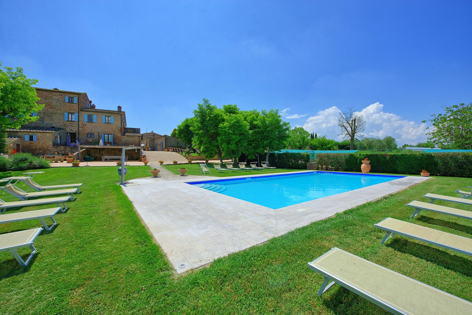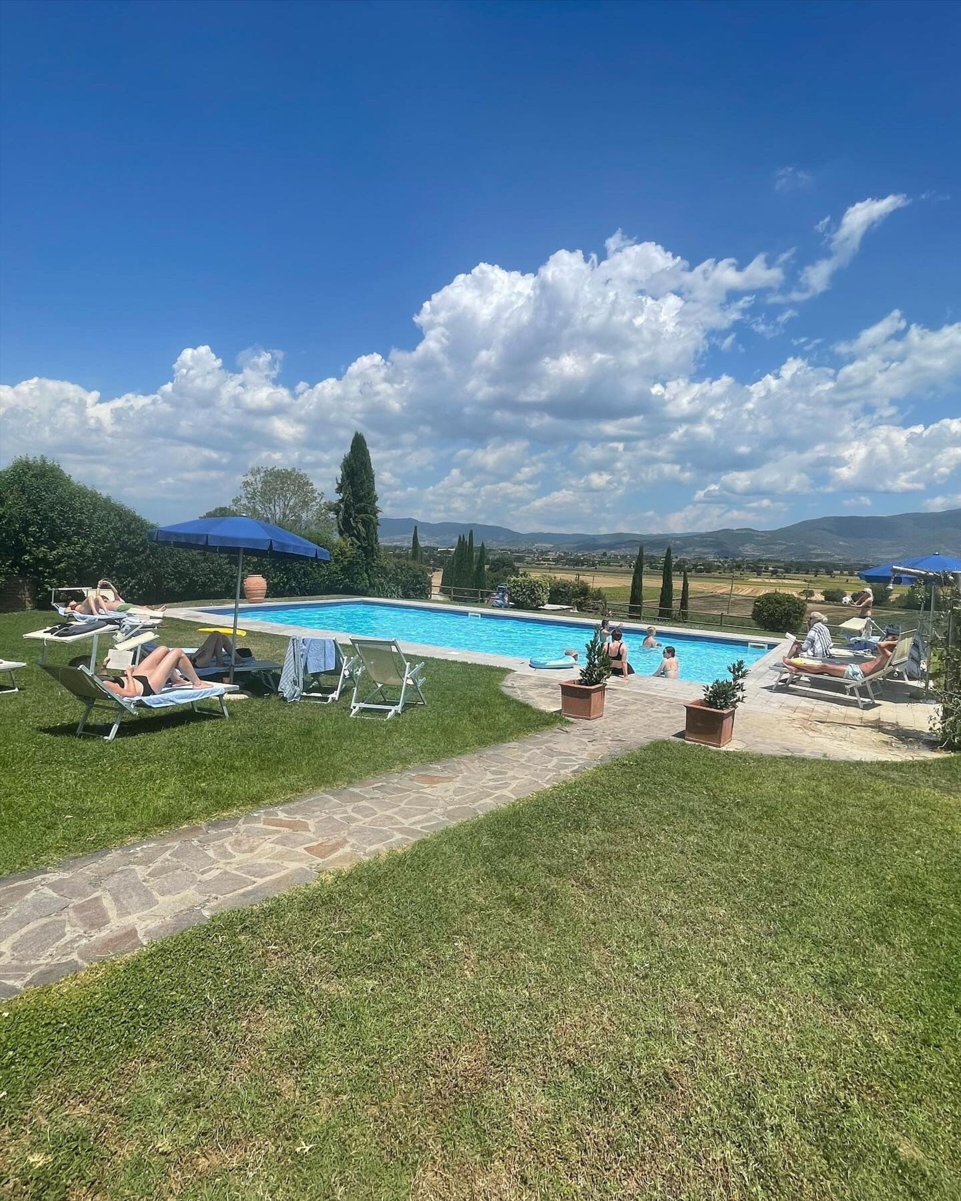 This large villa easily accommodated our group of 18 people. We had plenty of space to spread out aided by the fact that each apartment in the villa had its own bathroom and kitchen. There's also a main kitchen for nights when people want to cook together. The outdoor spaces are amazing - we were able to find cool, shady spots to congregate in throughout the day and the views from the pool can't be beat. Speaking of the pool, it was a godsend, as Tuscany was in the grips of a heatwave that week. Wasn't hard to soak in the pool with friends while taking in the view of Cortona. Our host, Isolina, was great as well - we had a problem with the air conditioners in a couple of rooms the first day and she was unrelenting in her efforts to fix them. Much appreciated! She also was able to sell us excellent and reasonably-priced wine on site, as well as offering olive oil produced on the farm itself. She made herself available for any questions or issues we might have - excellent service. Lastly, the village of Fratticciola is small and quiet, but near everything - you can easily take trips to Cortono, Sienna, Florence, Assisi, Arezzo, Montepulciano, etc. It was great to visit these locations and then escape the tourists to come home (and inevitably jump in the pool). It was hard to leave.