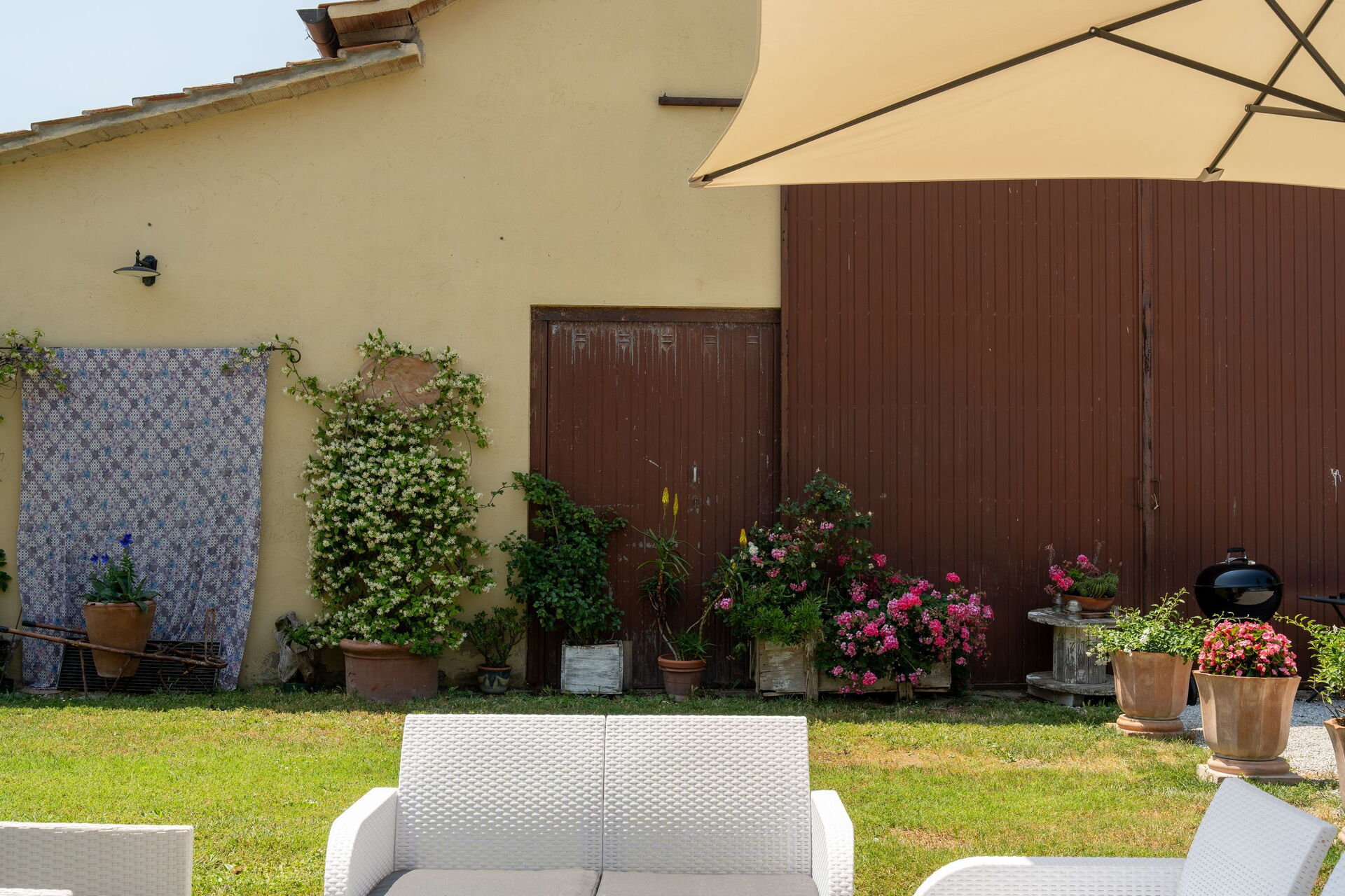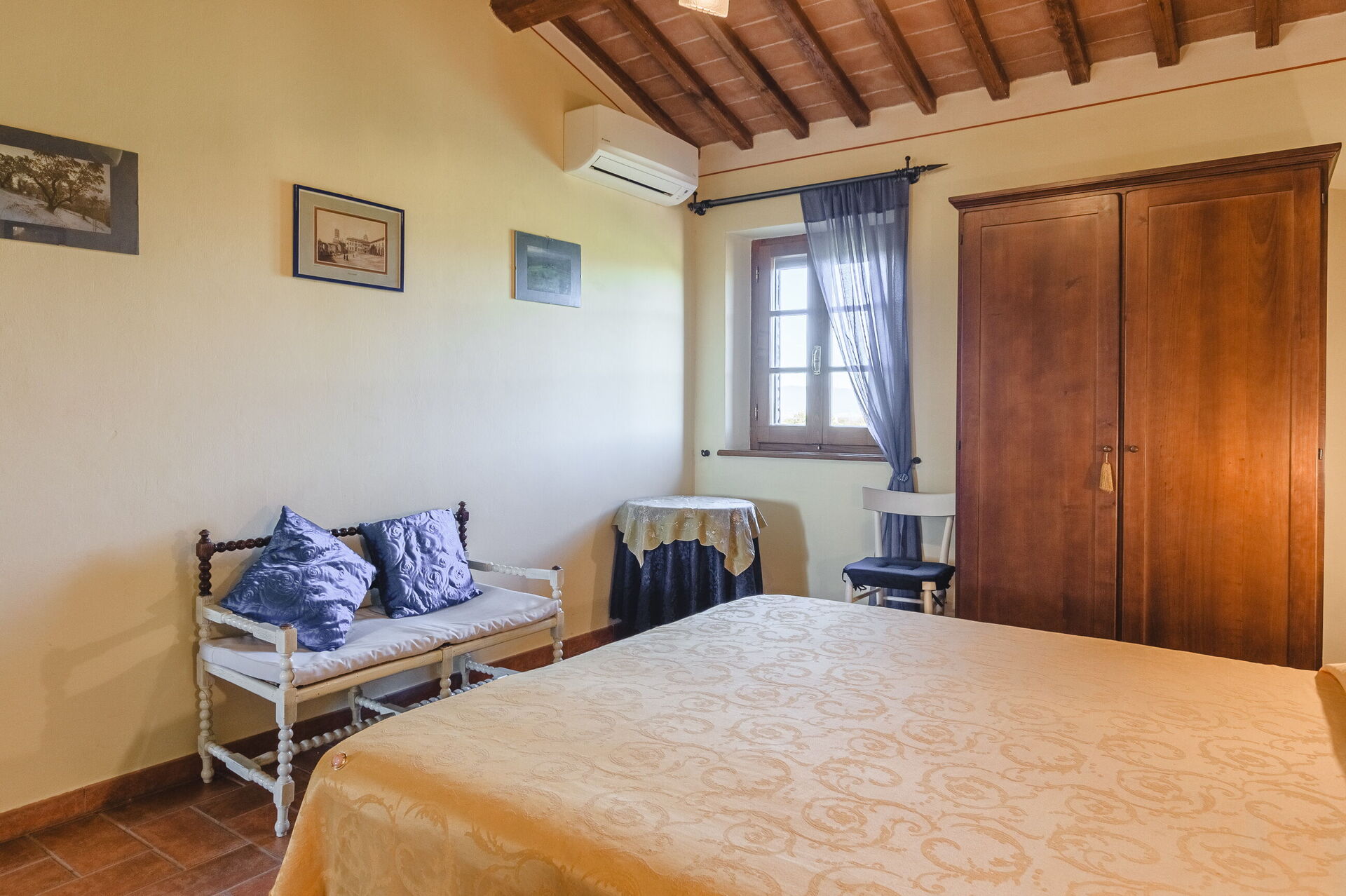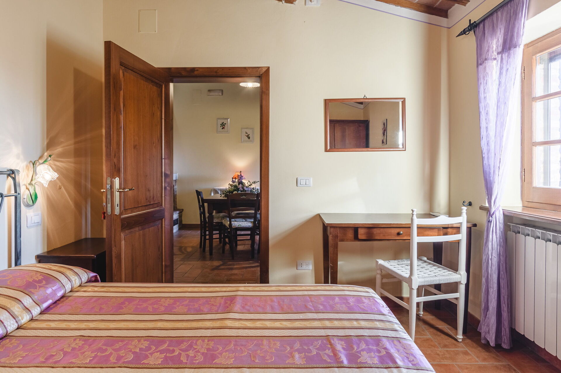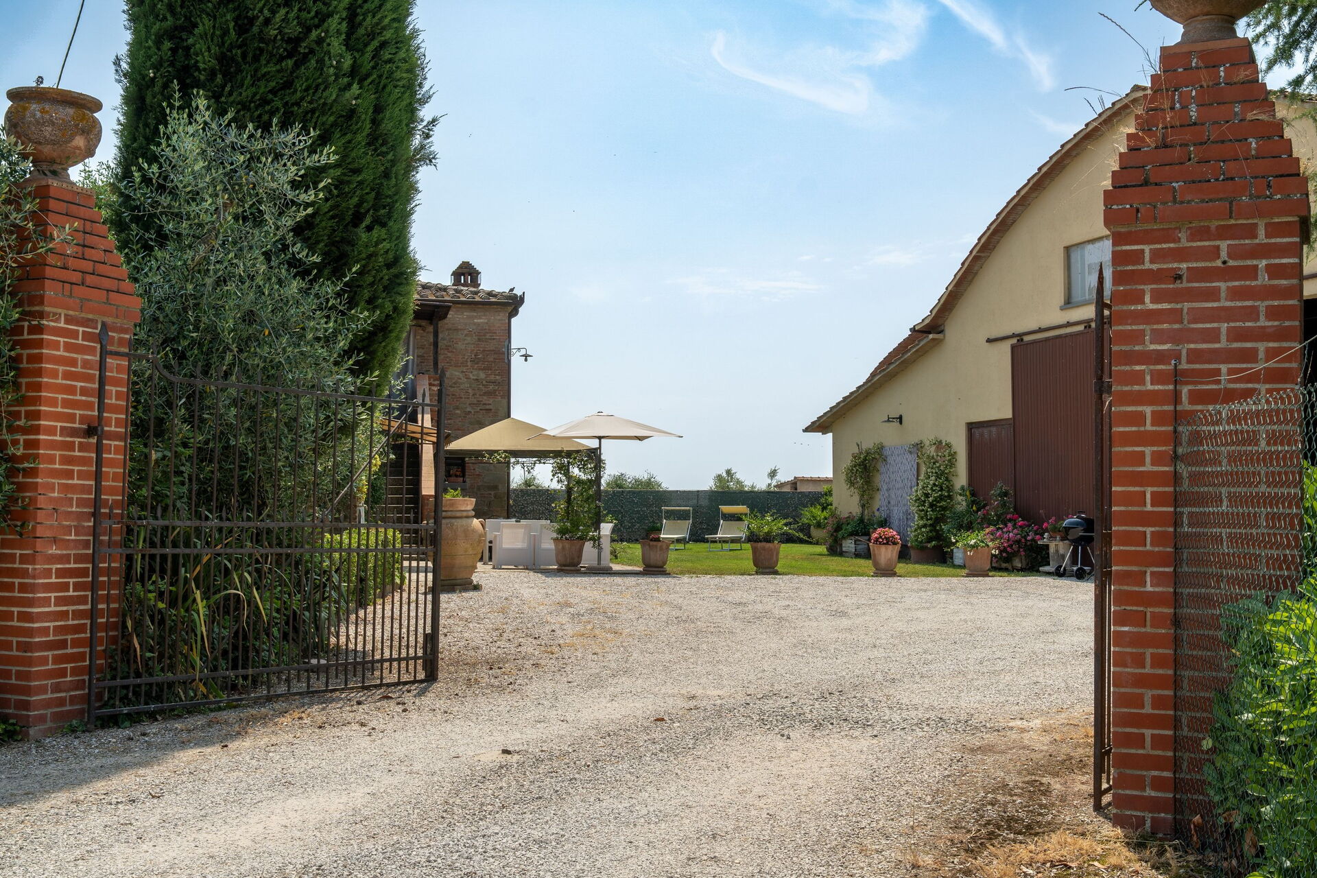 Very nice place in the country, and very authentic. We visited during harvest time, so it was a busy time for the farmer(s). We wasn’t affected by it in any negative way, we found it interesting and very charming to get close the every-day-Italian-life. Three nice apartments, with a/c in all bedrooms. There is a Big barn next to/ between the mainhouse og the guest-property which doesn’t show much in the pictures. We parked both of our cars inside the barn.