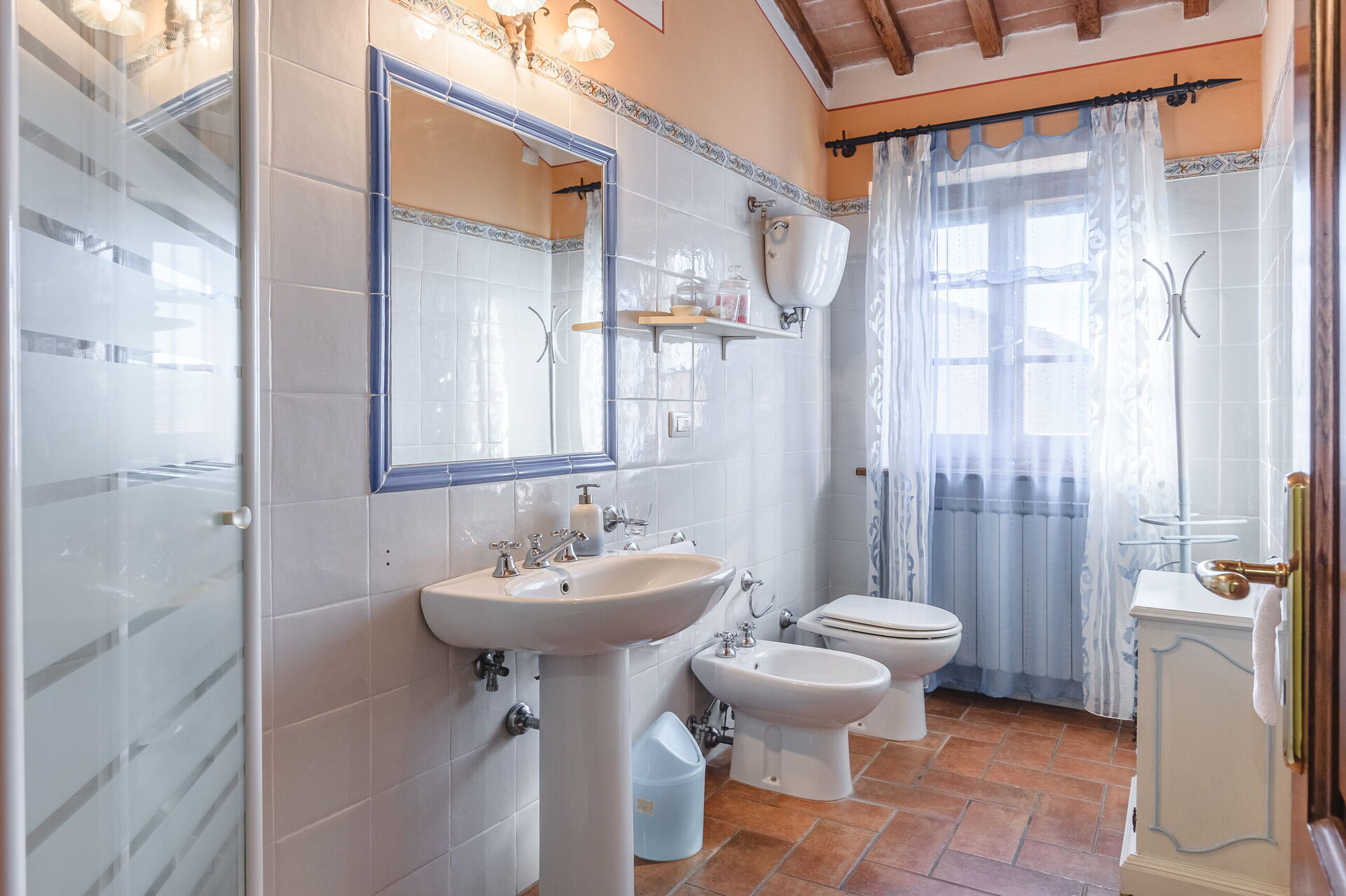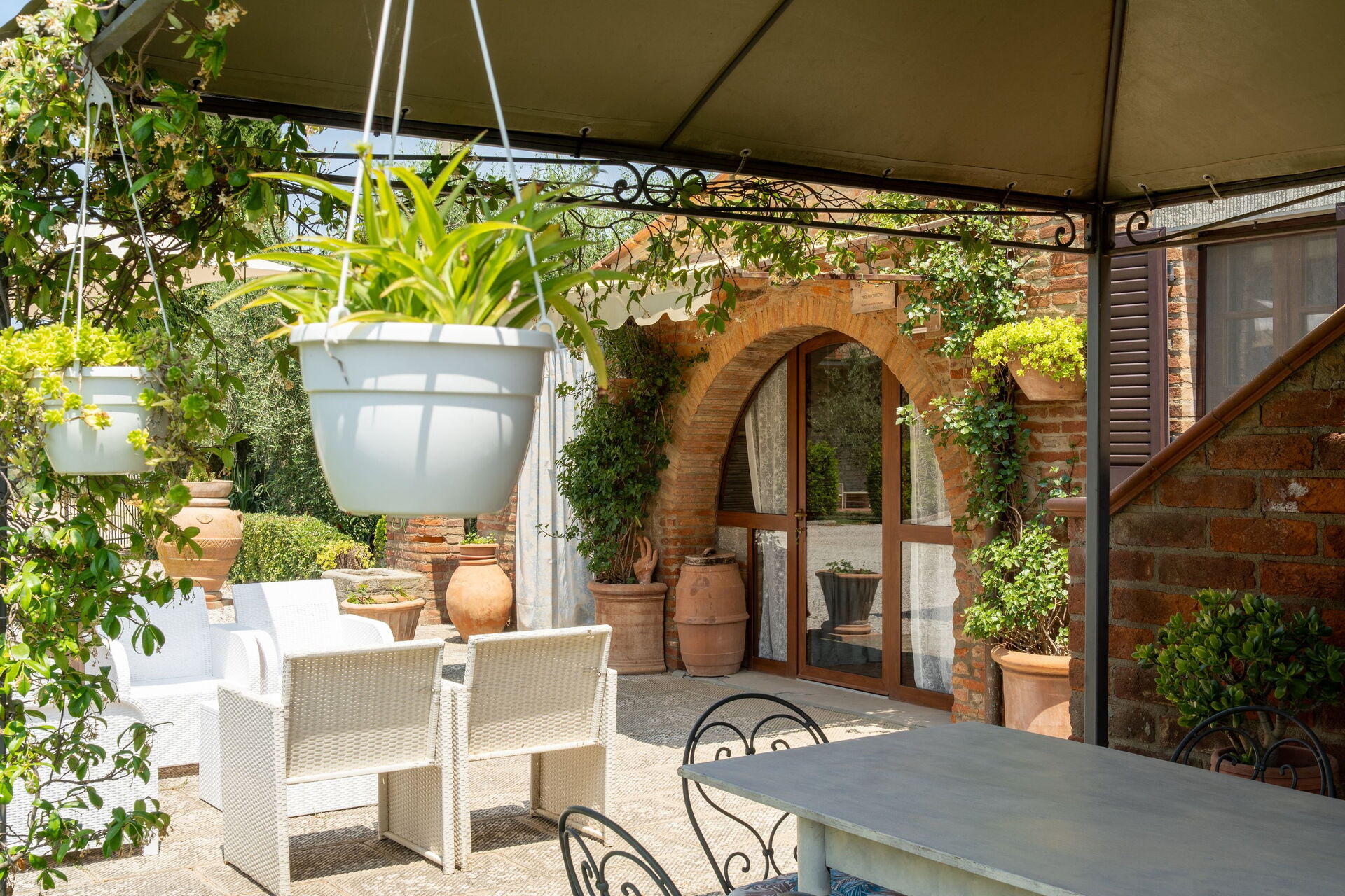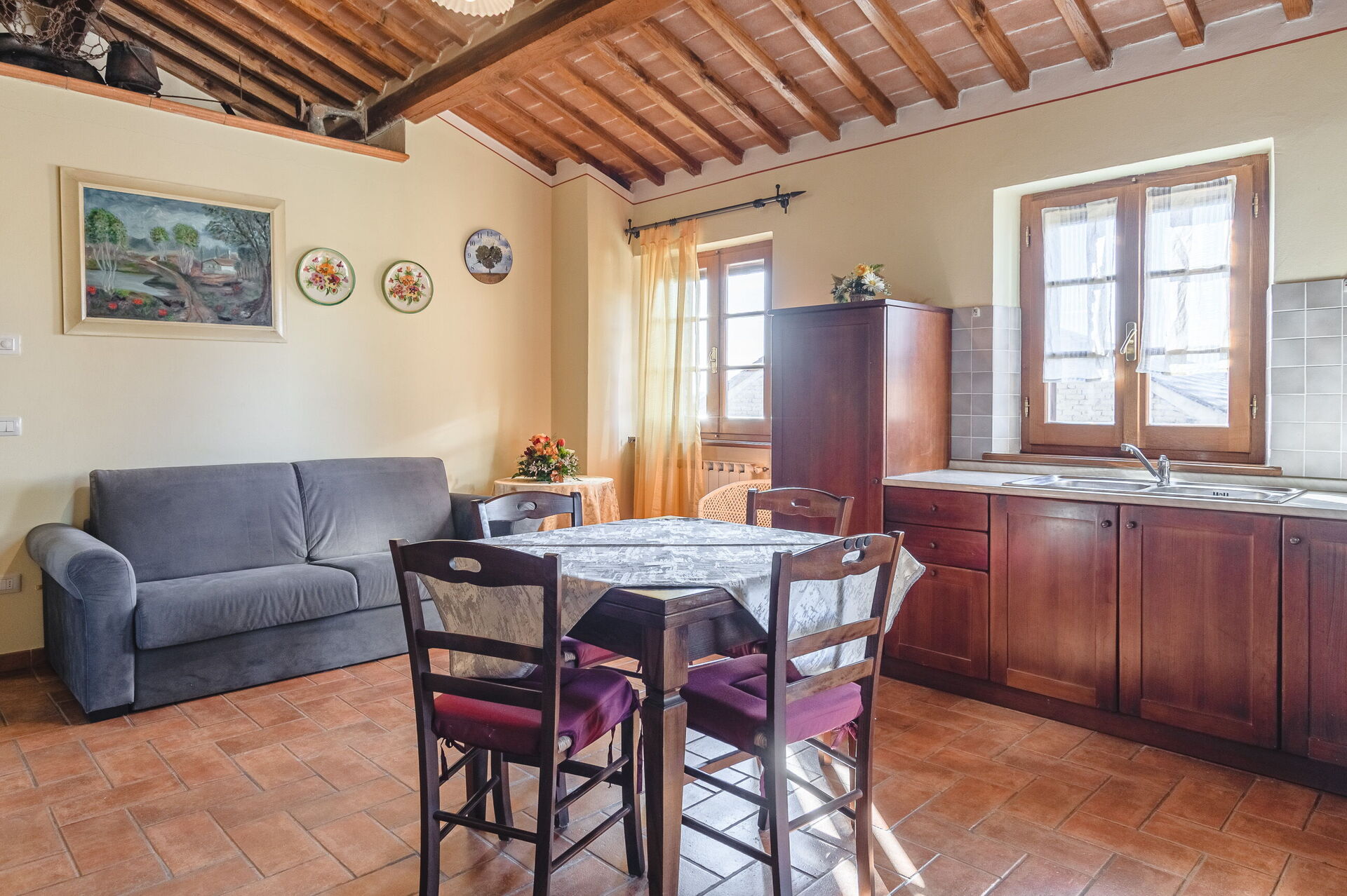 Very nice place in the country, and very authentic. We visited during harvest time, so it was a busy time for the farmer(s). We wasn’t affected by it in any negative way, we found it interesting and very charming to get close the every-day-Italian-life. Three nice apartments, with a/c in all bedrooms. There is a Big barn next to/ between the mainhouse og the guest-property which doesn’t show much in the pictures. We parked both of our cars inside the barn.