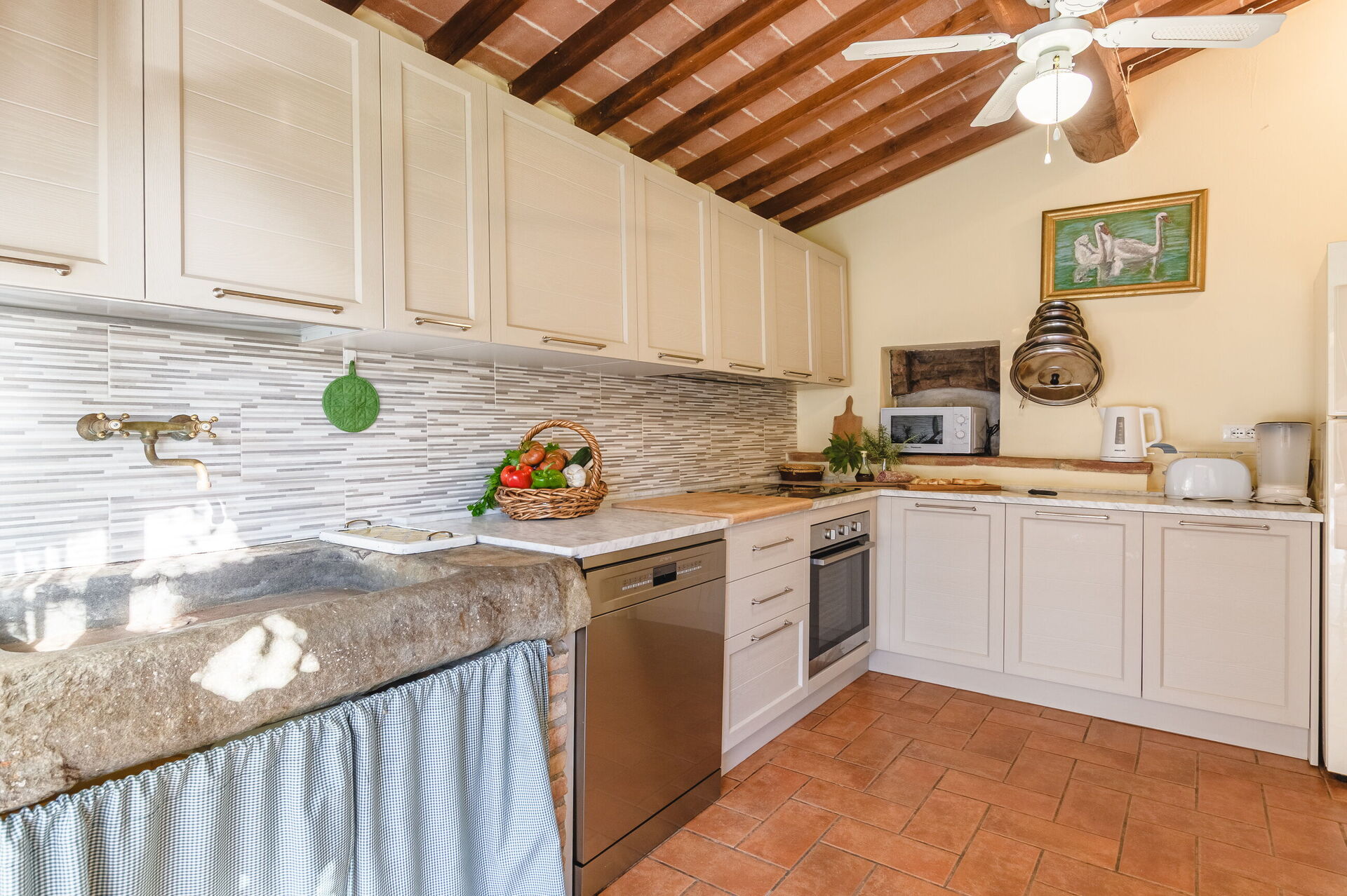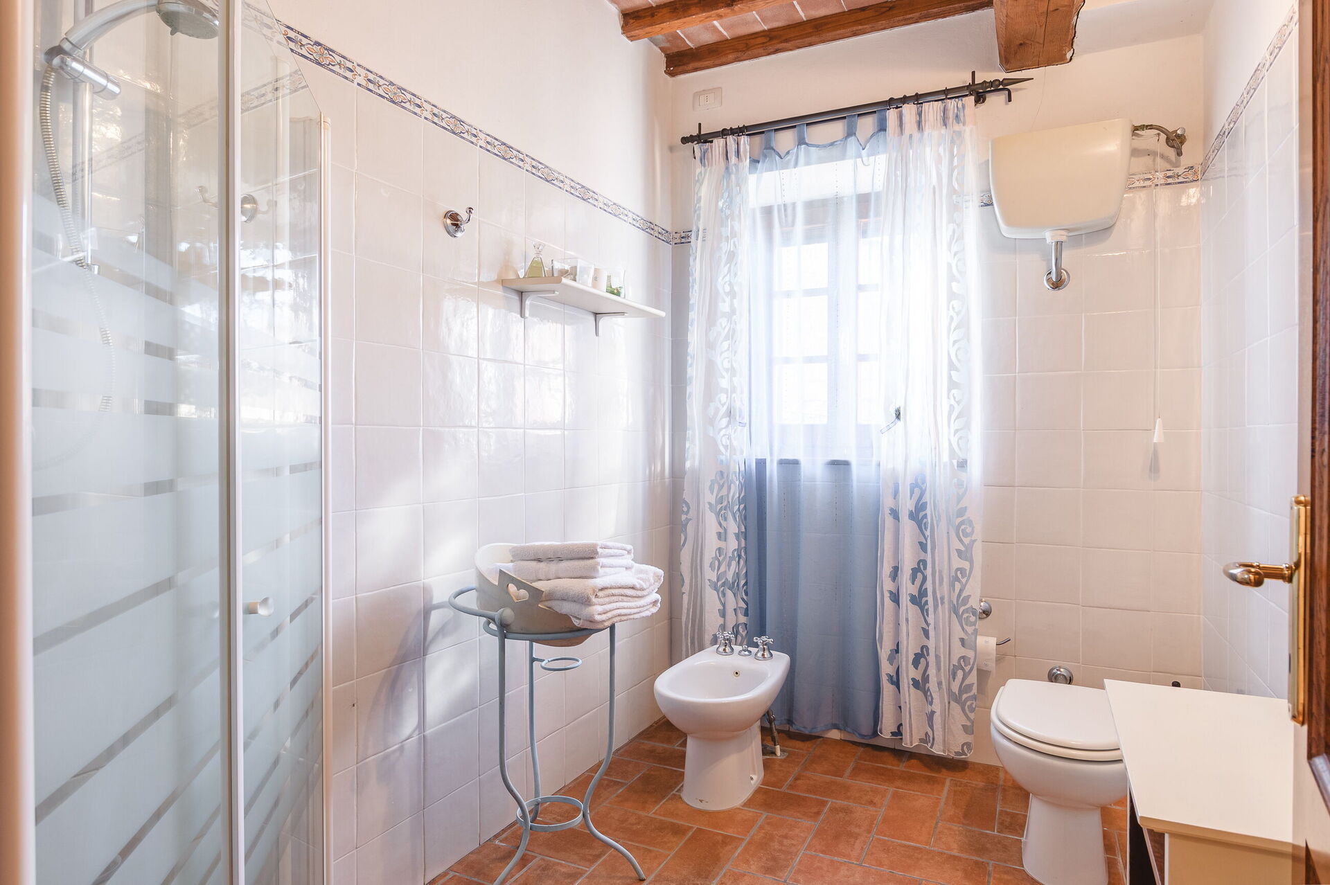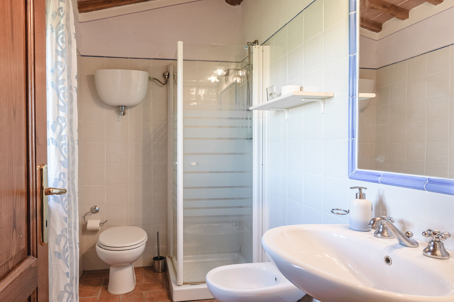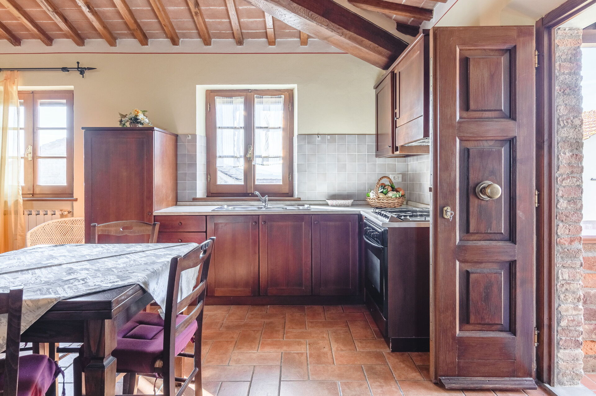 Very nice place in the country, and very authentic. We visited during harvest time, so it was a busy time for the farmer(s). We wasn’t affected by it in any negative way, we found it interesting and very charming to get close the every-day-Italian-life. Three nice apartments, with a/c in all bedrooms. There is a Big barn next to/ between the mainhouse og the guest-property which doesn’t show much in the pictures. We parked both of our cars inside the barn.
