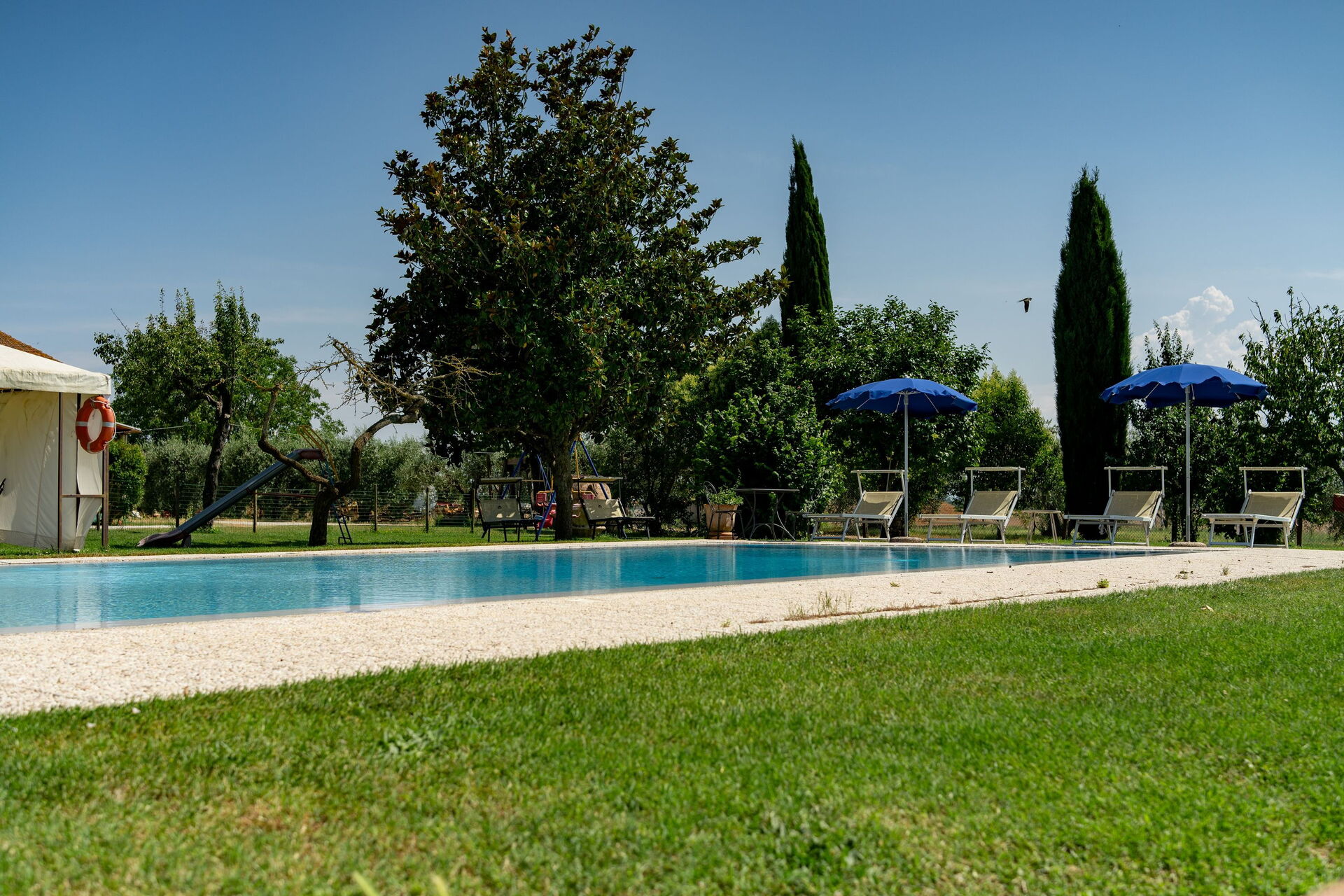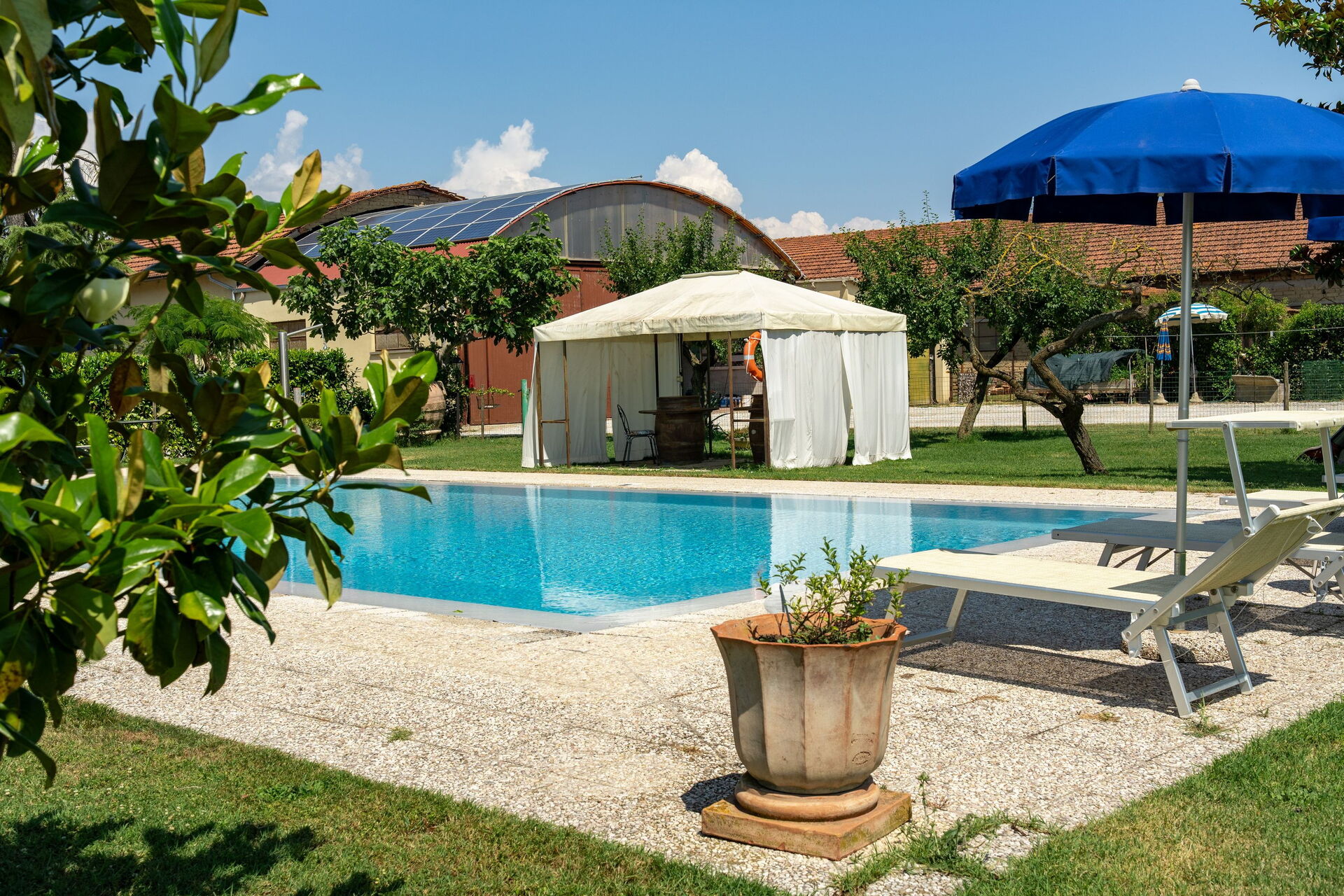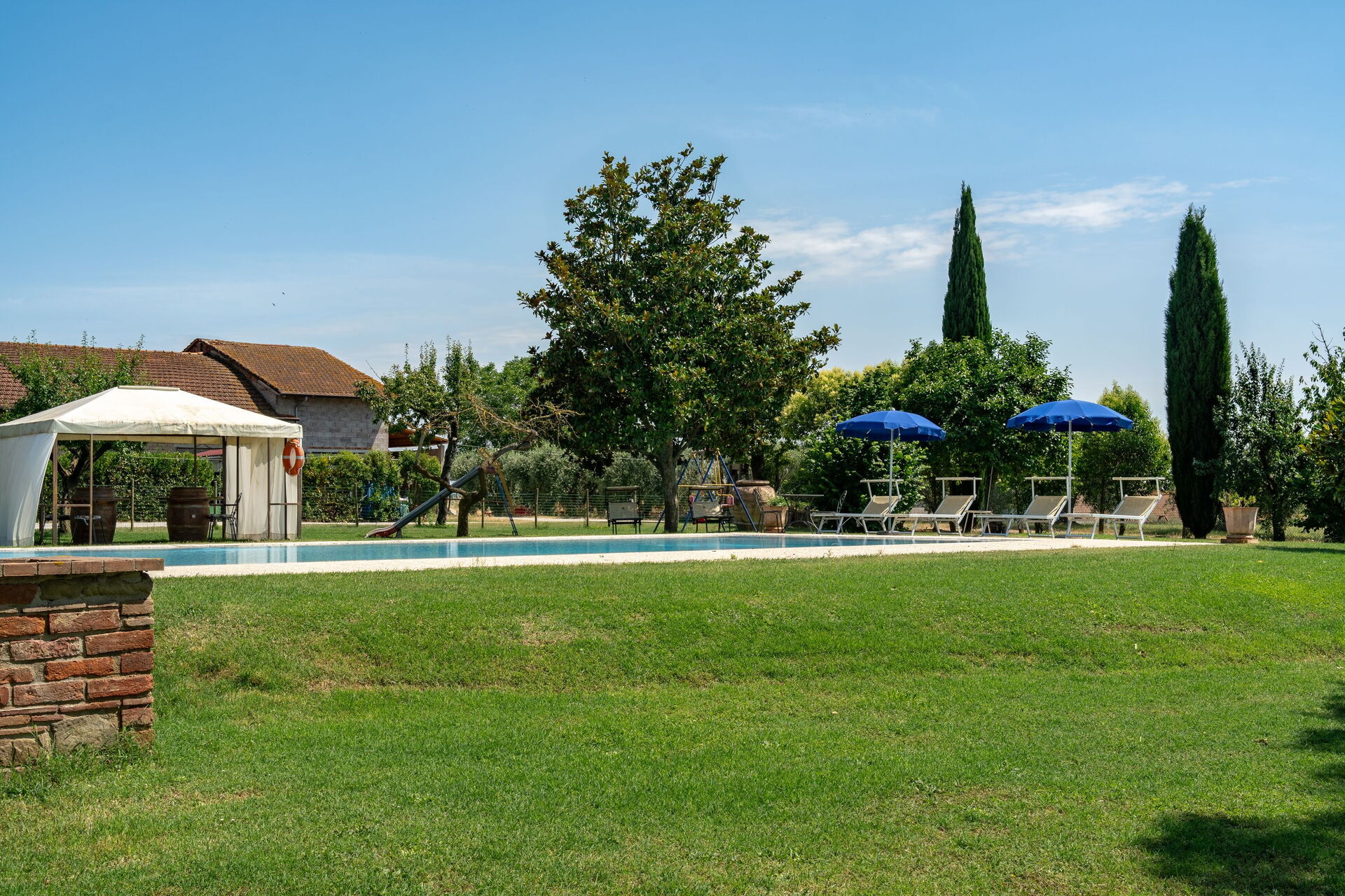Svømmebassenget ligger 30 meter fra huset, og til tross for den nære beliggenheten til eierne og driftsbygninger, er bassenget kun for eksklusiv bruk.