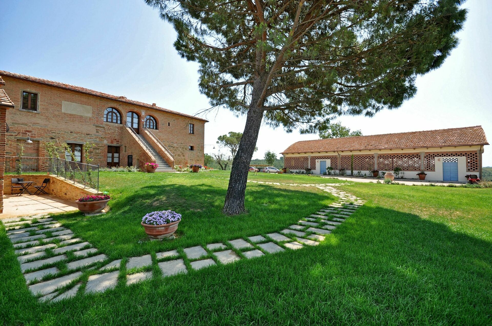 Un endroit fantastique. Appartement très grand, confortable (air climatisé, 4 salles de bain etc..) dans un décor digne de la Toscane.