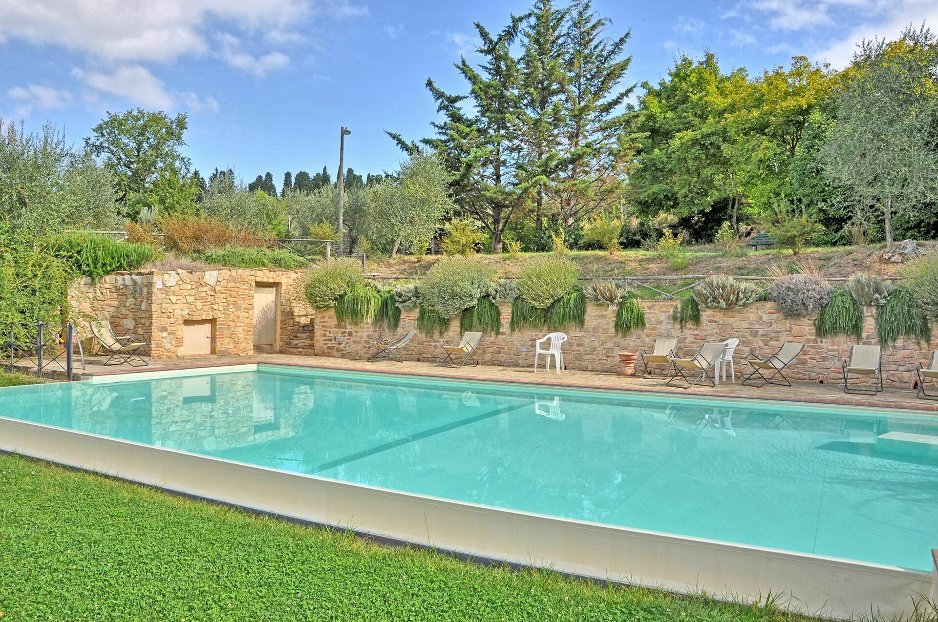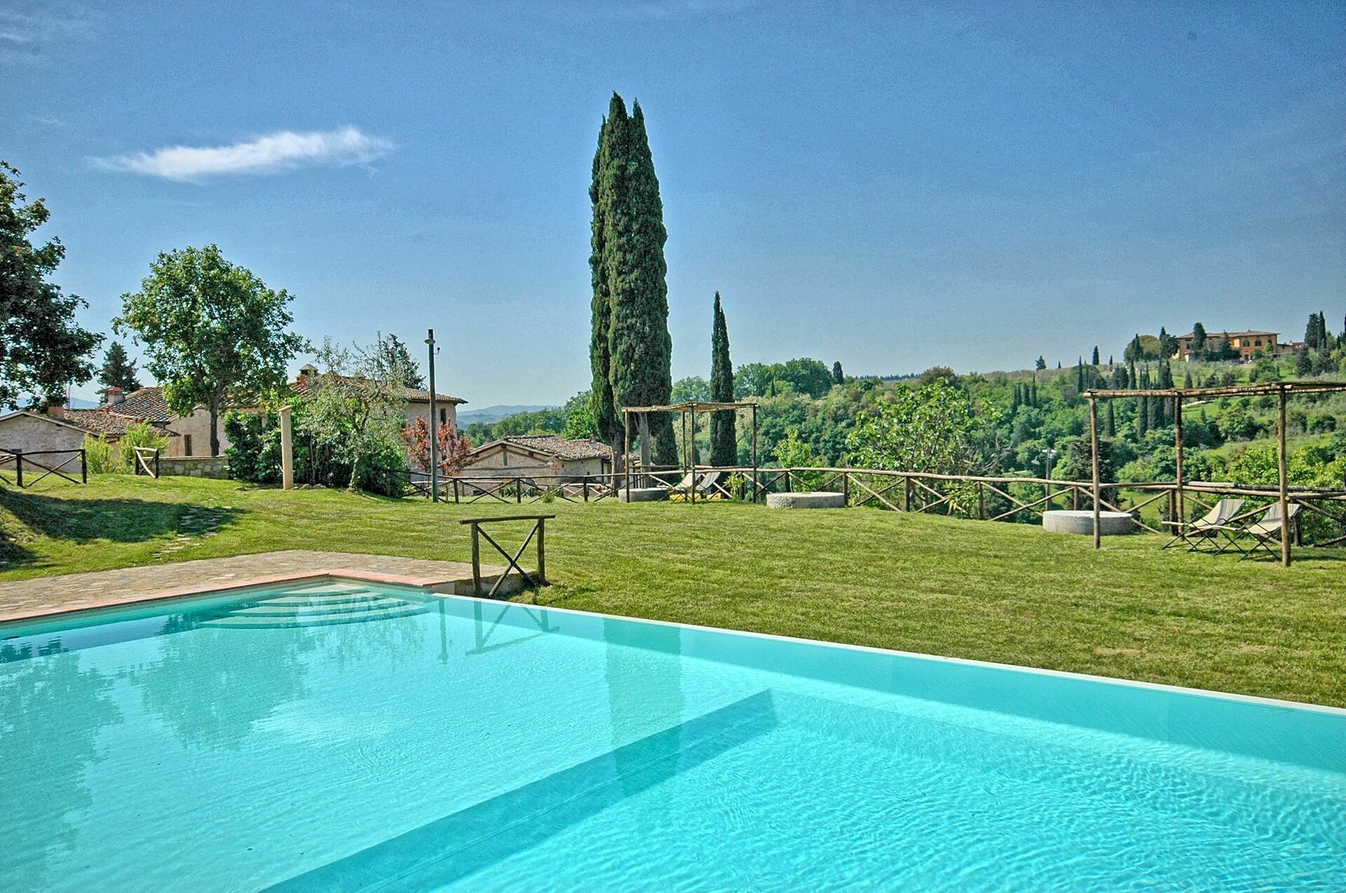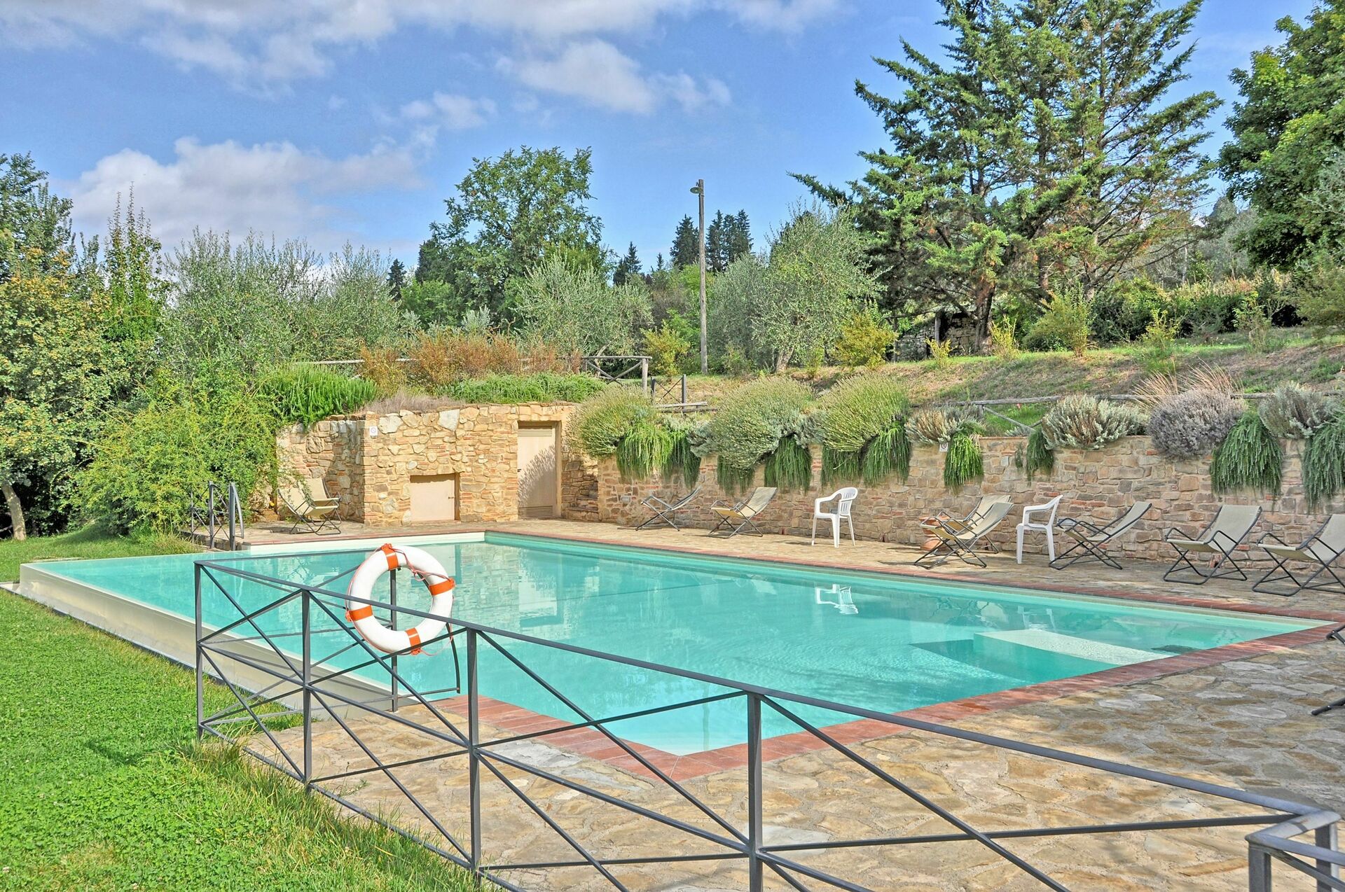 Le Fonti byr både på privatliv og komfort, samt et flott basseng hvor du kan slappe av med venner eller familie. Eiendommen har også en stor hage for gjestenes bruk. Det er kun 10 km fra leilighetene til sentrum av Firenze. Eiendommen har nylig blitt restaurert og omgjort til 15 komfortable leiligheter som alle er elegant innredet. Grenda er en del av en 35 hektar stor eiendom med olivenlunder, vingårder og vakre sypress-trær.